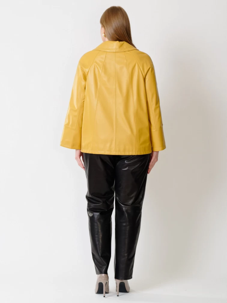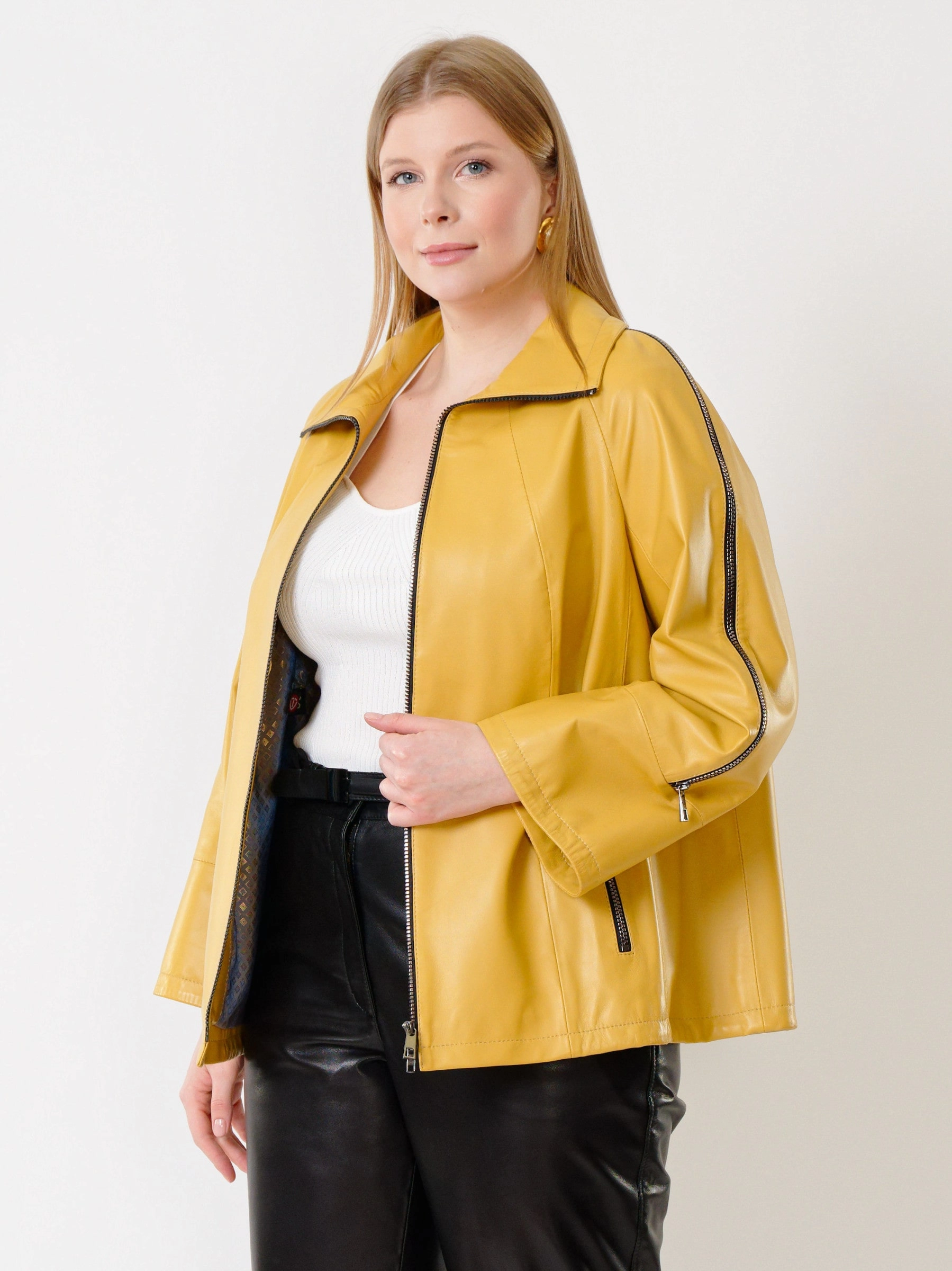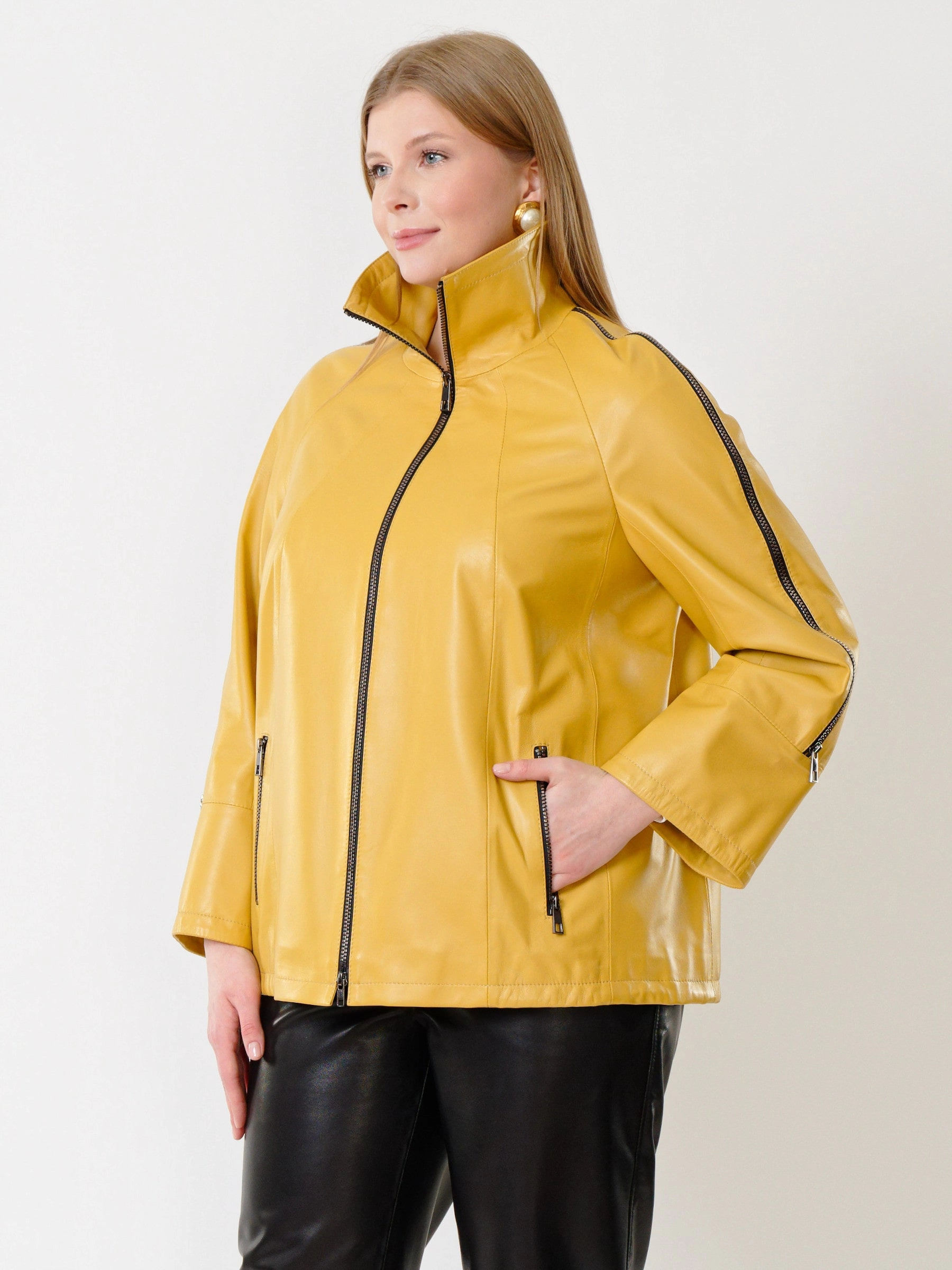 Кожаная женская куртка оверсайз 385, желтая, размер 52, артикул 91331