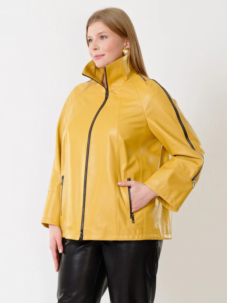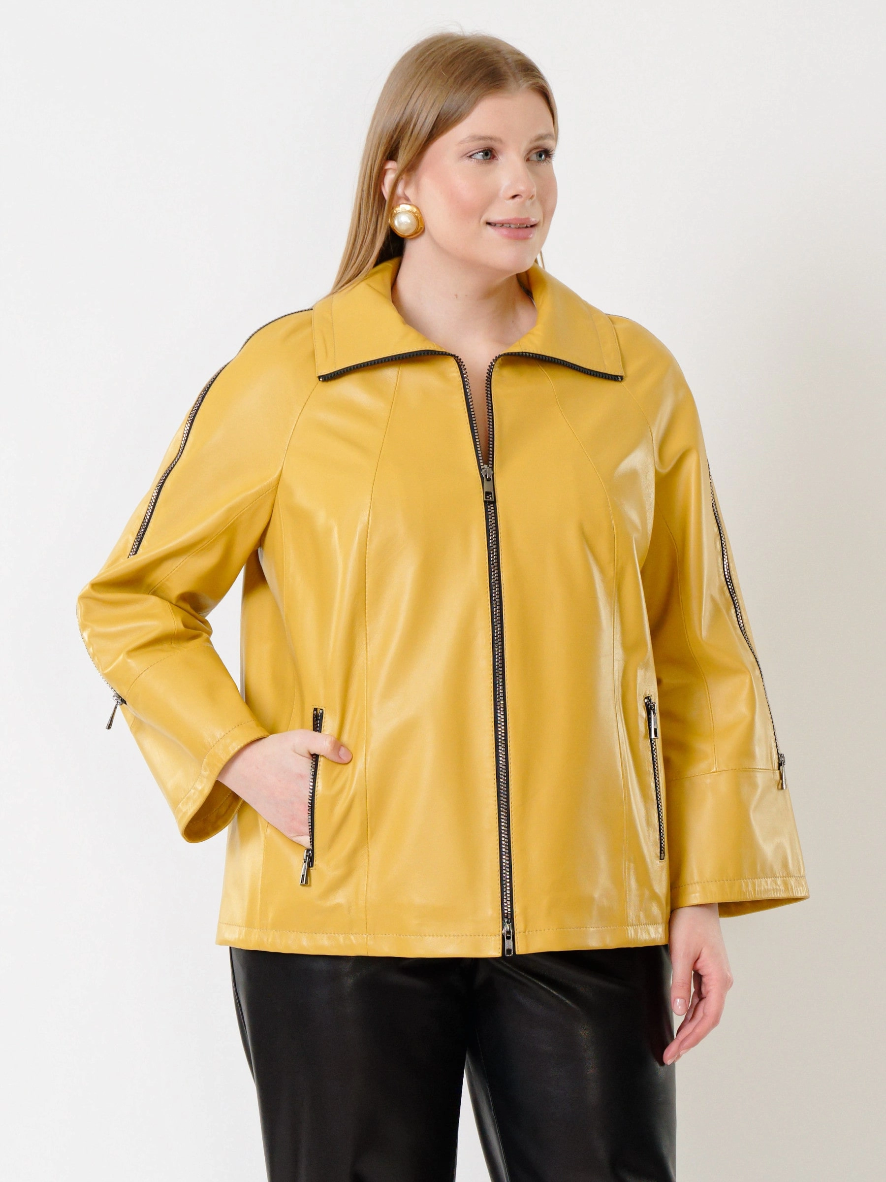 Товар кожаная женская куртка оверсайз 385, желтая, размер 52, артикул 91331 выполнен из натуральной кожи с застежкой молния. Рассчитан на сезон: демисезон. Длина изделия 65 см, силуэт свободный.