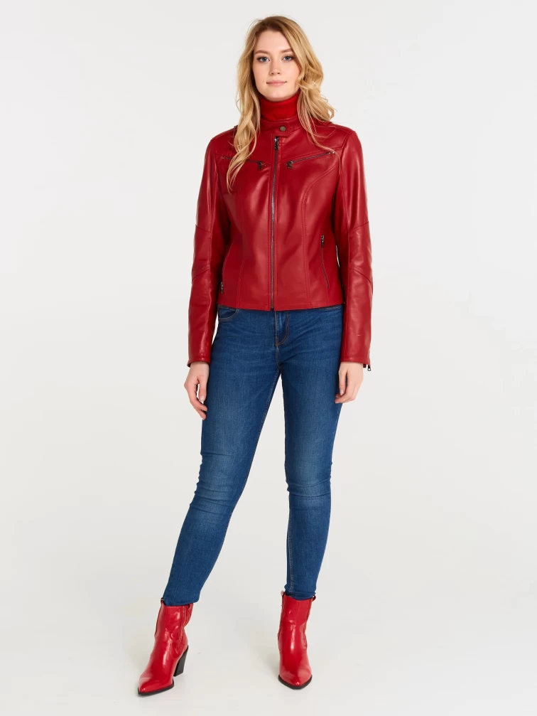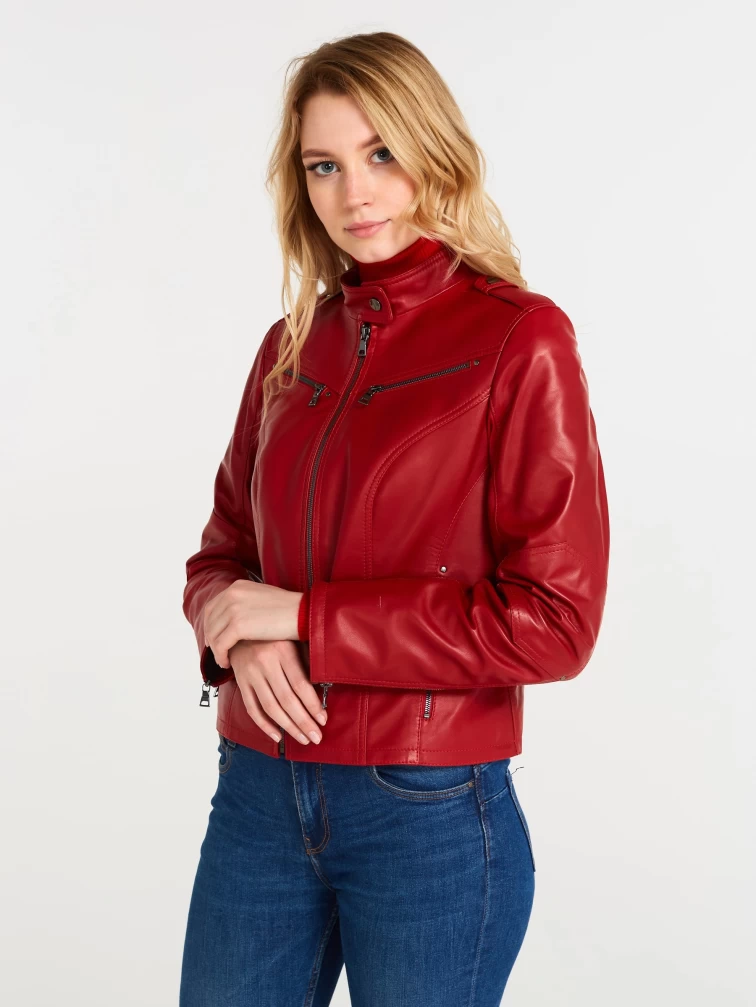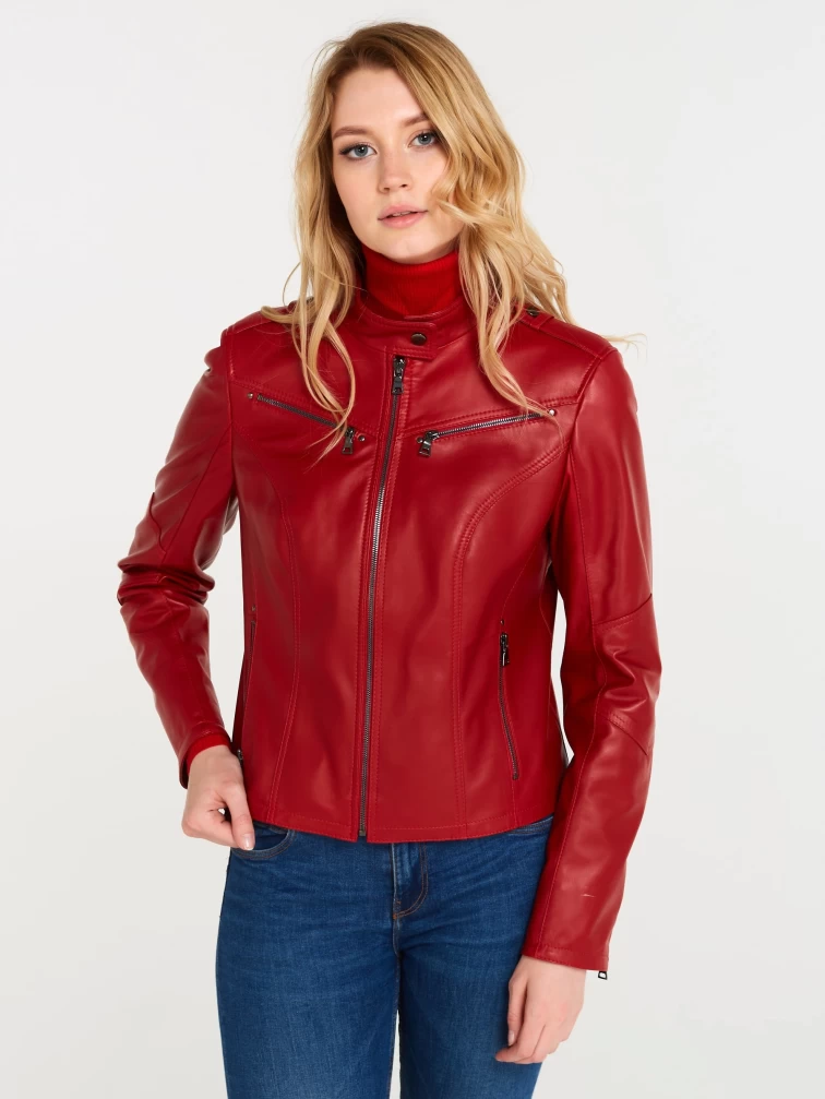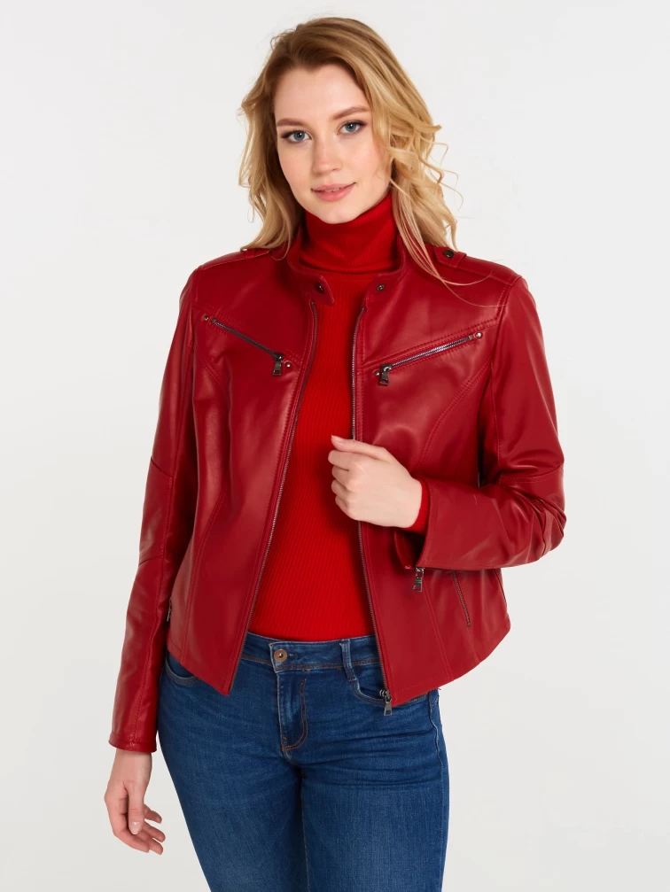 Кожаная куртка женская 399, красная, размер 48, артикул 18370
