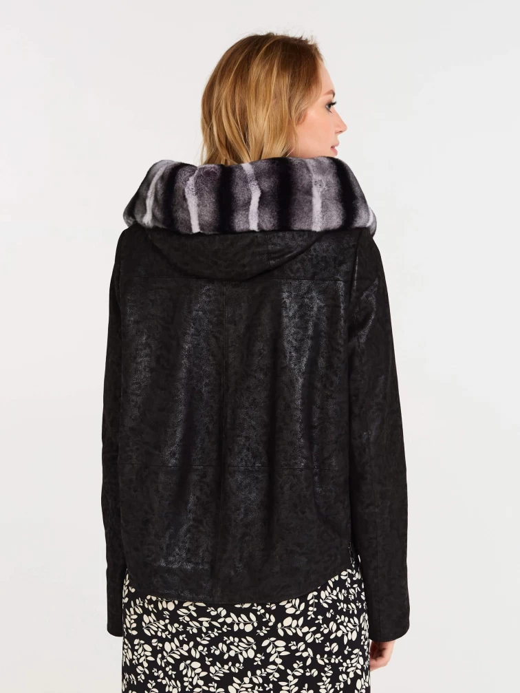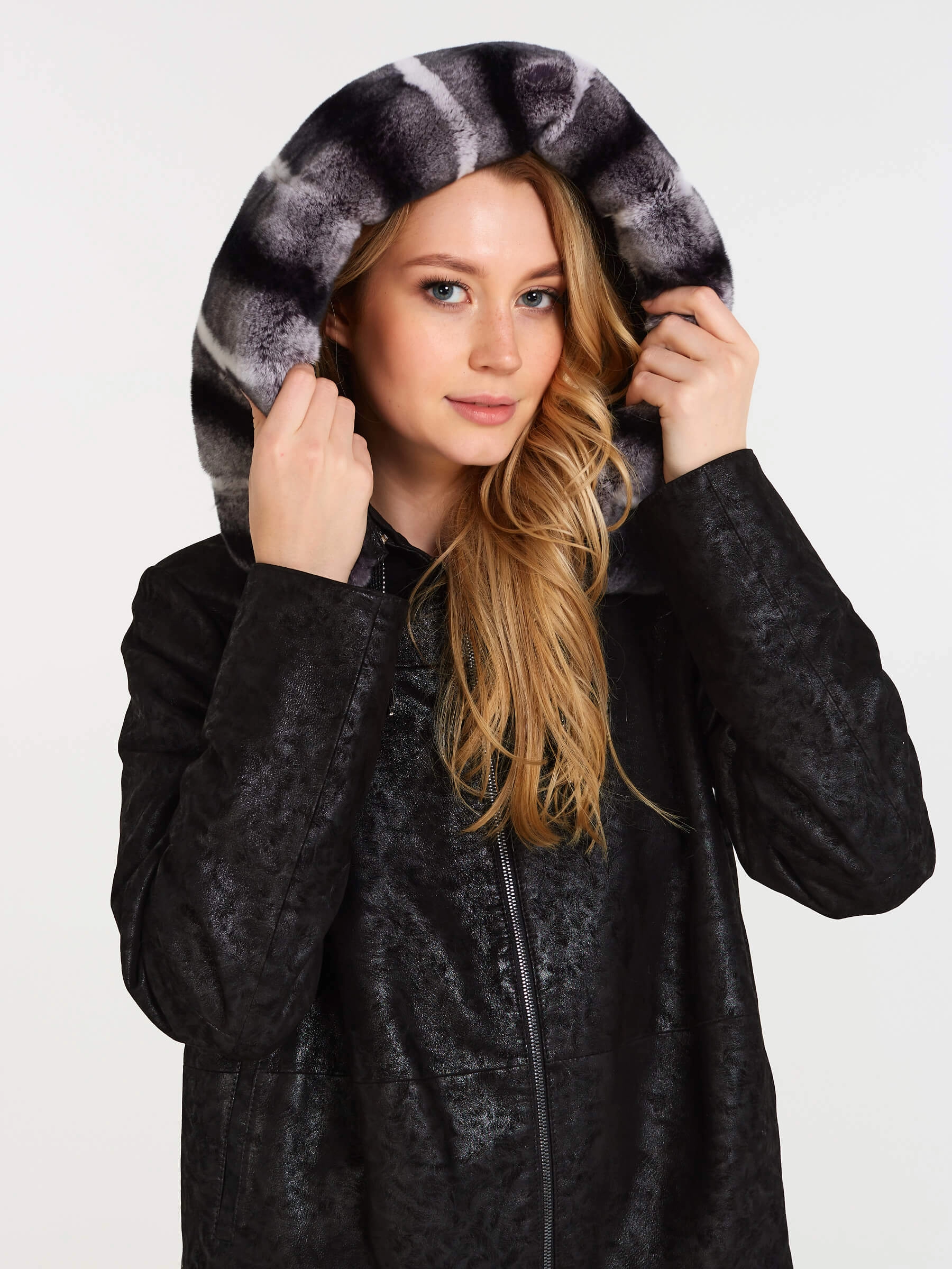Куртка из замши высочайшего качества. На замшу нанесено лёгкое защитно-декоративное покрытие. Удобный капюшон, оптимальный по объёму. Отделка мехом кролика породы Рекс. Застёжка-молния YKK. Новейший утеплитель шерстепон содержит овечью шерсть, внешне похож на пуховой платок. Идеальная работа наших портных. Ювелирные швы. Аккуратность во всей работе. Чёткая, комфортная посадка по фигуре.