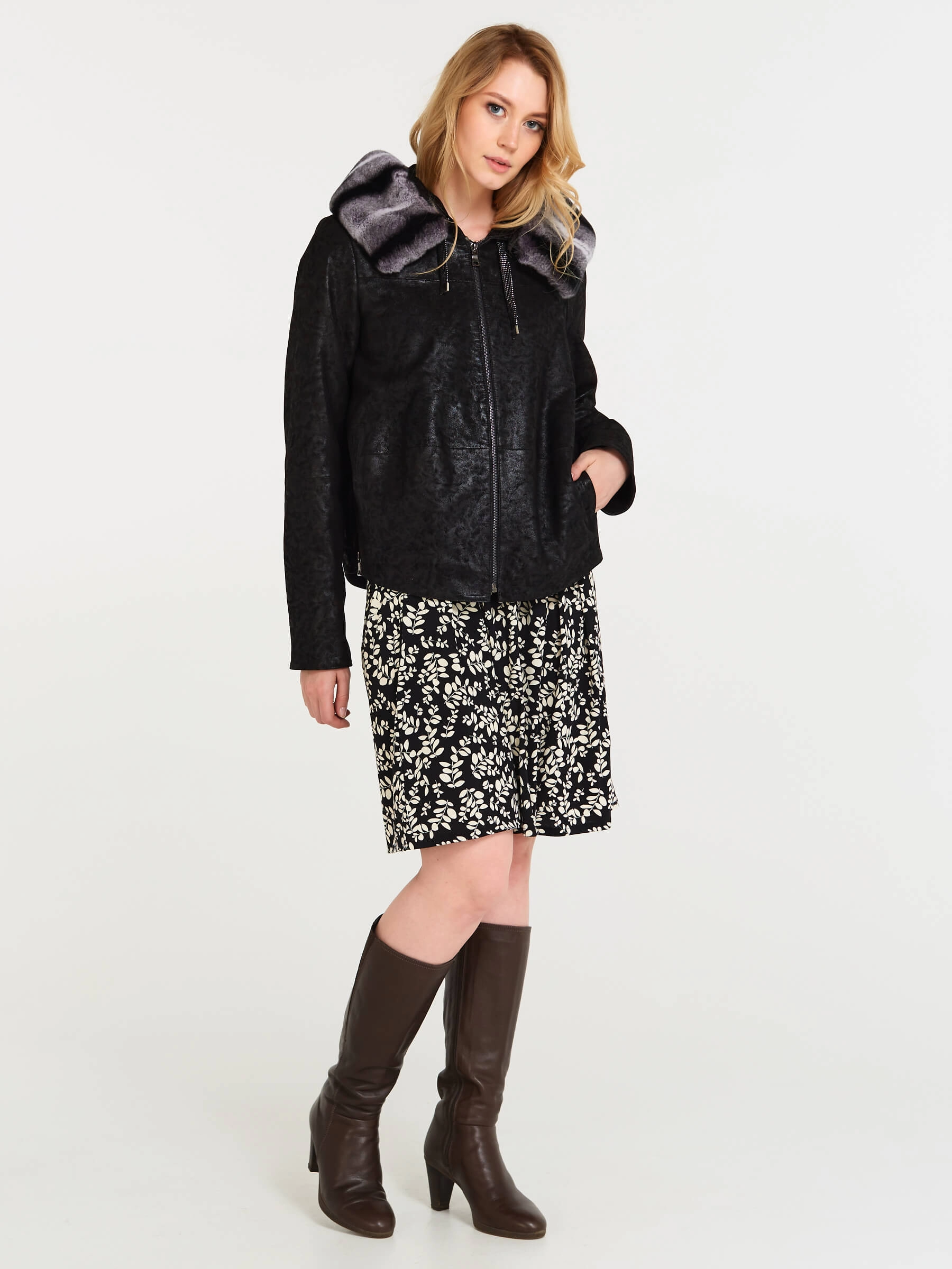 Товар короткая замшевая утепленная женская куртка с мехом "рекса" 308ш, черная, размер 46, артикул 23620 выполнен из натуральной замши с застежкой молния. Рассчитан на сезон: демисезон. Длина изделия 63 см, силуэт свободный.