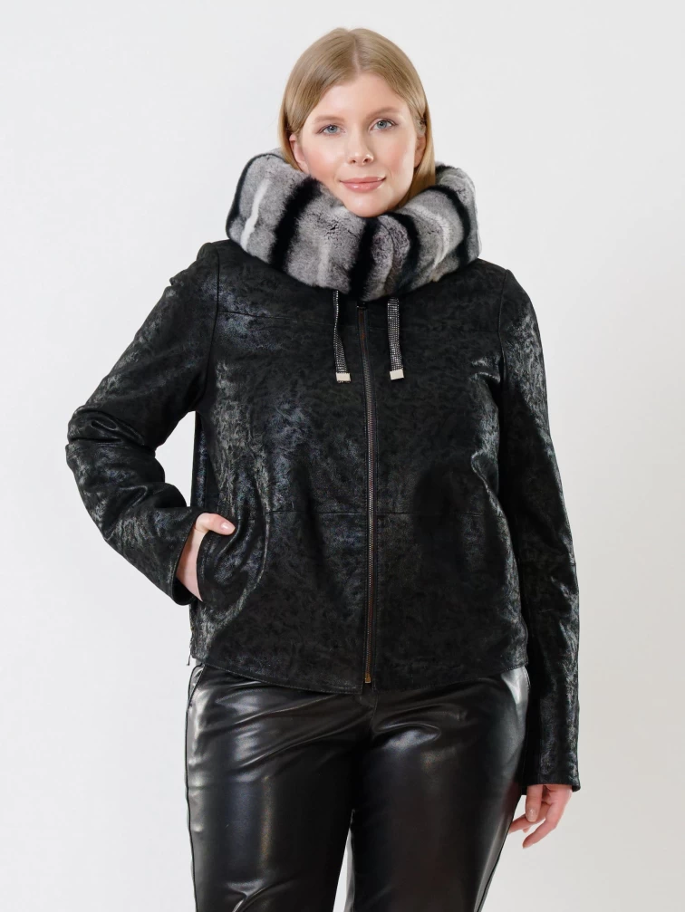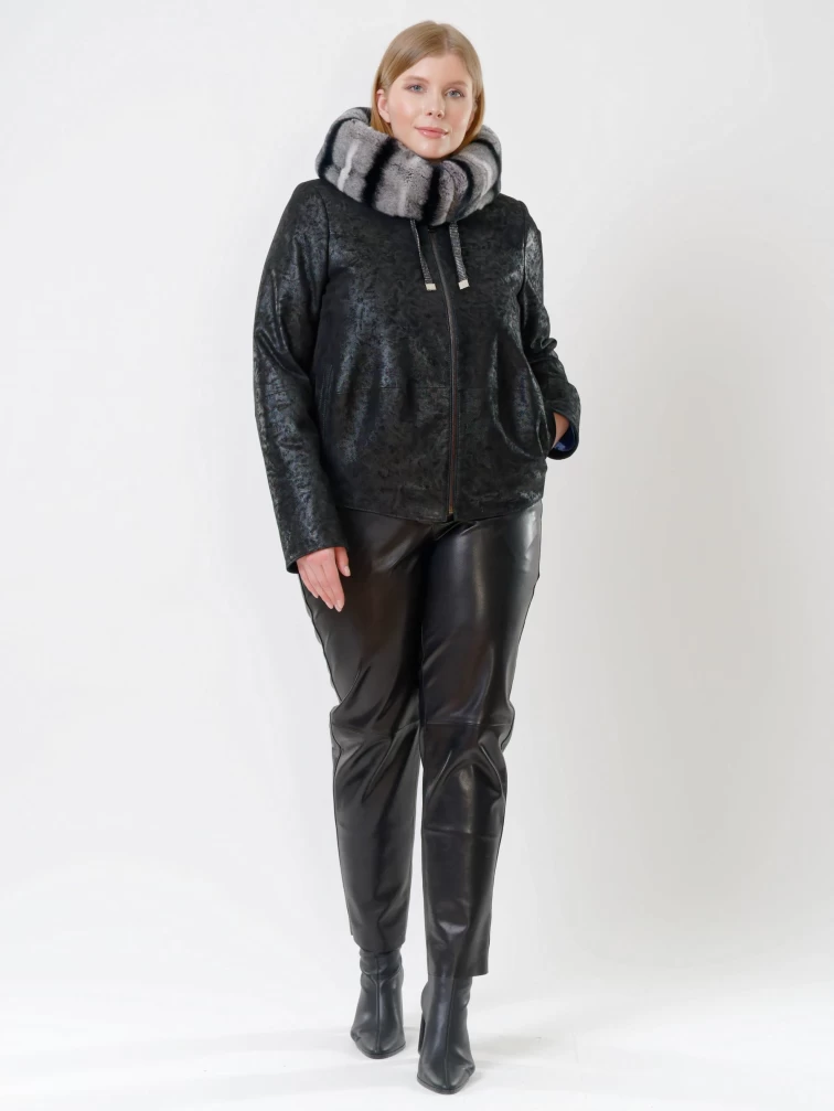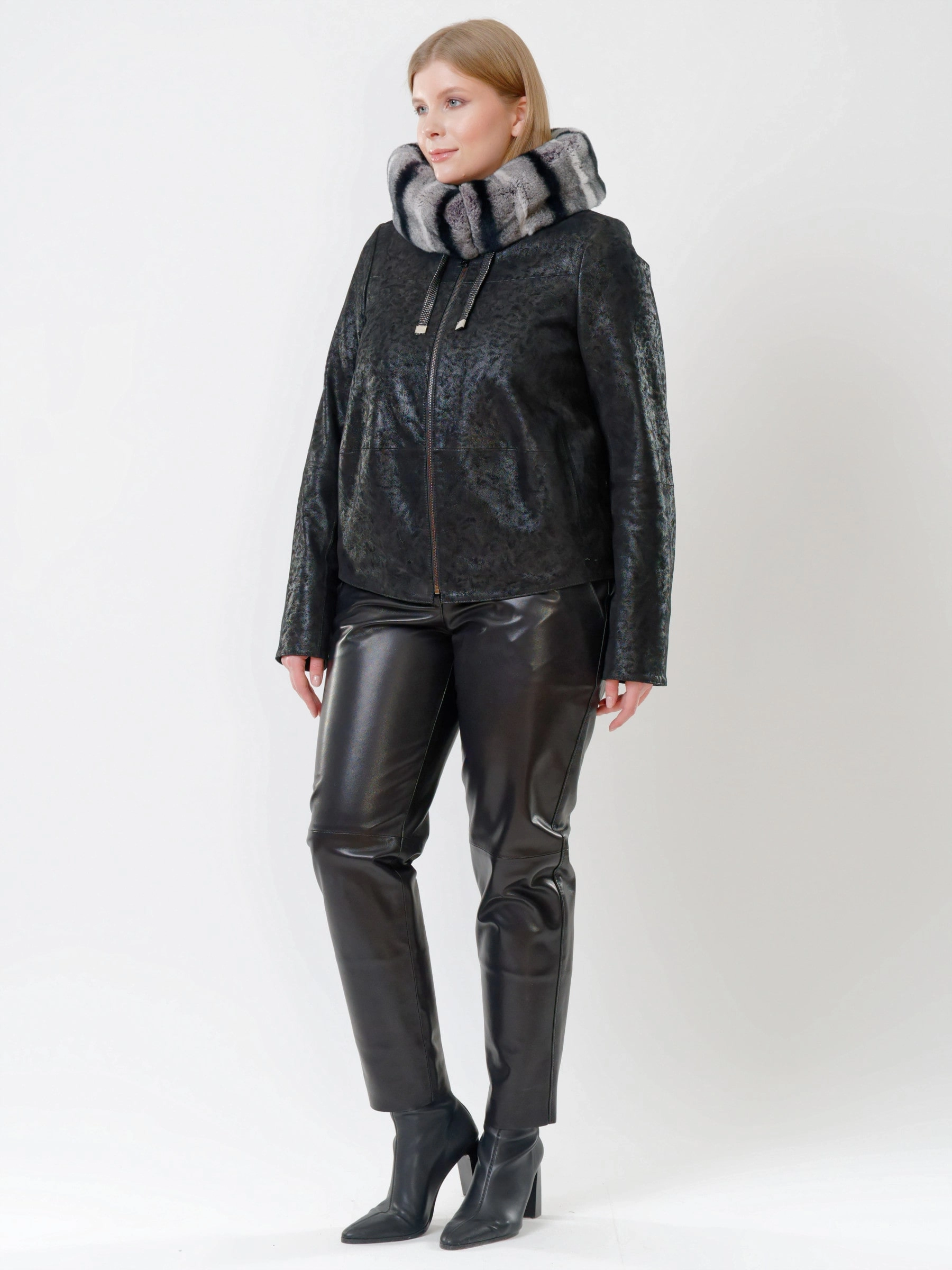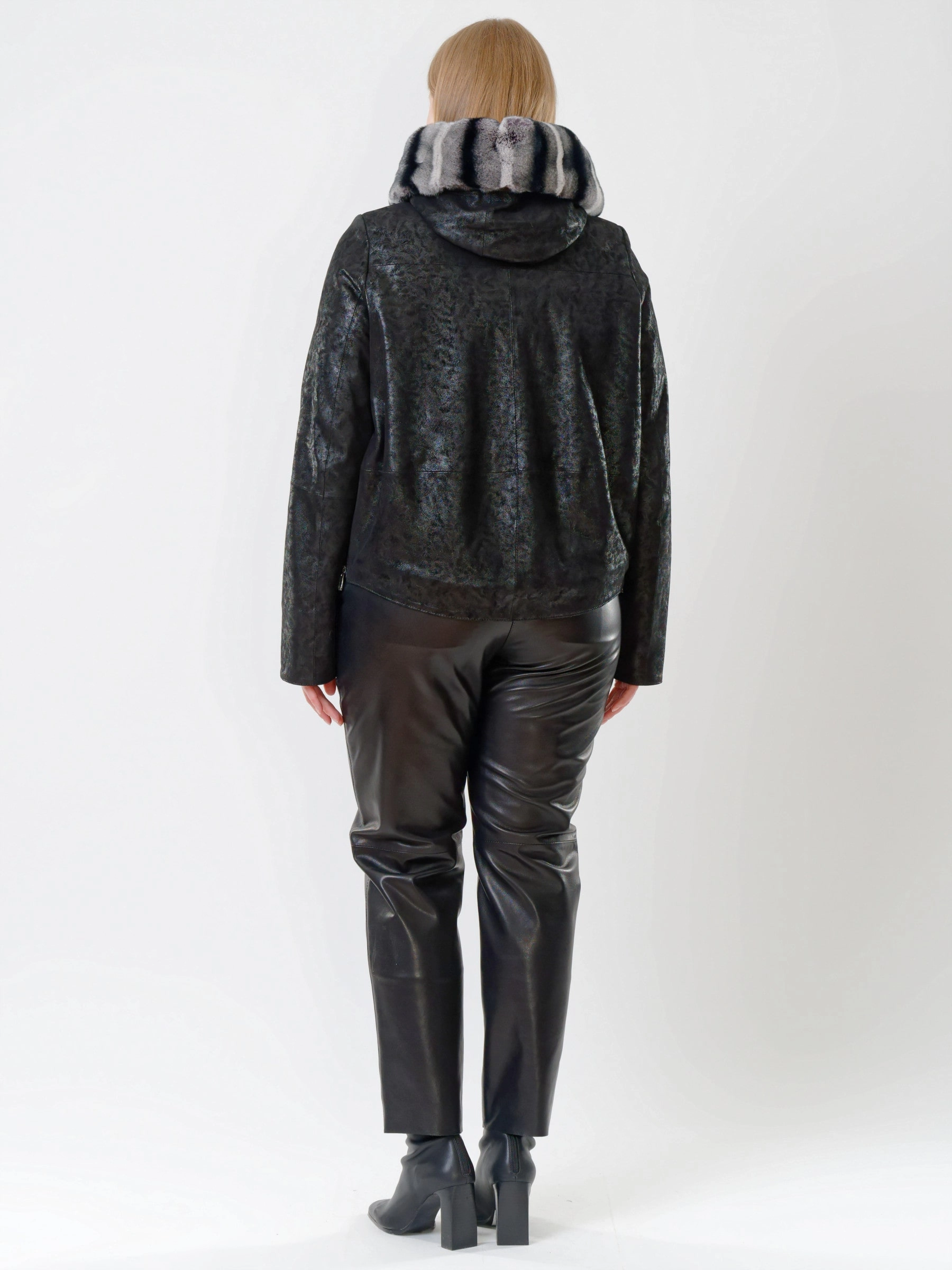 Товар короткая замшевая утепленная женская куртка с мехом "рекса" 308ш, черная, размер 46, артикул 23731 выполнен из натуральной замши с застежкой молния. Рассчитан на сезон: демисезон. Длина изделия 63 см, силуэт свободный.