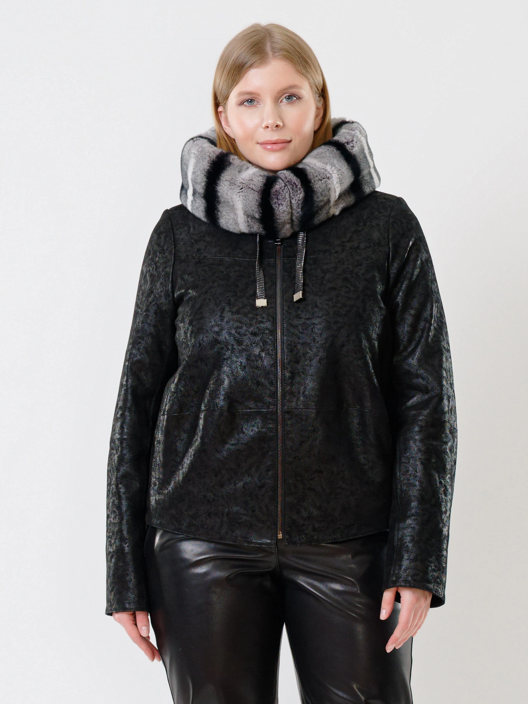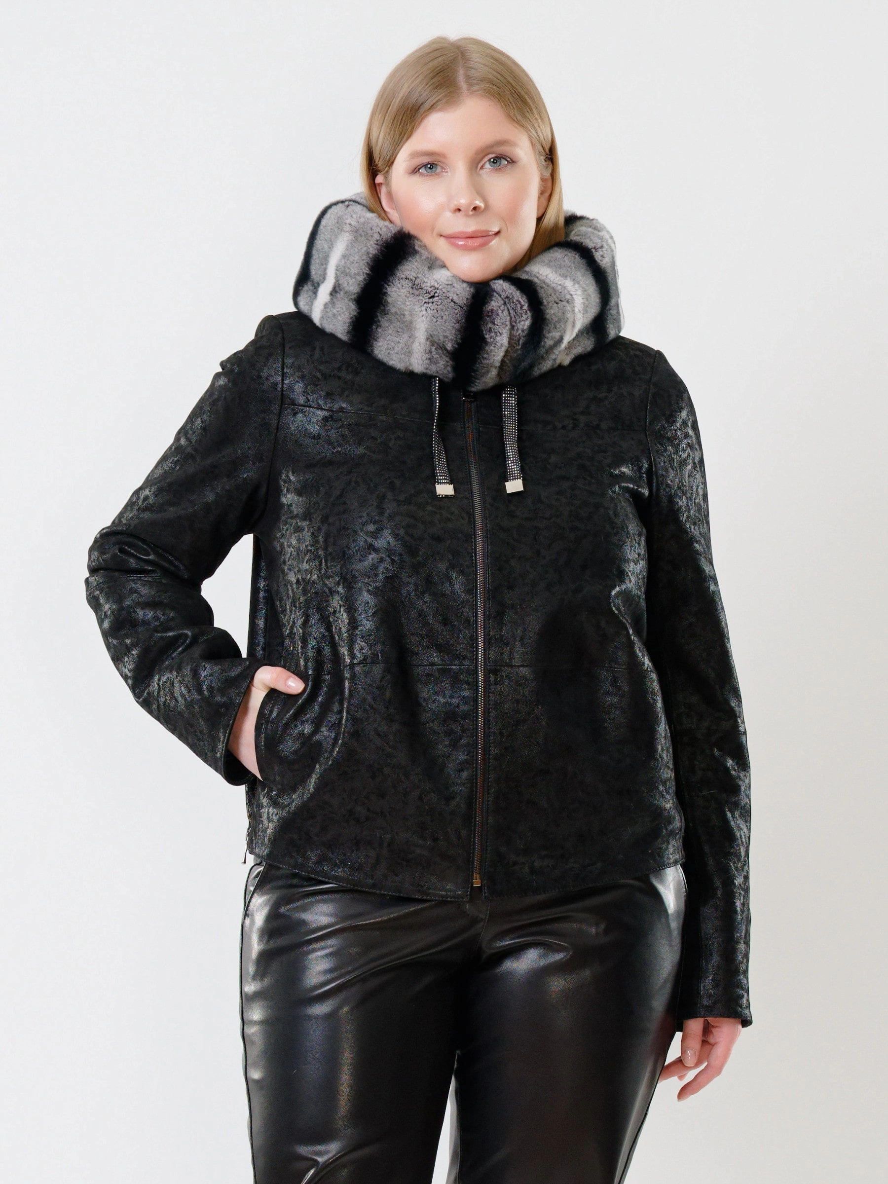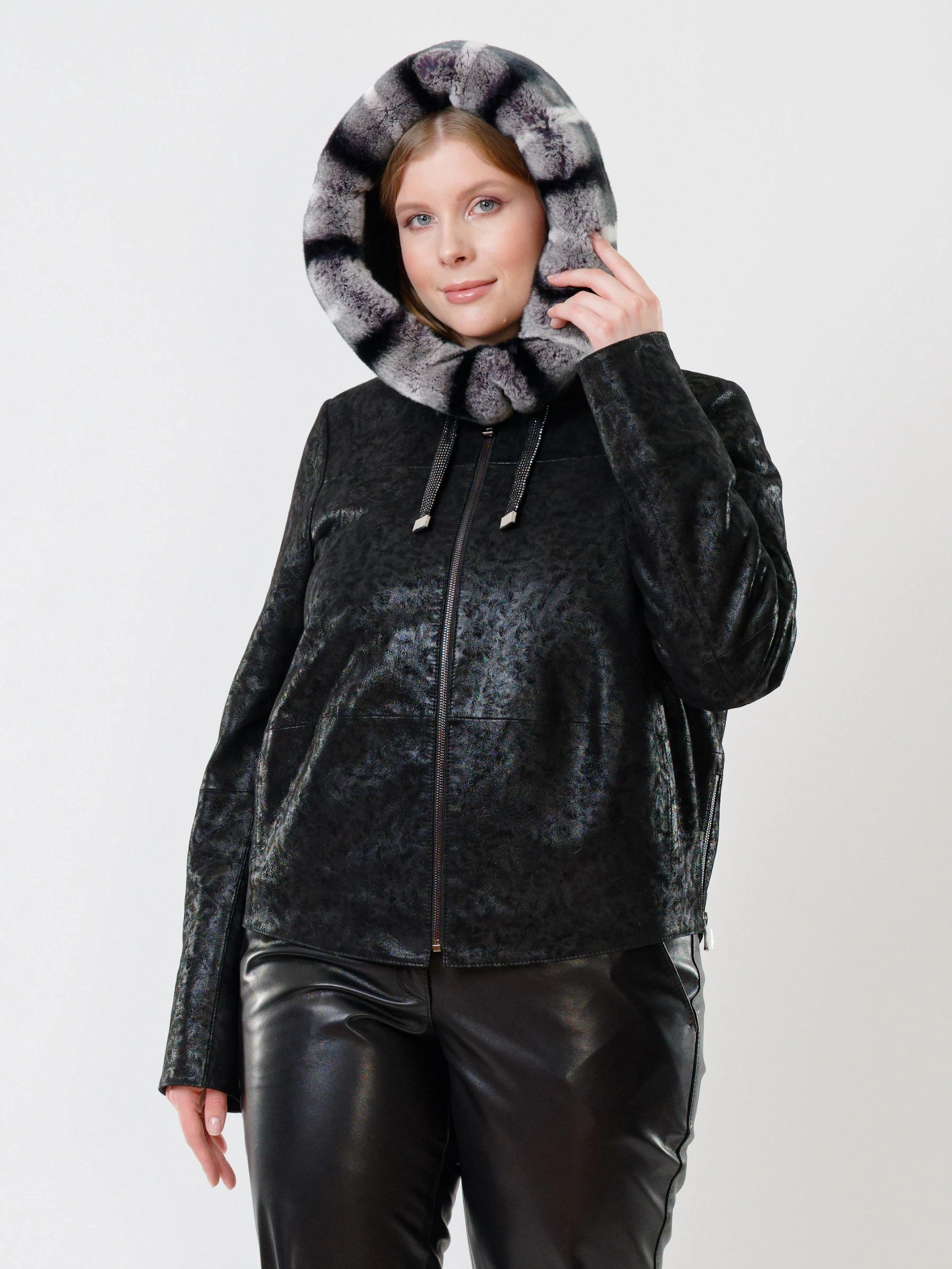 Короткая замшевая утепленная женская куртка с мехом "рекса" 308ш, черная, размер 46, артикул 23731