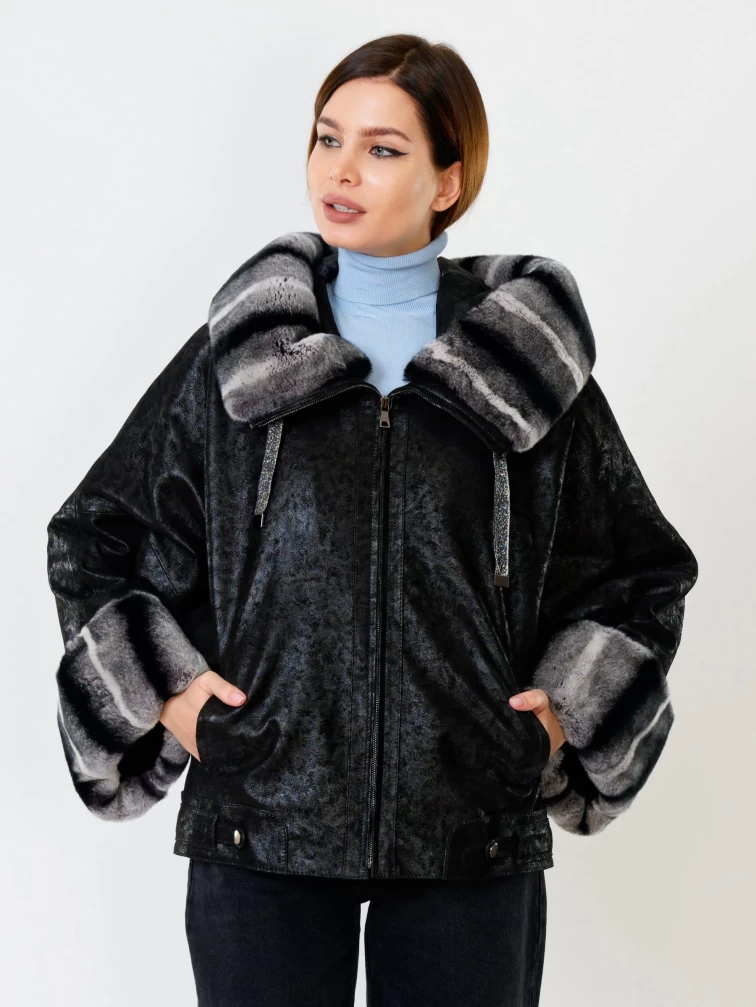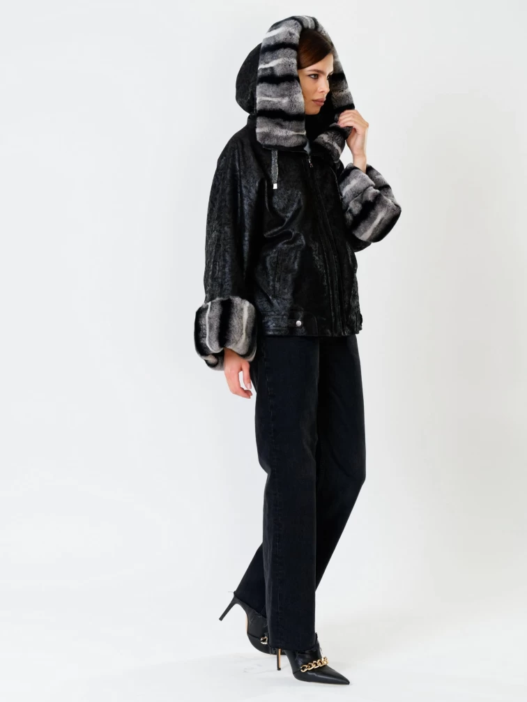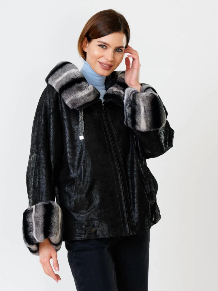 Замшевая утепленная женская куртка с мехом "рекса" 397ш, черная, размер 48, артикул 91090