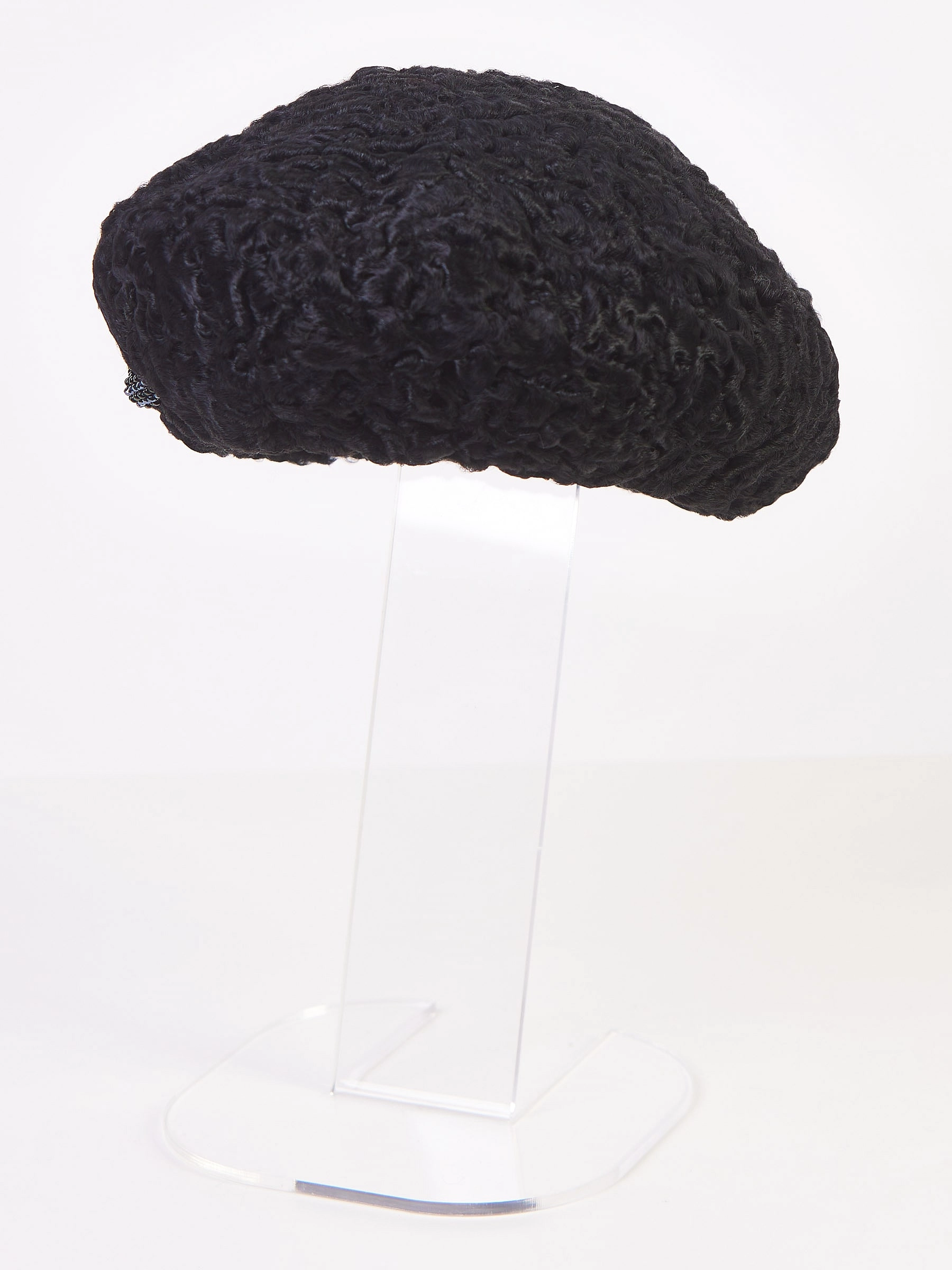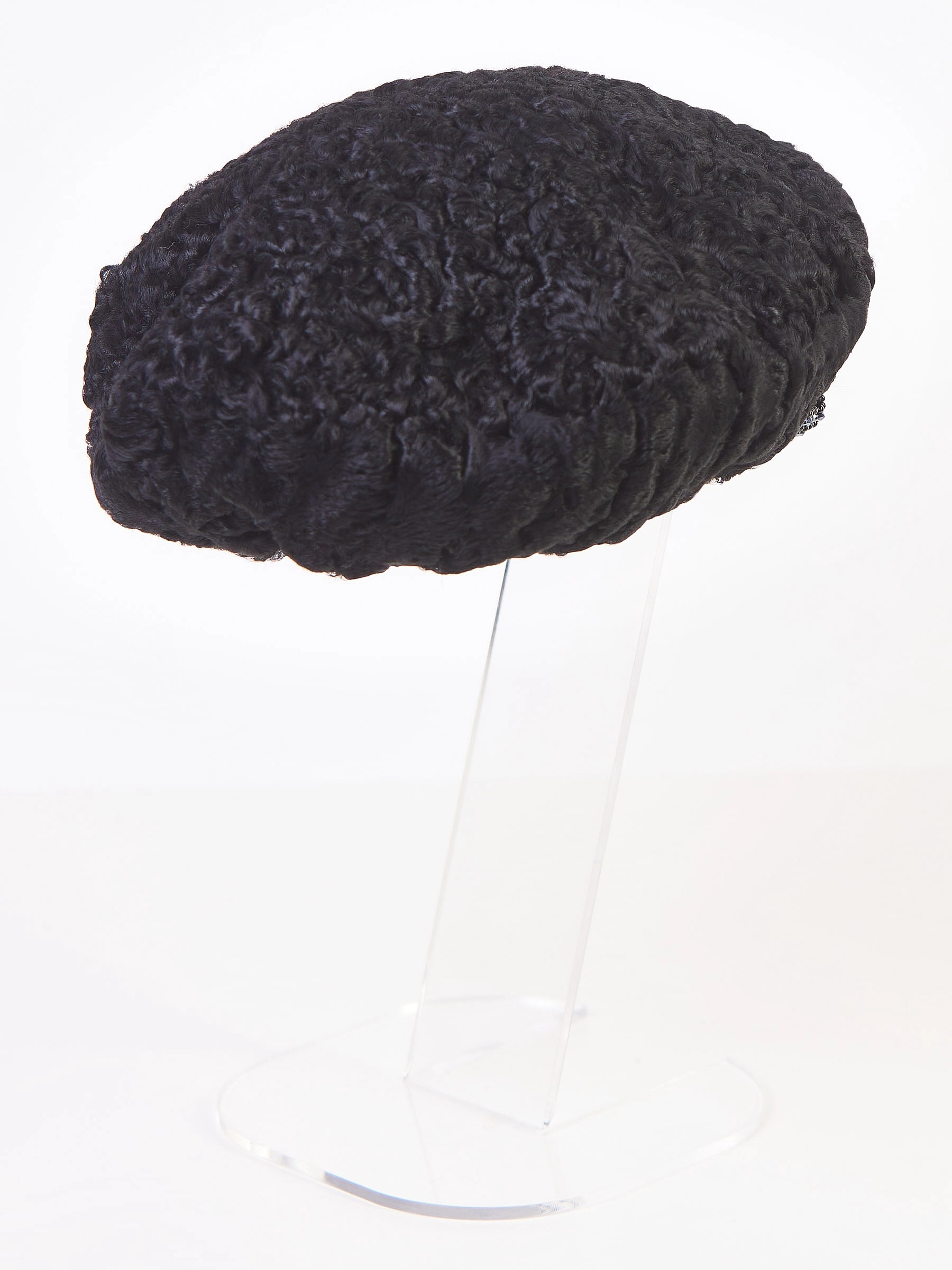 Меховой головной (берет) убор из меха каракуля женский М-277, черный, размер 58, артикул 51360