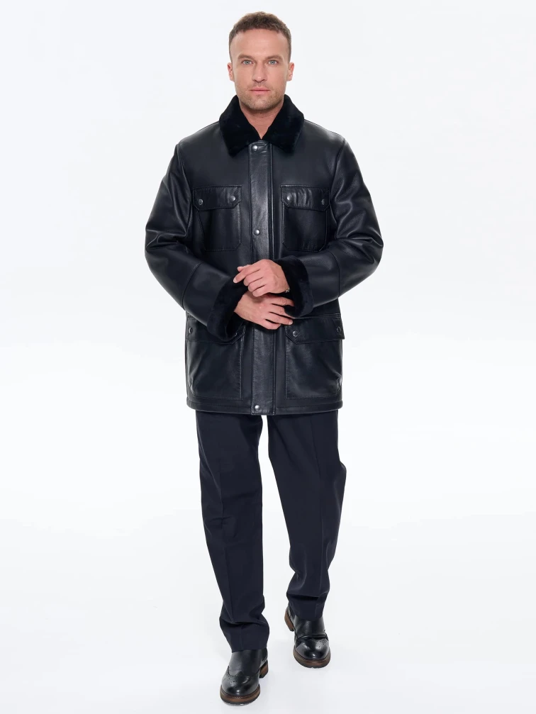 Молодежная мужская дубленка премиум класса 440, черная, размер 48, артикул 41220