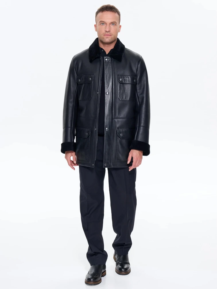 Товар молодежная мужская дубленка премиум класса 440, черная, размер 48, артикул 41220 выполнен из овчина "мерино" с застежкой молния+кнопки. Рассчитан на сезон: зима. Длина изделия 81 см, силуэт прямой.