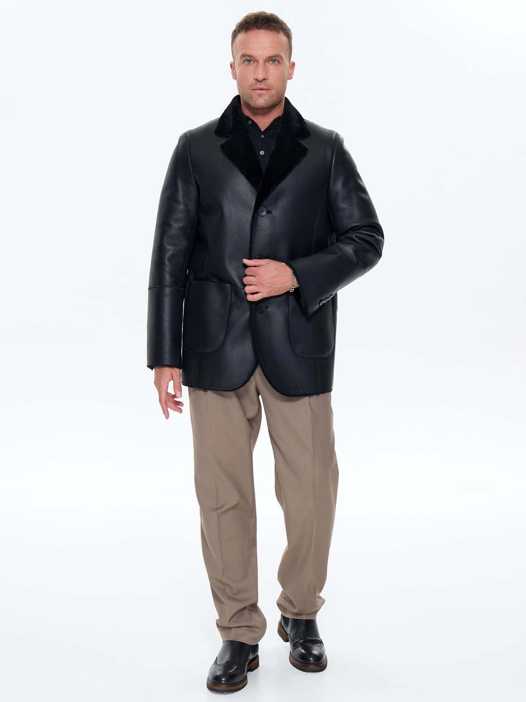 Мужская дубленка пиджак премиум класса 443, черная, размер 48, артикул 41210