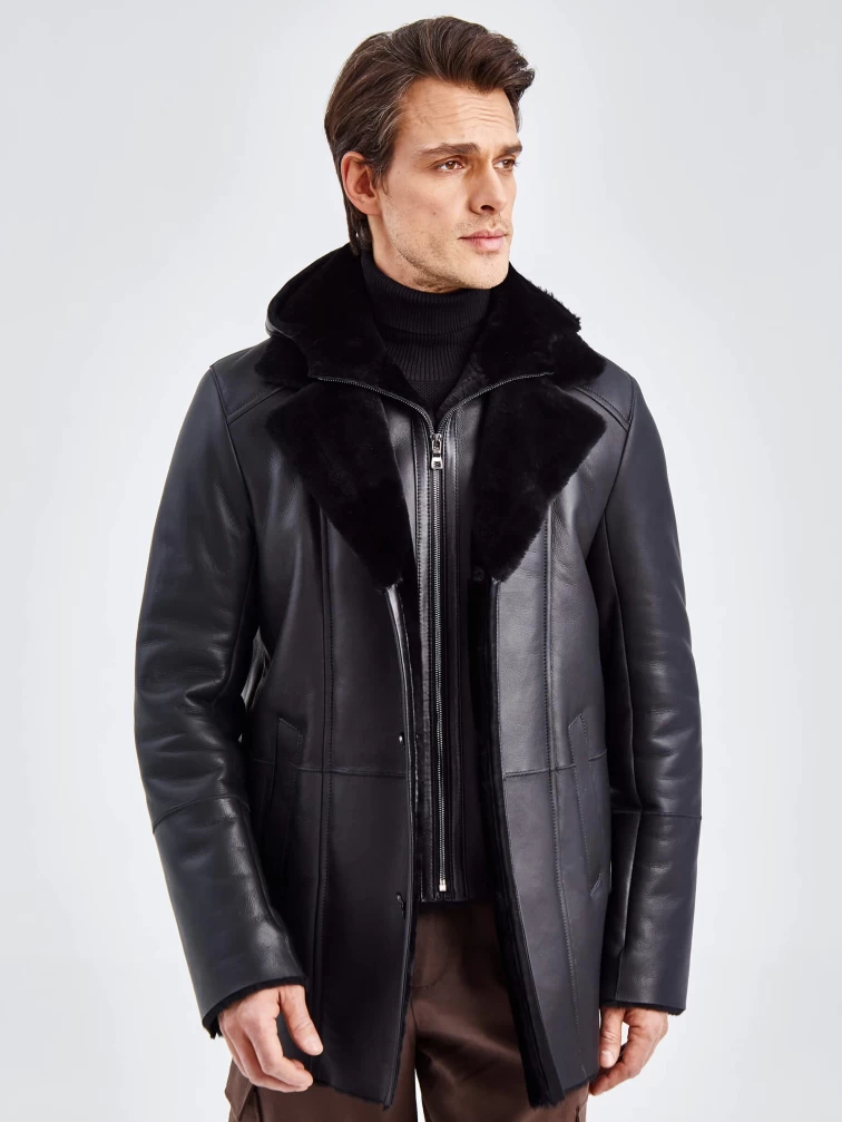 Товар мужская классическая дубленка премиум класса со съемным капюшоном 436, черная, размер 48, артикул 71450 выполнен из овчина "мерино" с застежкой пуговицы. Рассчитан на сезон: зима. Длина изделия 78 см, силуэт прямой.