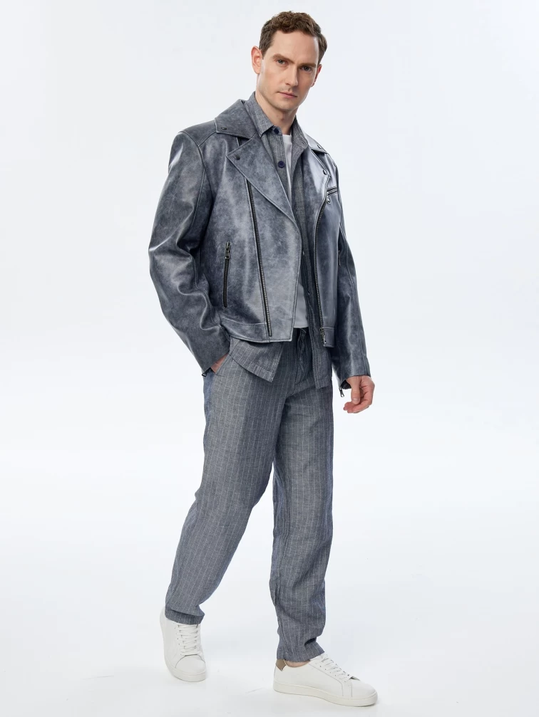 Мужская кожаная куртка косуха премиум класса 560, серая, размер 48, артикул 29670