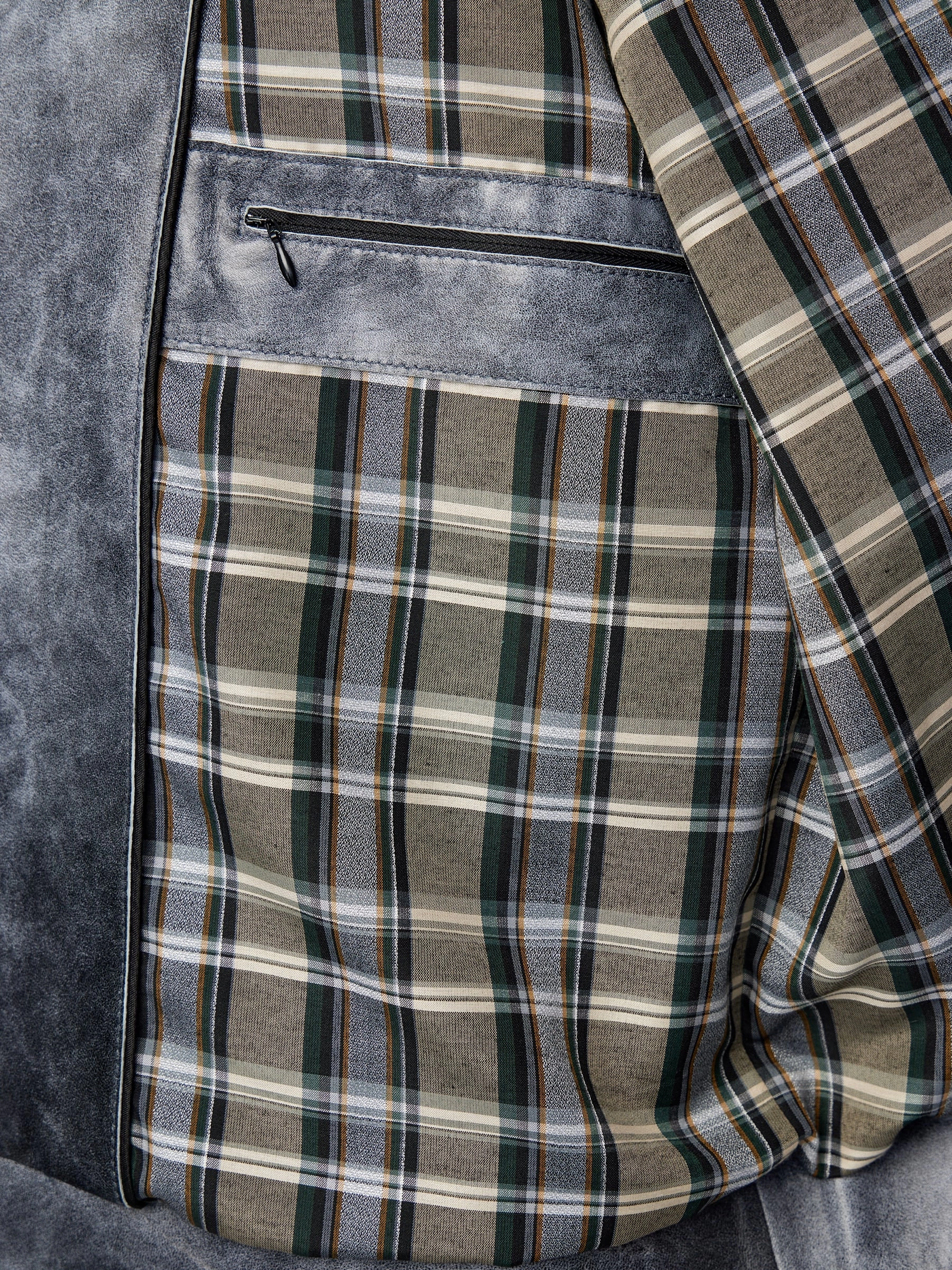 Товар мужская кожаная куртка косуха премиум класса 560, серая, размер 48, артикул 29670 выполнен из натуральной кожи с застежкой молния. Рассчитан на сезон: весна-лето. Длина изделия 67 см, силуэт прямой.