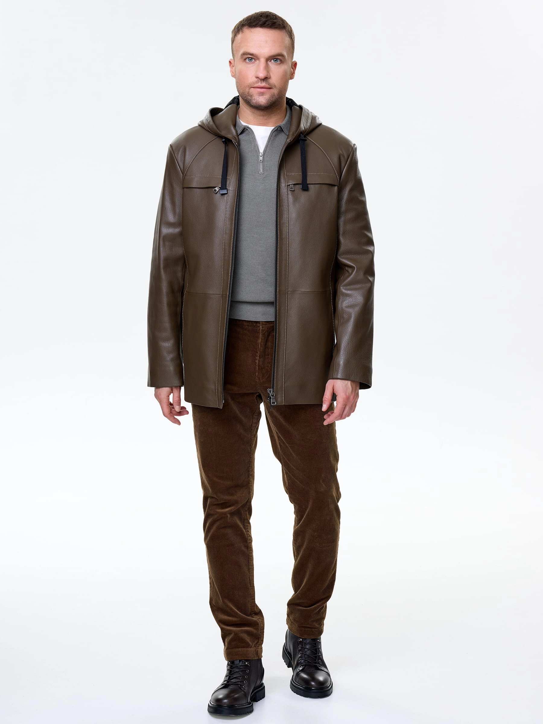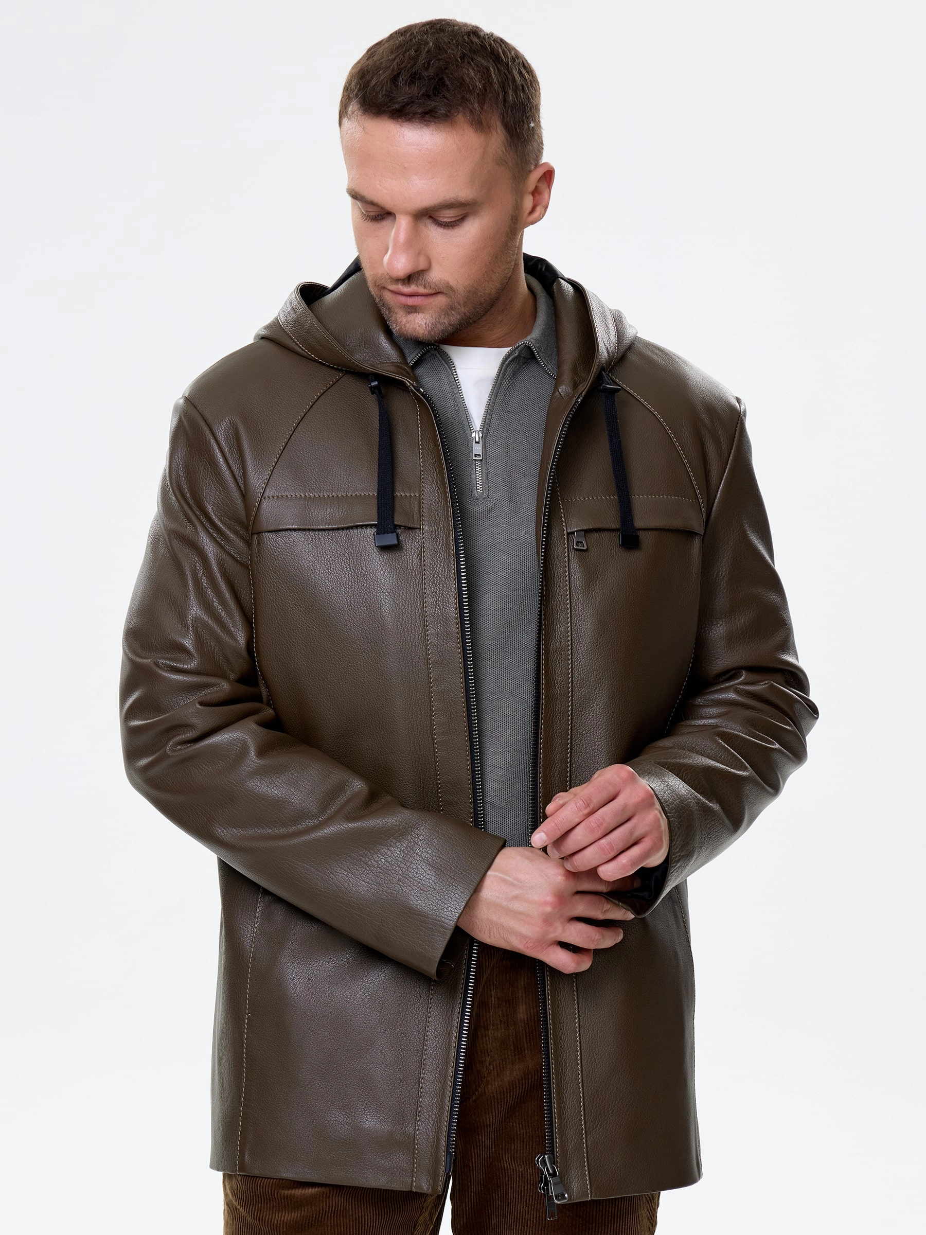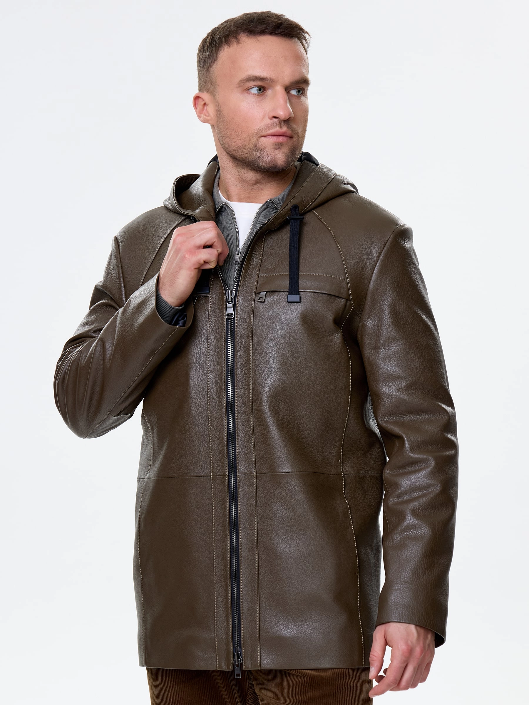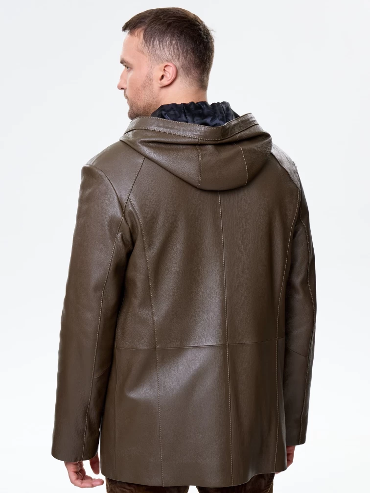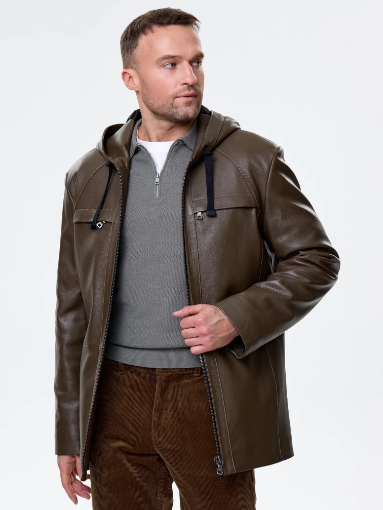Мужская кожаная куртка с капюшоном премиум класса 552, хаки, размер 48, артикул 41130