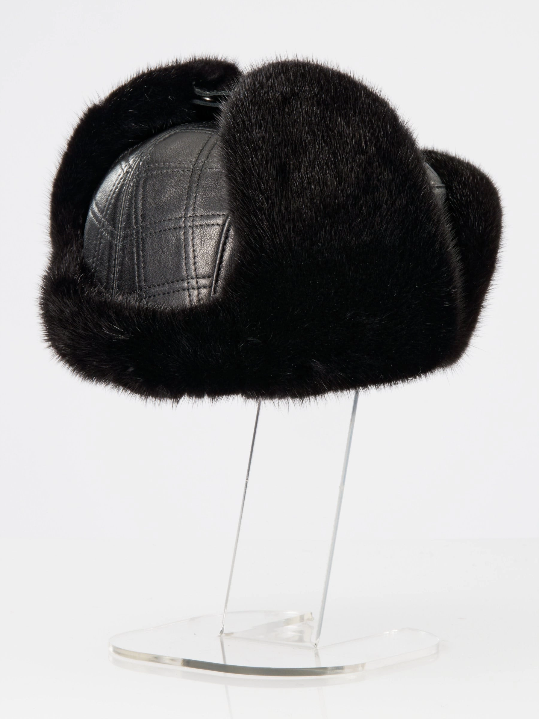 Товар головной убор из меха норки с кожей мужской н02/2кв, черный, размер 58, артикул 150230 выполнен из норка крашенной. Рассчитан на сезон: осень-зима.