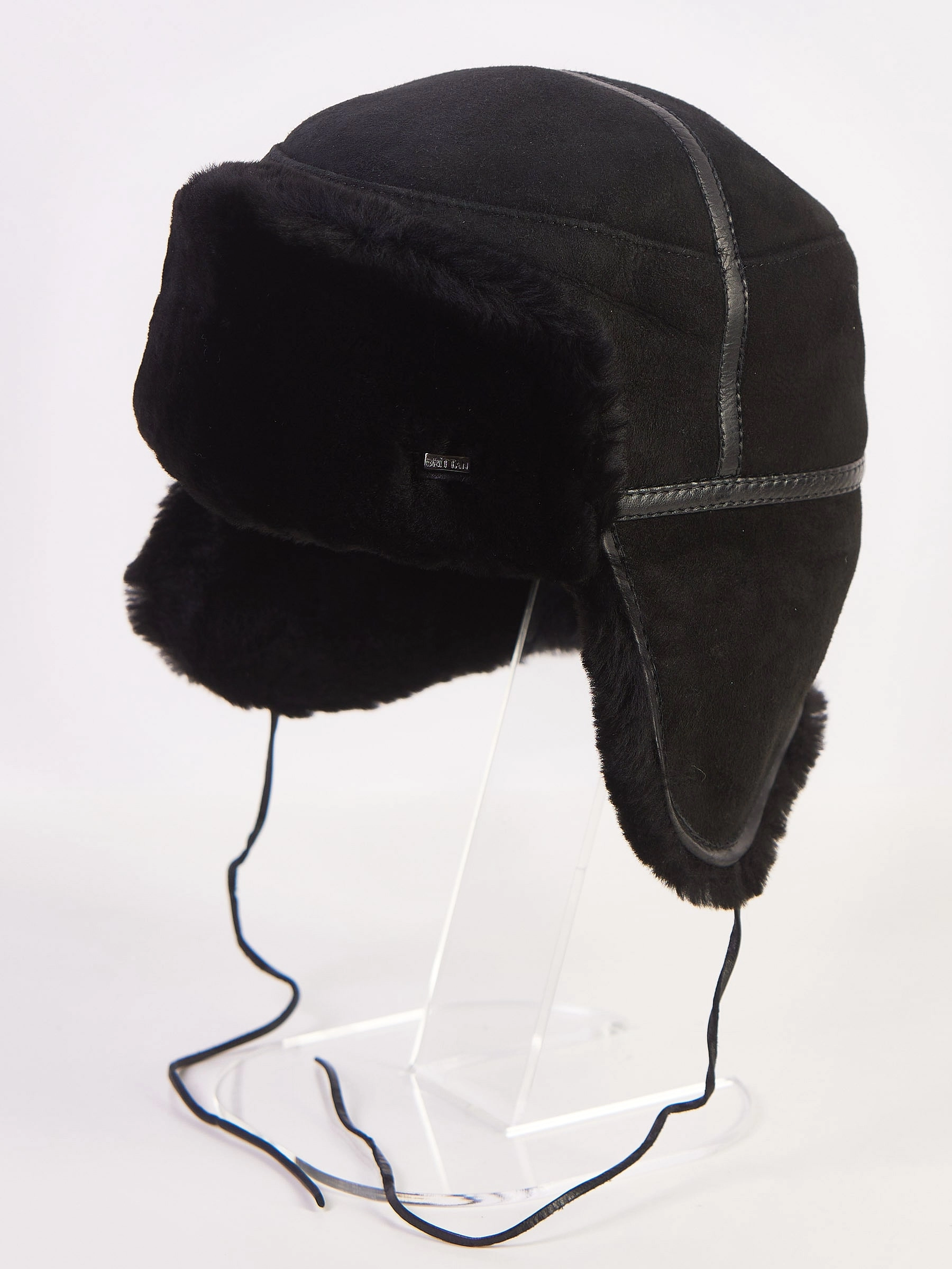 Мужской головной убор выполнен из меха натуральной овчины. Все тыльные части (козырек и тулья) выполнены из натуральной мягкой дубленочной кожи. Модель имеет ветрозащитный меховой отворот.