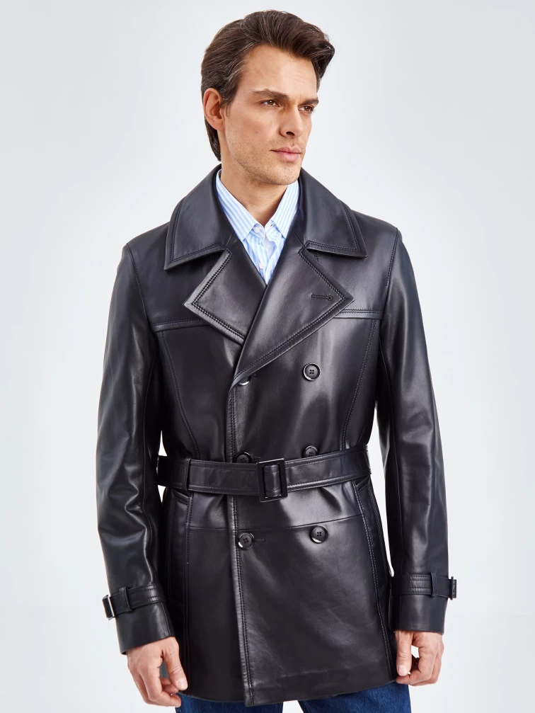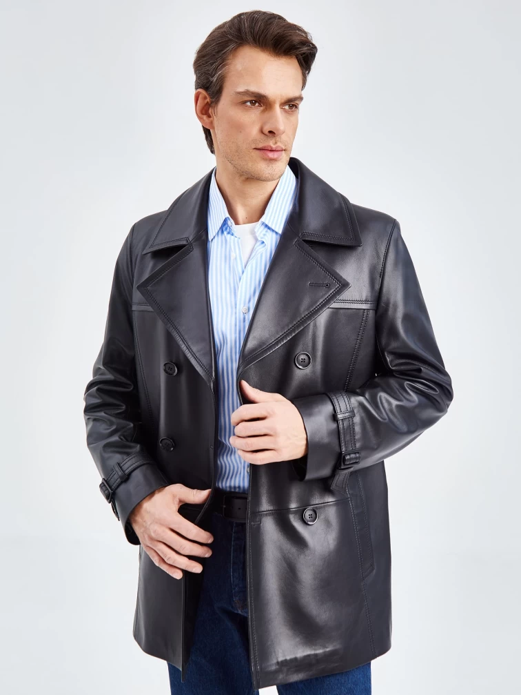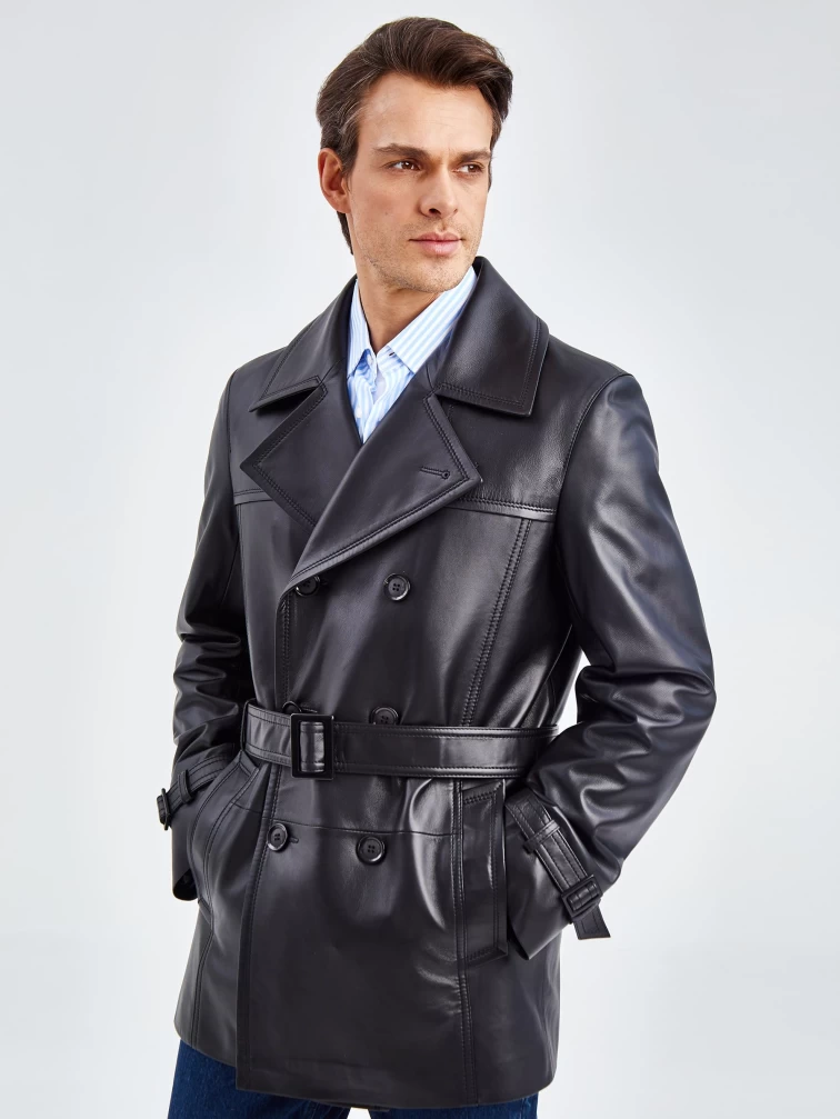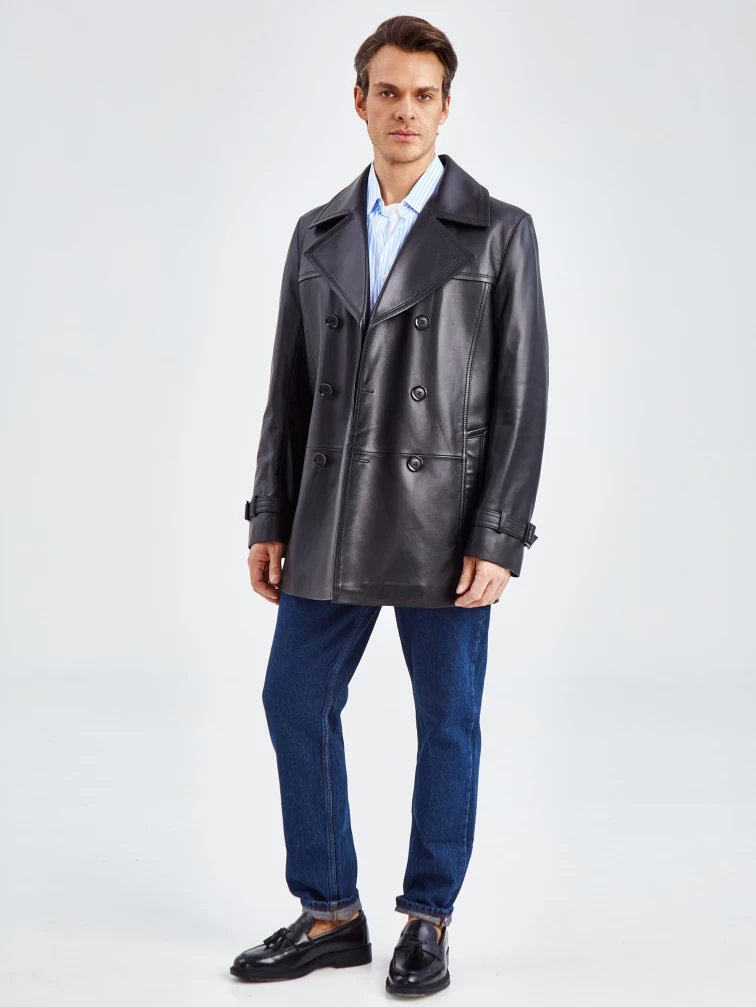 Мужской двубортный кожаный бушлат 525, черный, размер 50, артикул 41080