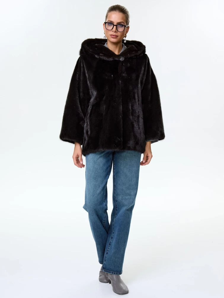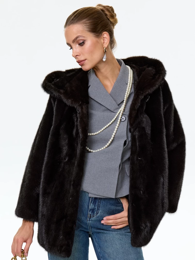 Норковая женская шуба автоледи с капюшоном Яна(к), черная, размер 48, артикул 34150