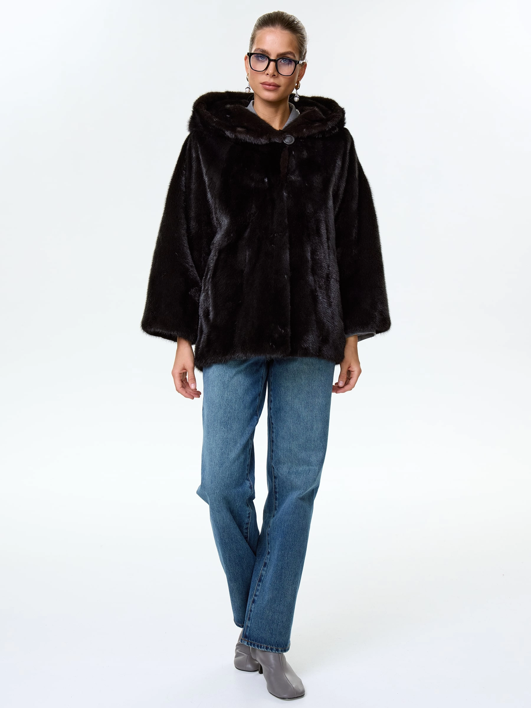 Товар норковая женская шуба автоледи с капюшоном яна(к), черная, размер 48, артикул 34150 выполнен из норка с застежкой клипсы. Рассчитан на сезон: зима. Длина изделия 65 см, силуэт прямой.