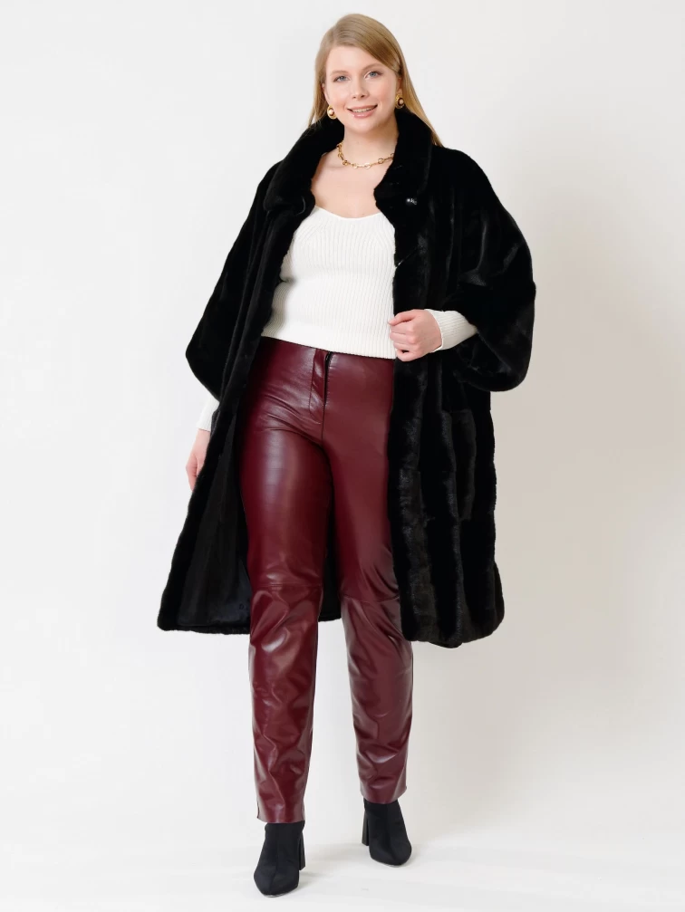 Зимний комплект женский: Пальто из меха норки 402 + Брюки 02, черный/бордовый, р. 48, арт. 111268