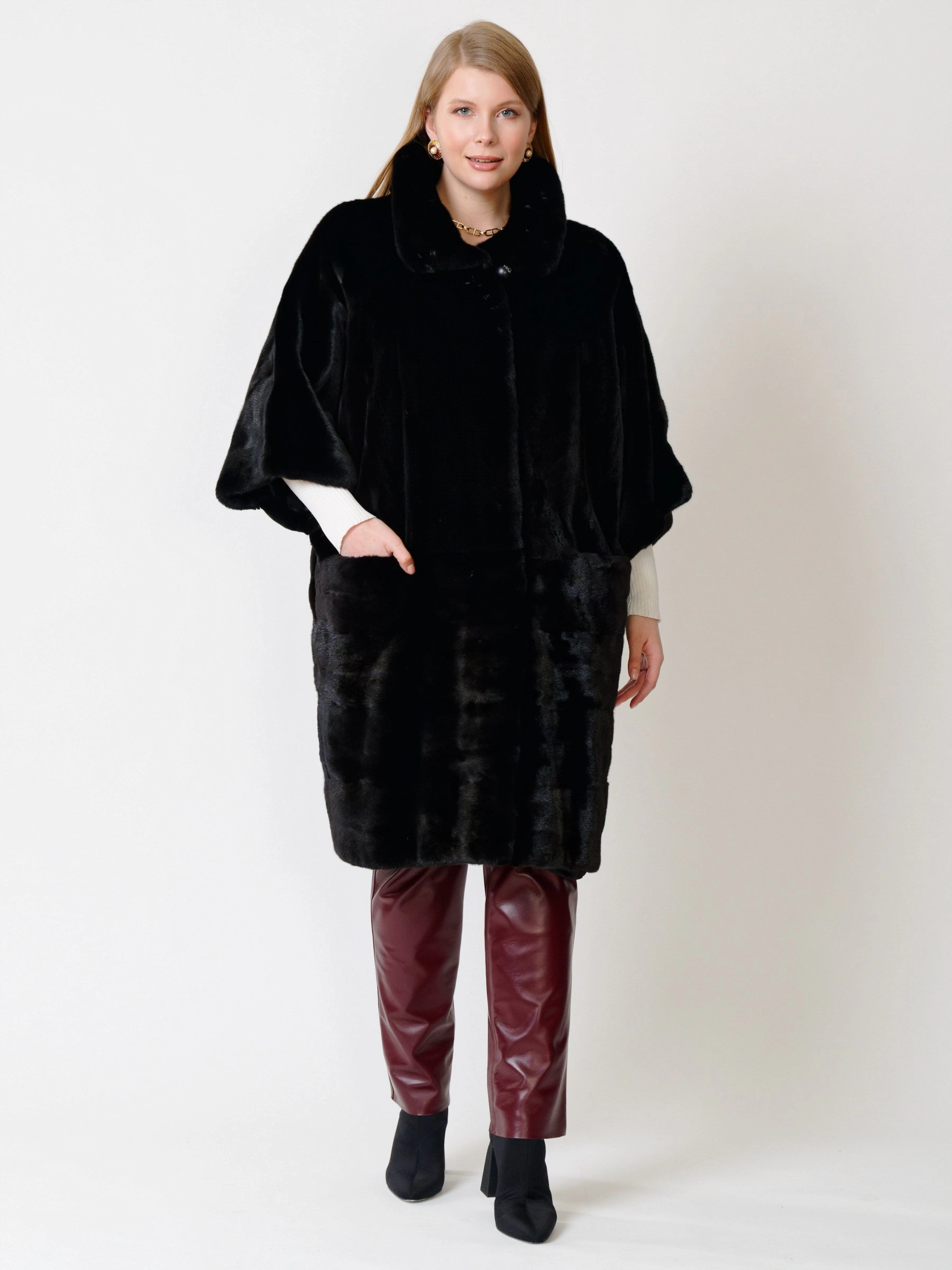 Товар зимний комплект женский: пальто из меха норки 402 + брюки 02, черный/бордовый, р. 48, арт. 111268.