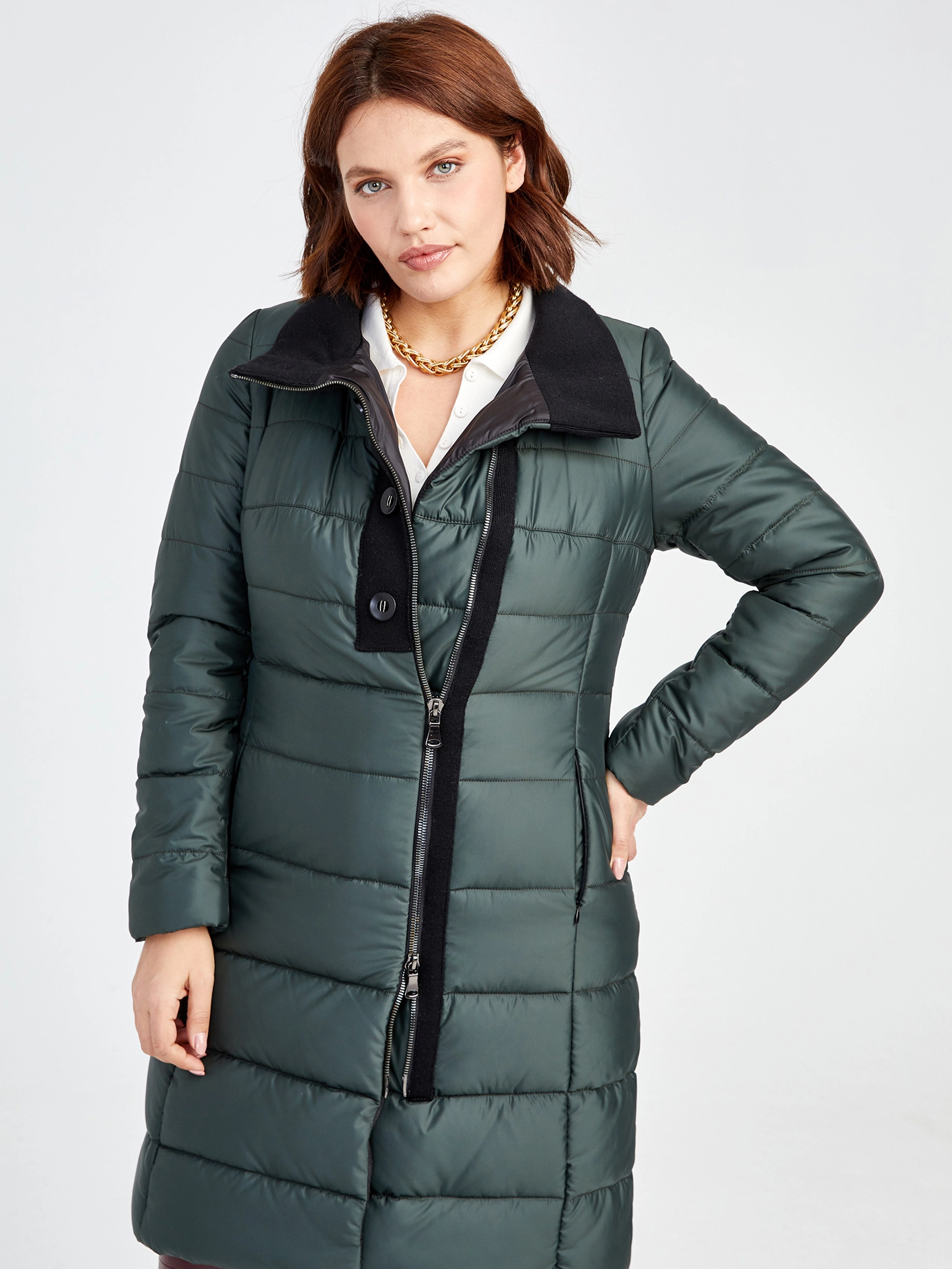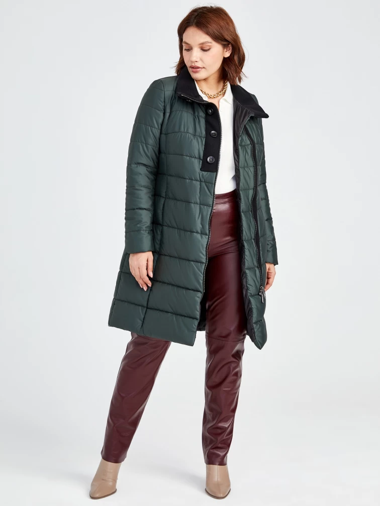 Товар текстильный женский пуховик 701, зеленый, размер 42, артикул 25240 выполнен из текстиль с застежкой молния. Рассчитан на сезон: демисезон. Длина изделия свыше 90 см, силуэт полуприлегающий.