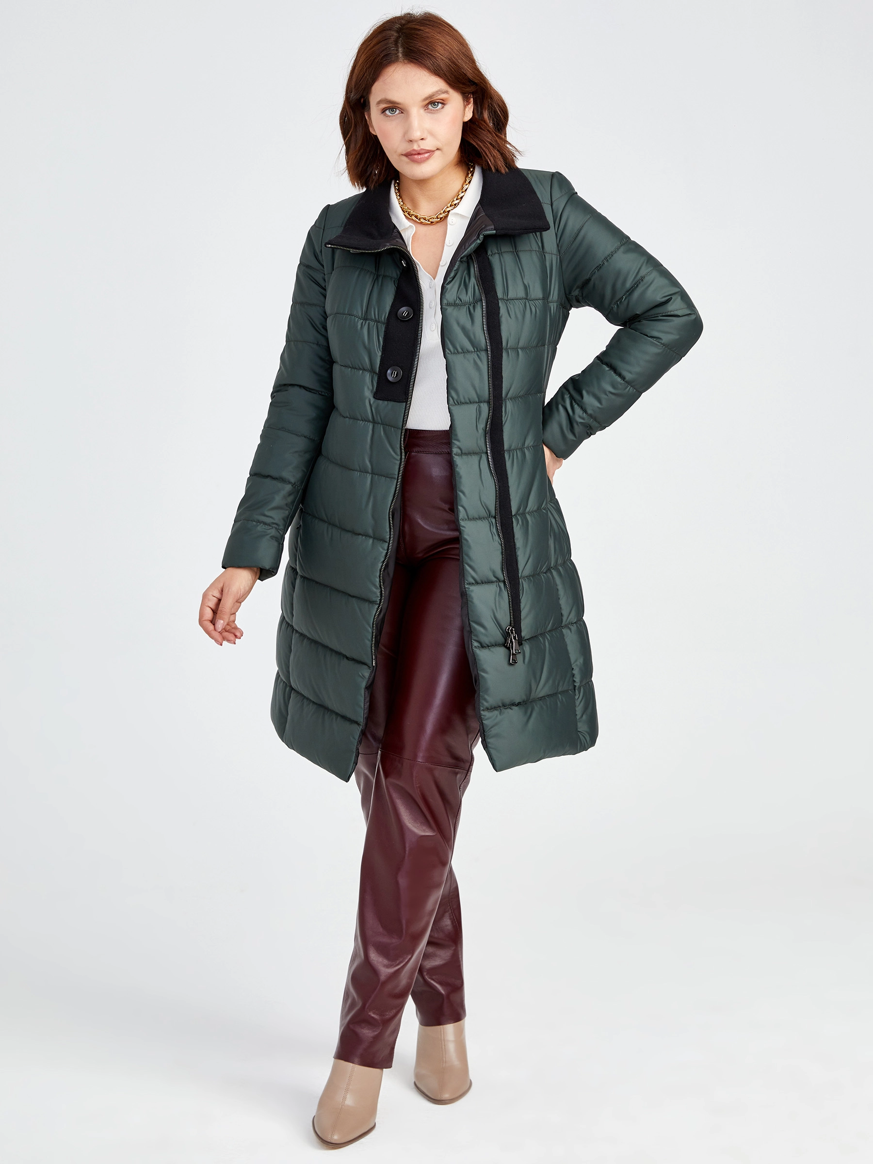 Элегантность во всем-. от изящного силуэта до качественной молнии. Воротник-стойка из прочного трикотажа, полноценная длина рукава. Это великолепное и комфортное пальто подчеркнет вашу женственность и красоту.