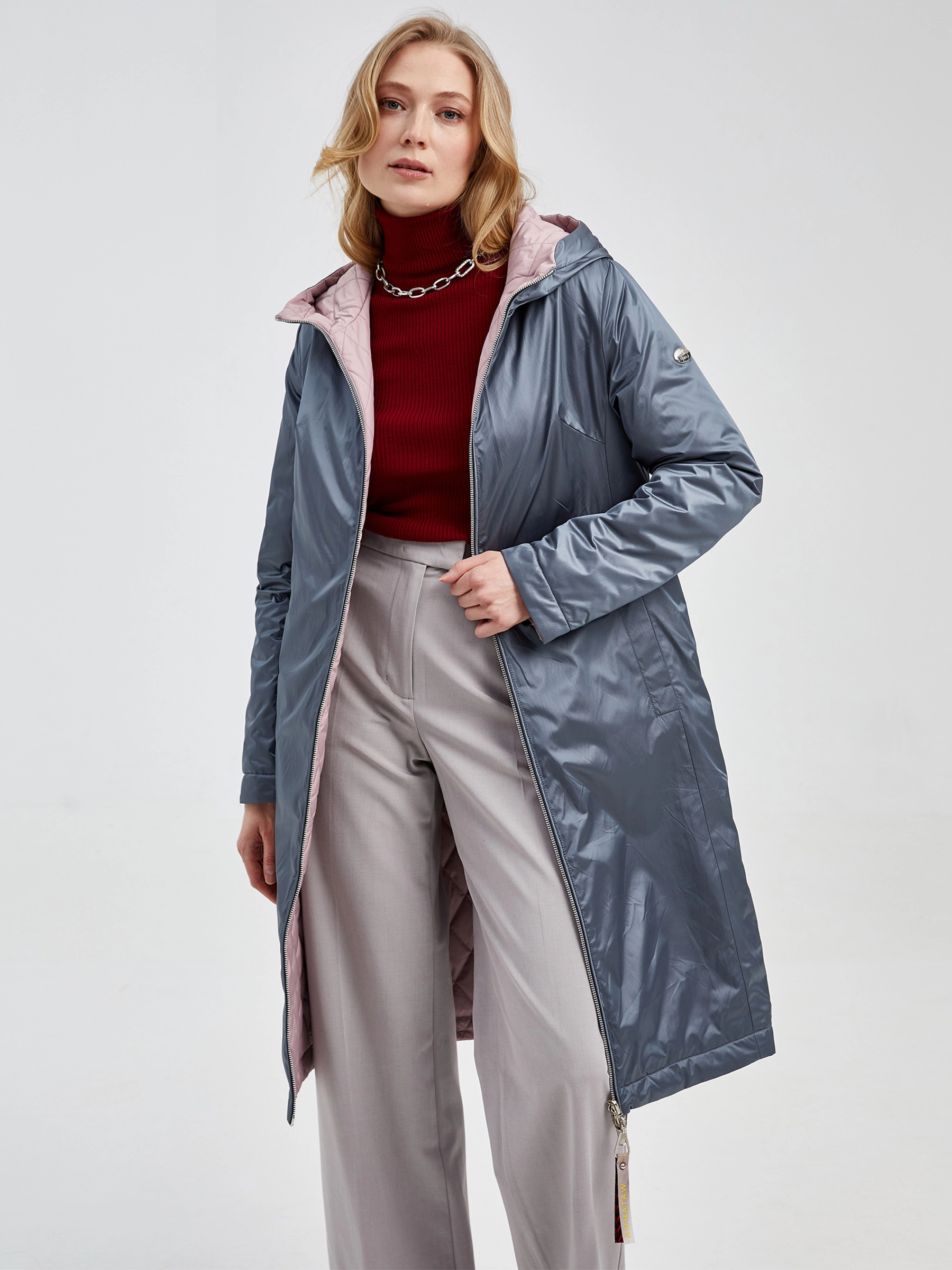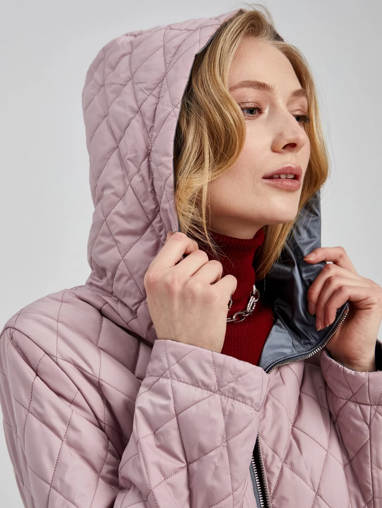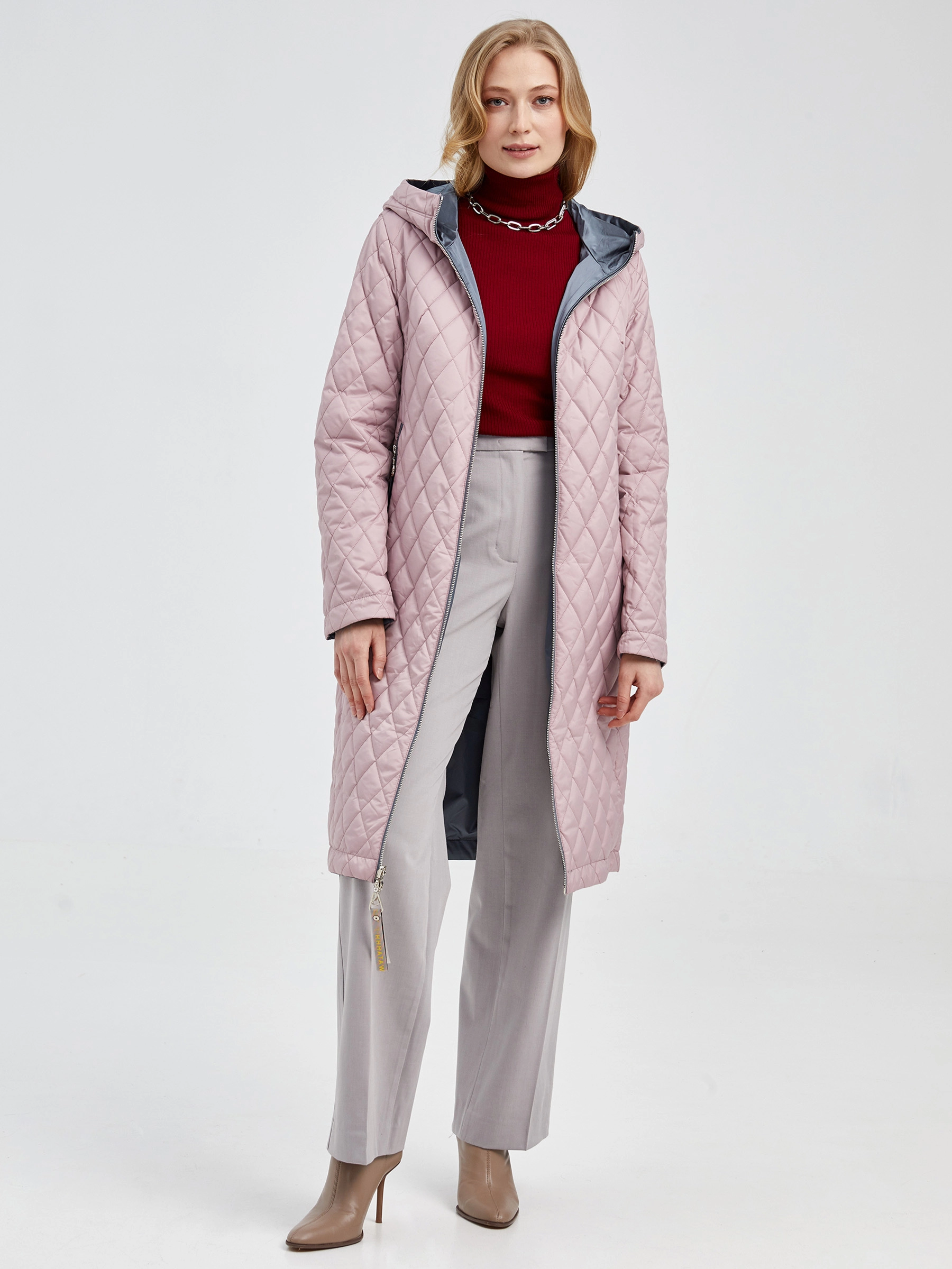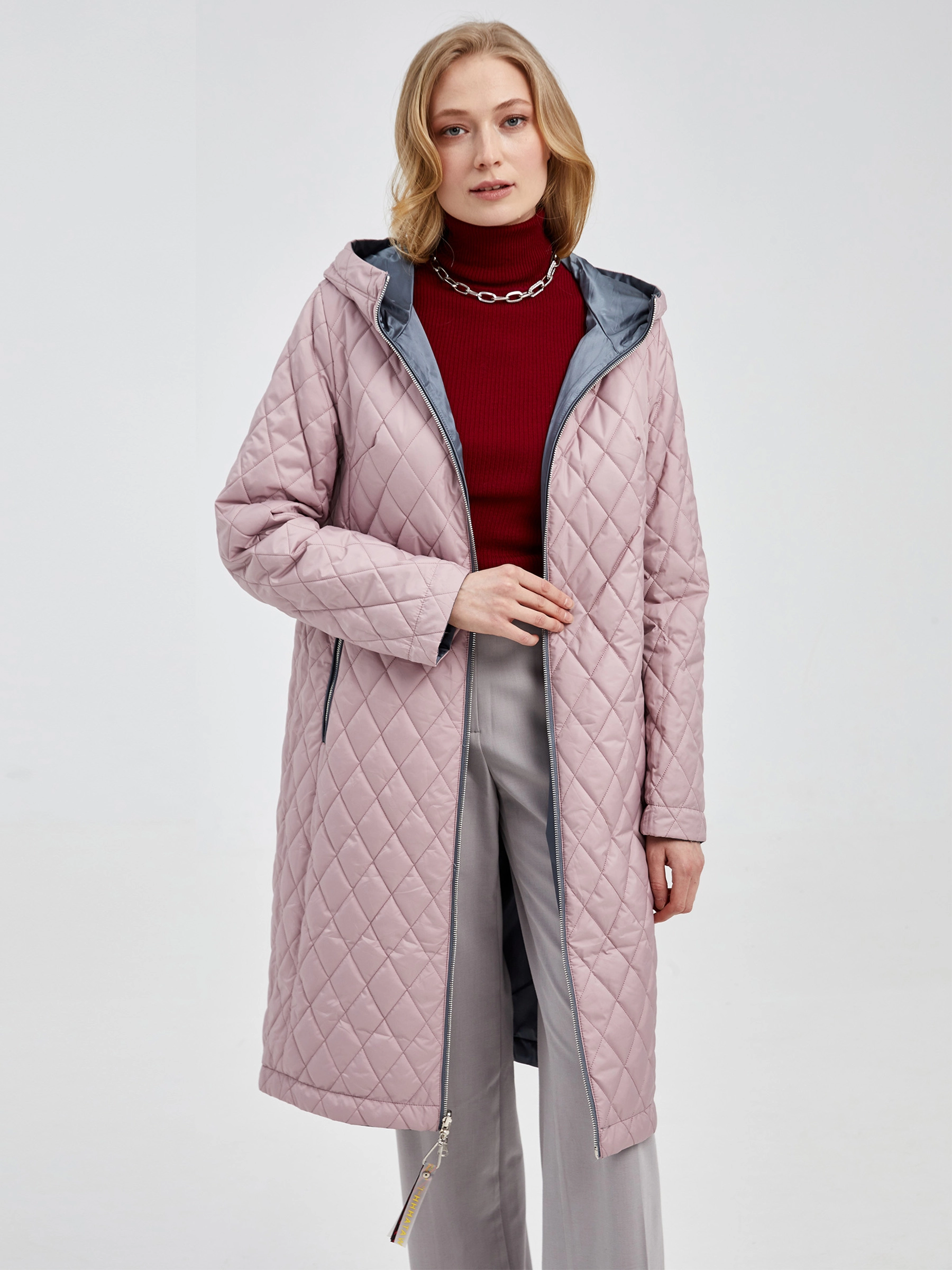 Товар женский текстильный двусторонний пуховик с капюшоном 21330, пудровый, размер 42, артикул 25170 выполнен из текстиль с застежкой молния. Рассчитан на сезон: демисезон. Длина изделия свыше 90 см, силуэт прямой.