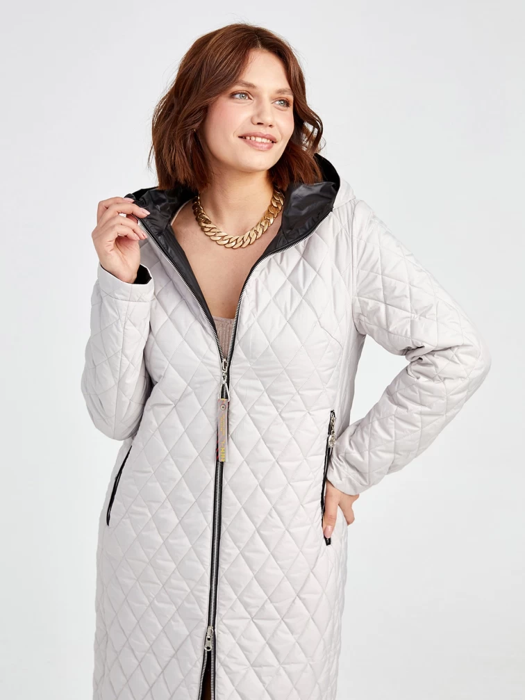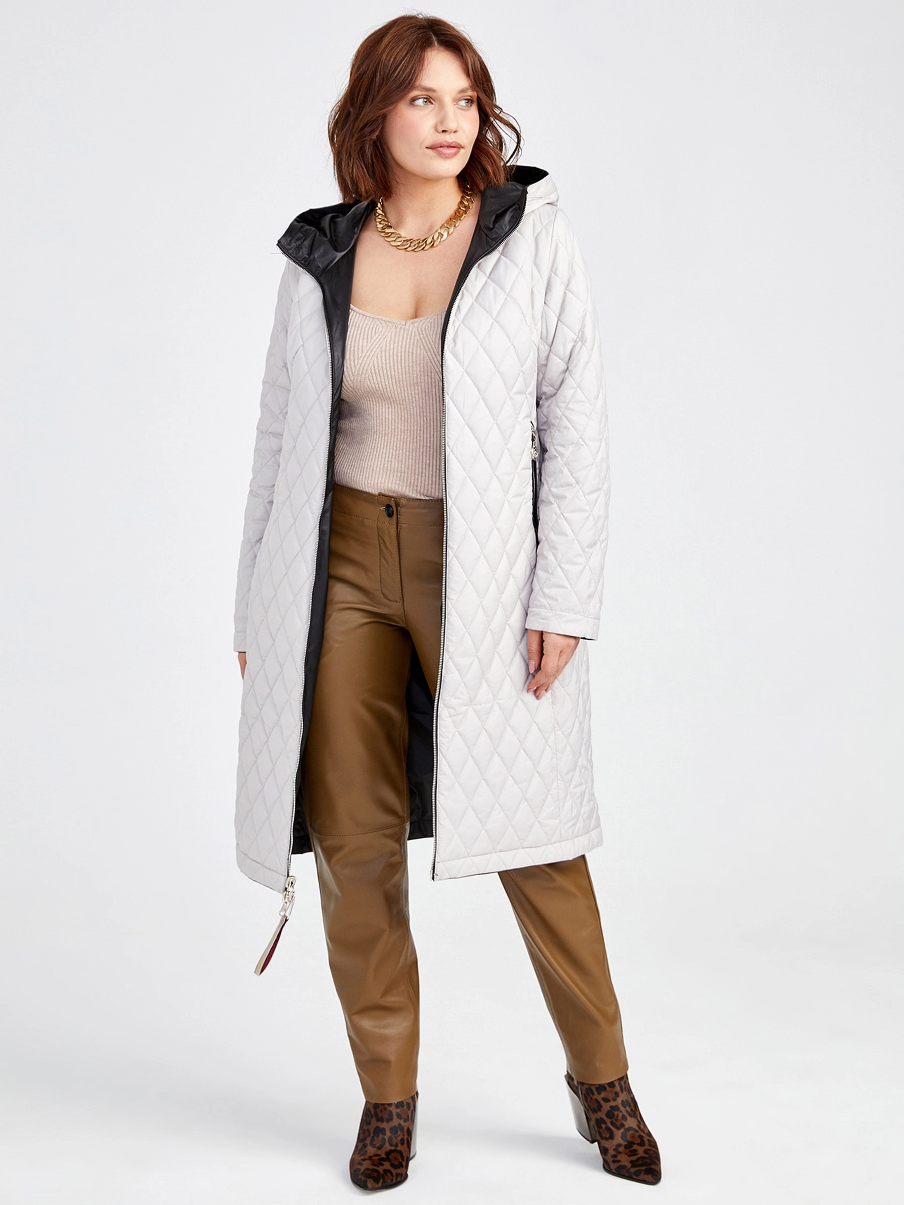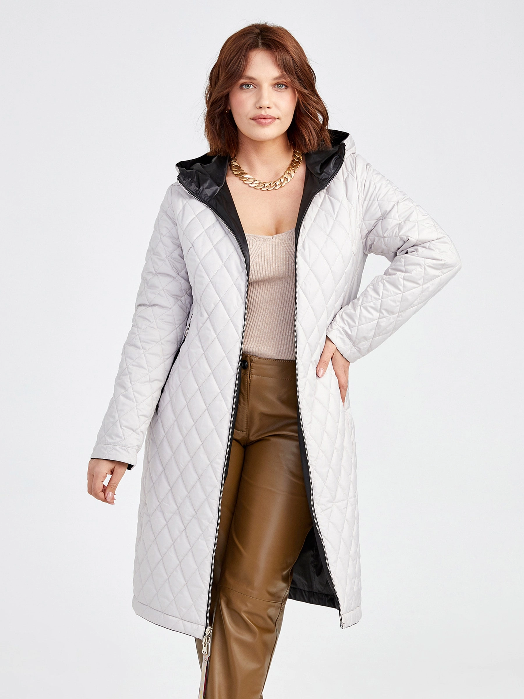 Товар женский текстильный двусторонний пуховик с капюшоном 21330, черный, размер 42, артикул 25160 выполнен из текстиль с застежкой молния. Рассчитан на сезон: демисезон. Длина изделия свыше 90 см, силуэт прямой.