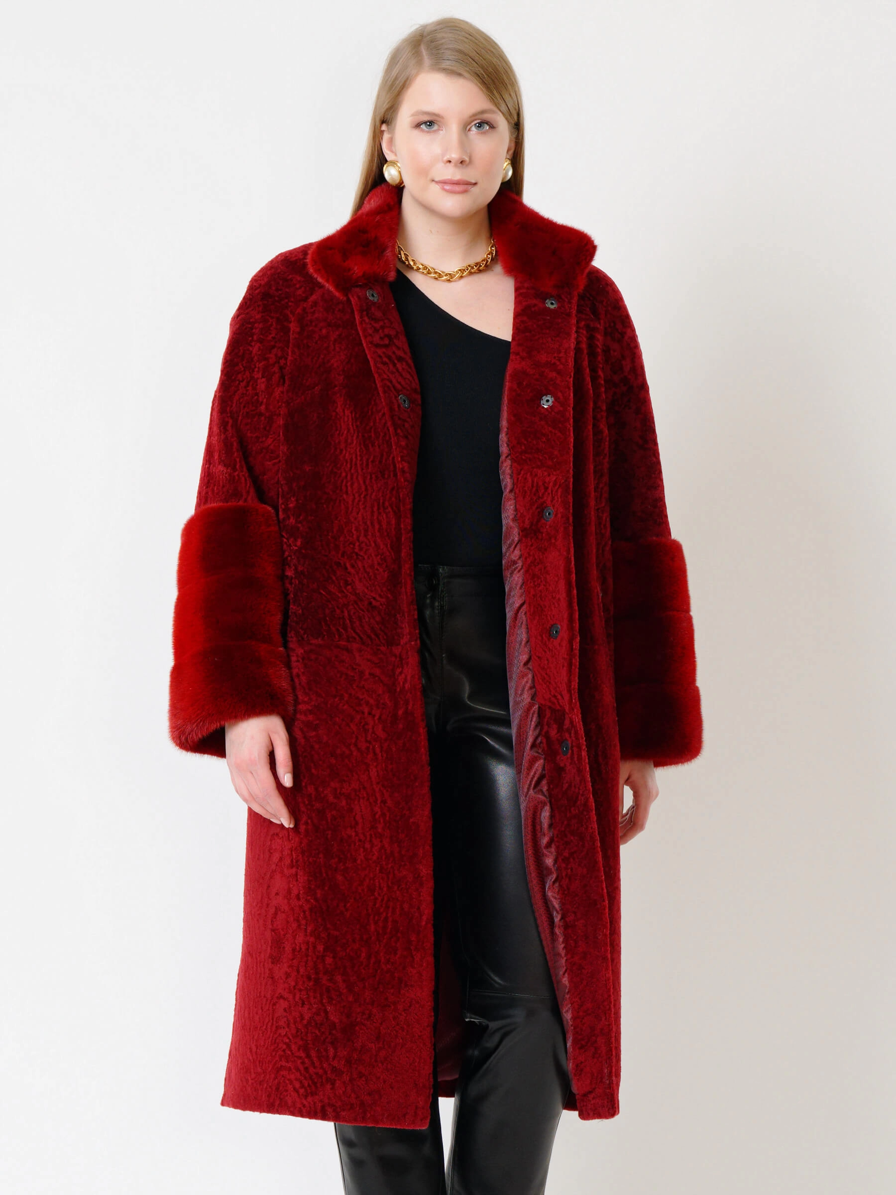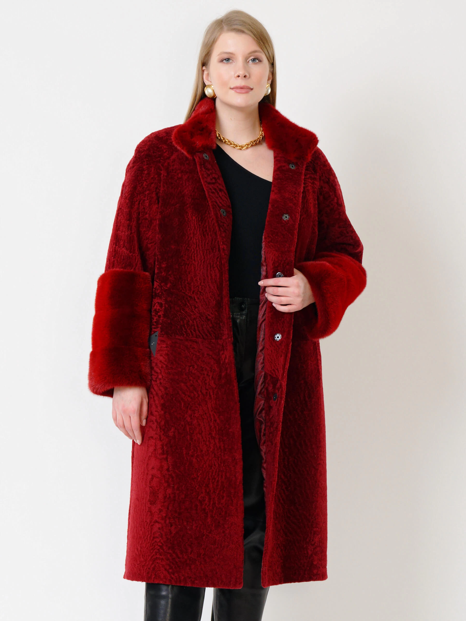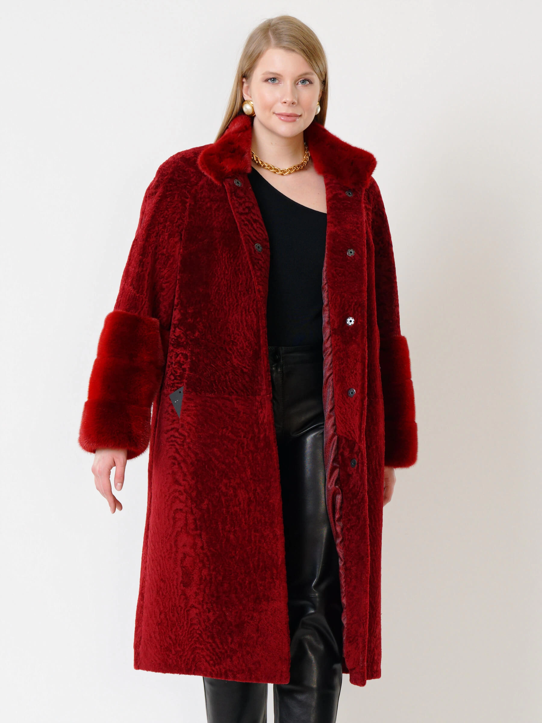 Дубленка из астрагана с отделкой мехом норки для женщин 52мех, бордовая, размер 48, артикул 17540