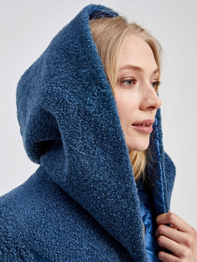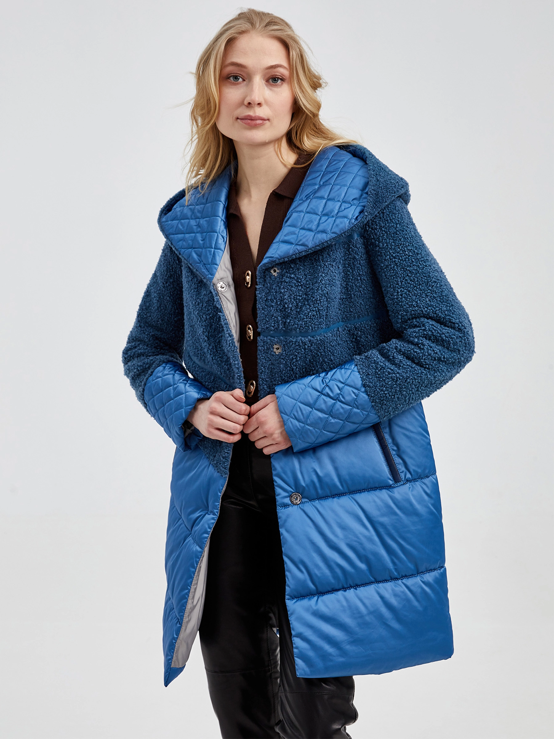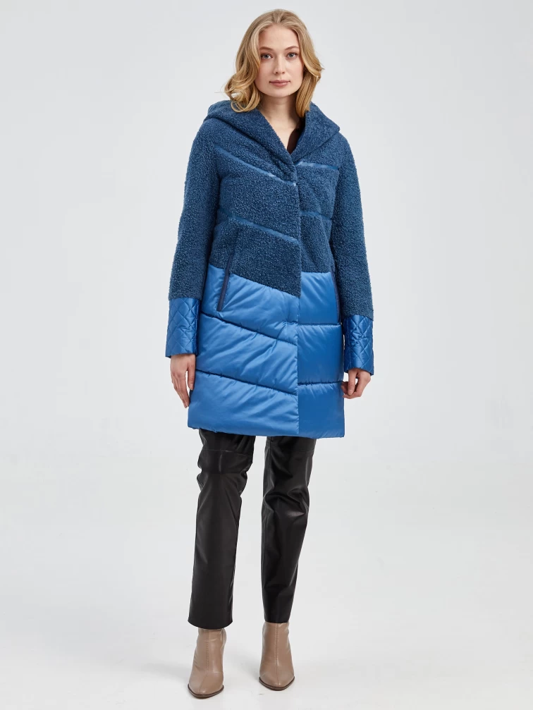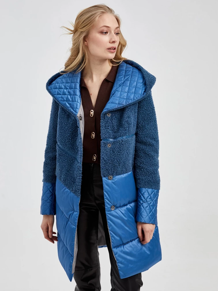Товар текстильный женский пуховик с капюшоном и астраганом 807, голубой, размер 46, артикул 13420 выполнен из астраган с застежкой кнопки. Рассчитан на сезон: осень-зима. Длина изделия 75-90 см, силуэт полуприлегающий.