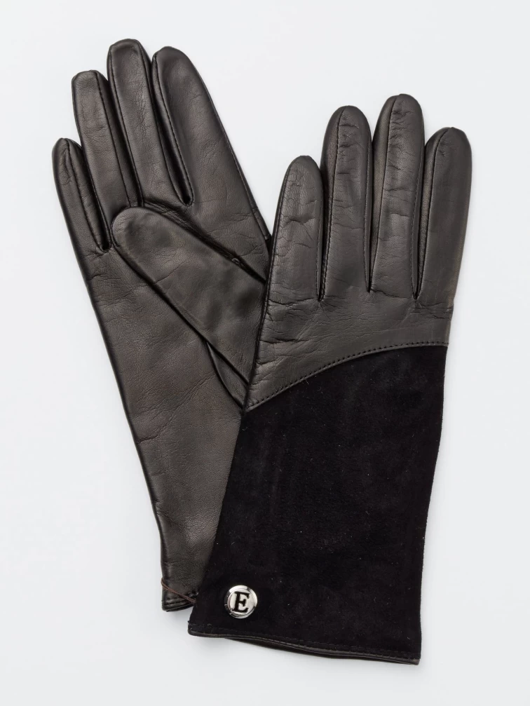 Классические перчатки женские торговой марки ELEGANZZA из натуральной кожи ягненка. Отделка - фирменная фурнитура и вставка из натурального велюра. Длина манжеты от нижней точки большого пальца до края перчаток составляет - 6.5 см.