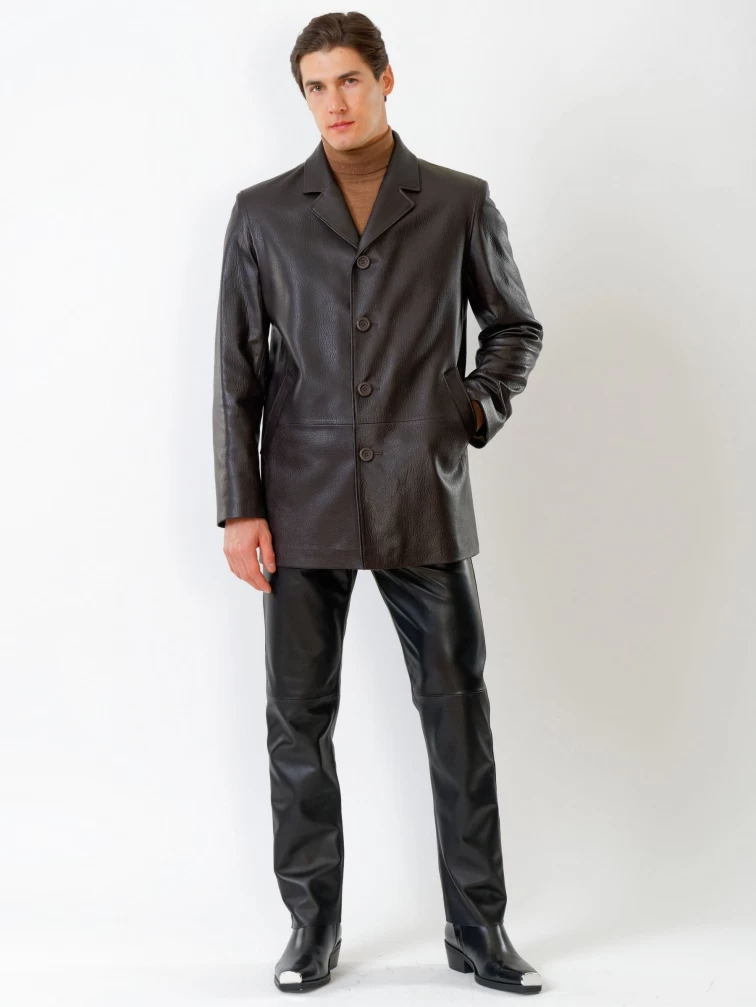 Кожаный костюм мужской: Пиджак 21/1 + Брюки 01, коричневый/черный, р. 48, артикул 140010