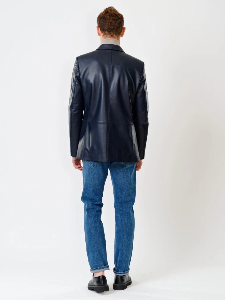 Товар мужской кожаный пиджак на ручном стежке премиум класса 543, синий, размер 50, артикул 28441 выполнен из натуральной кожи с застежкой пуговицы. Рассчитан на сезон: весна-лето. Длина изделия 78 см, силуэт полуприлегающий.