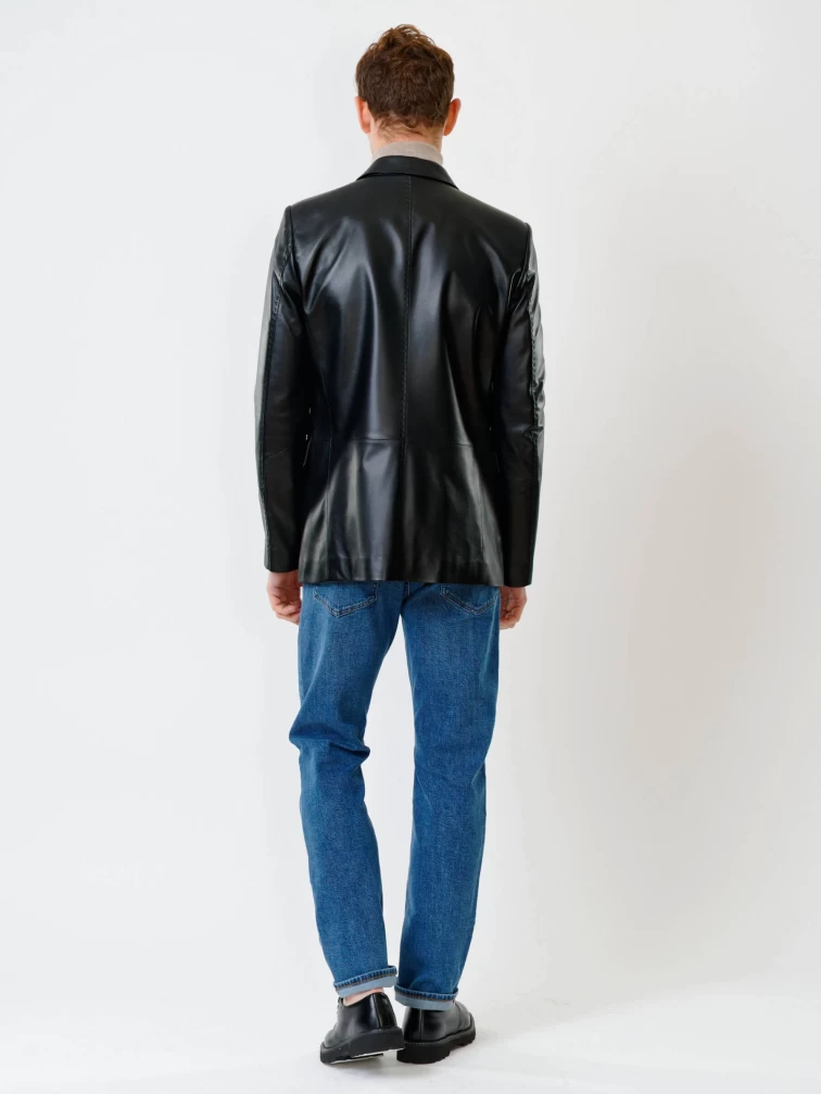 Товар мужской кожаный пиджак на ручном стежке премиум класса 543, черный, размер 48, артикул 28451 выполнен из натуральной кожи с застежкой пуговицы. Рассчитан на сезон: весна-лето. Длина изделия 78 см, силуэт полуприлегающий.