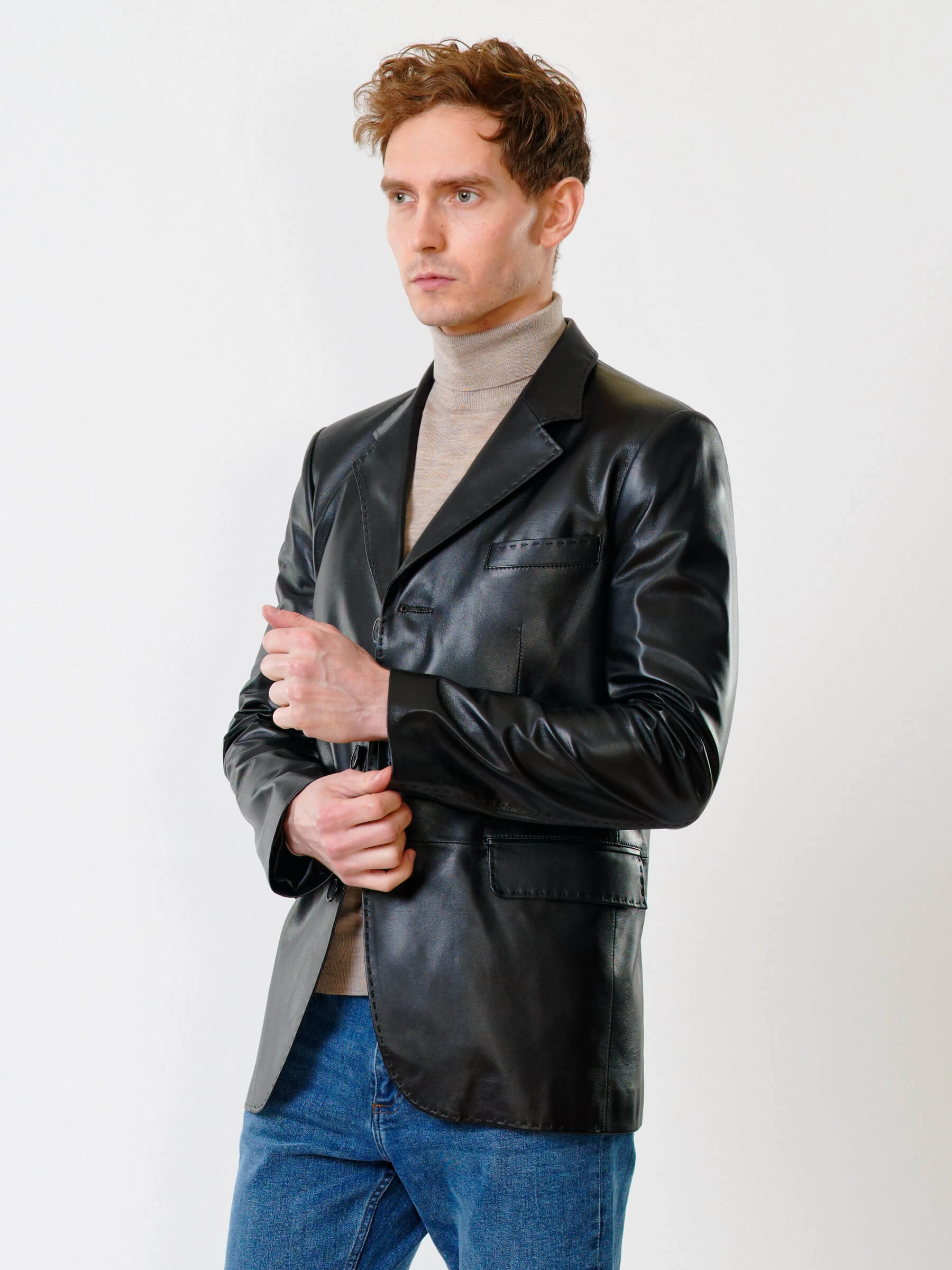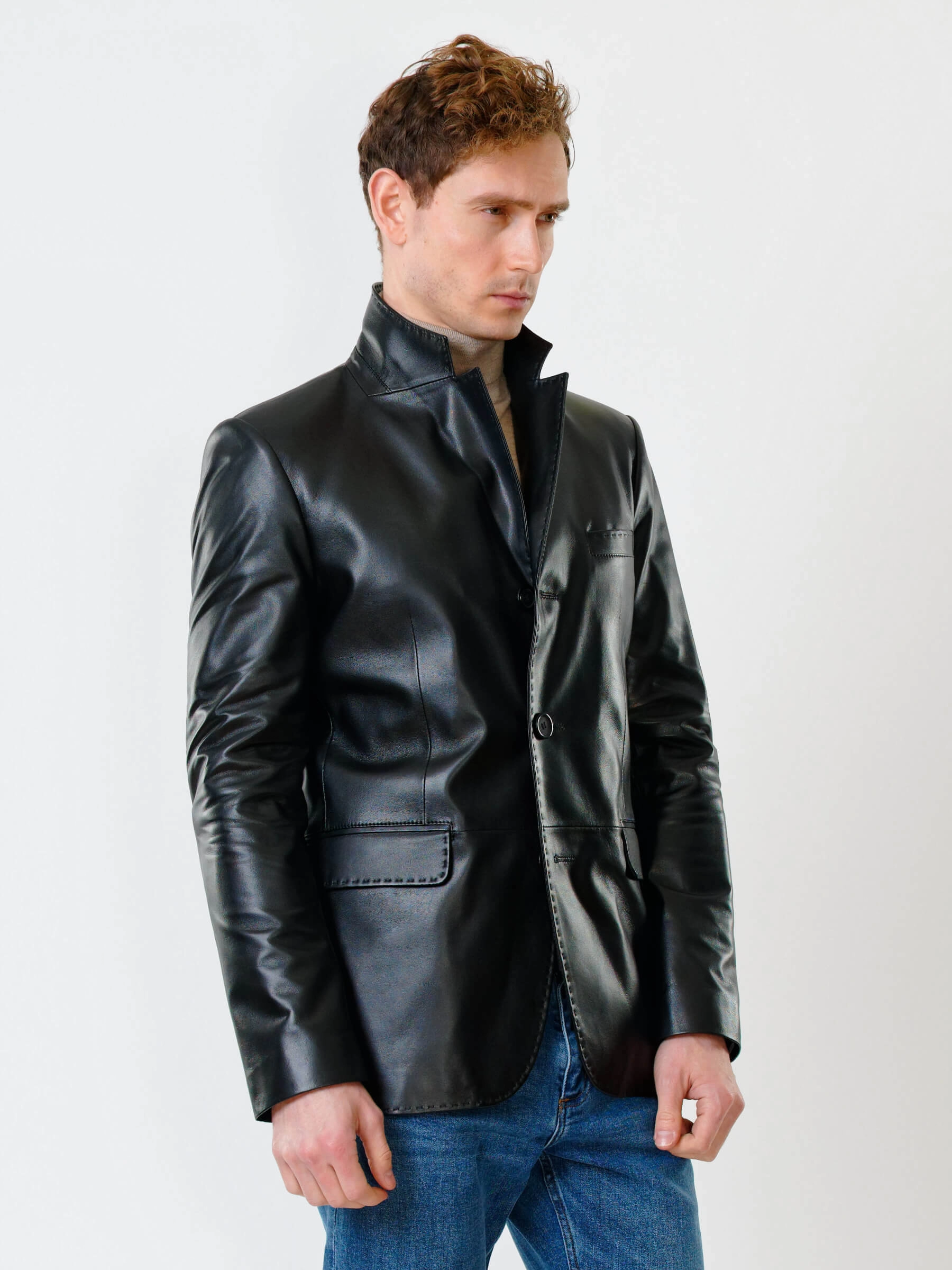 Мужской кожаный пиджак на ручном стежке премиум класса 543, черный, размер 48, артикул 28451