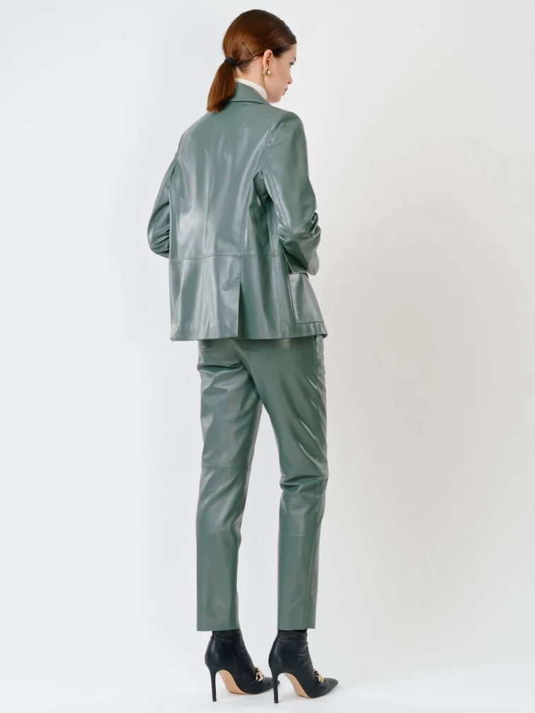 Женский кожаный пиджак 3007, оливковый, размер 48, артикул 90711