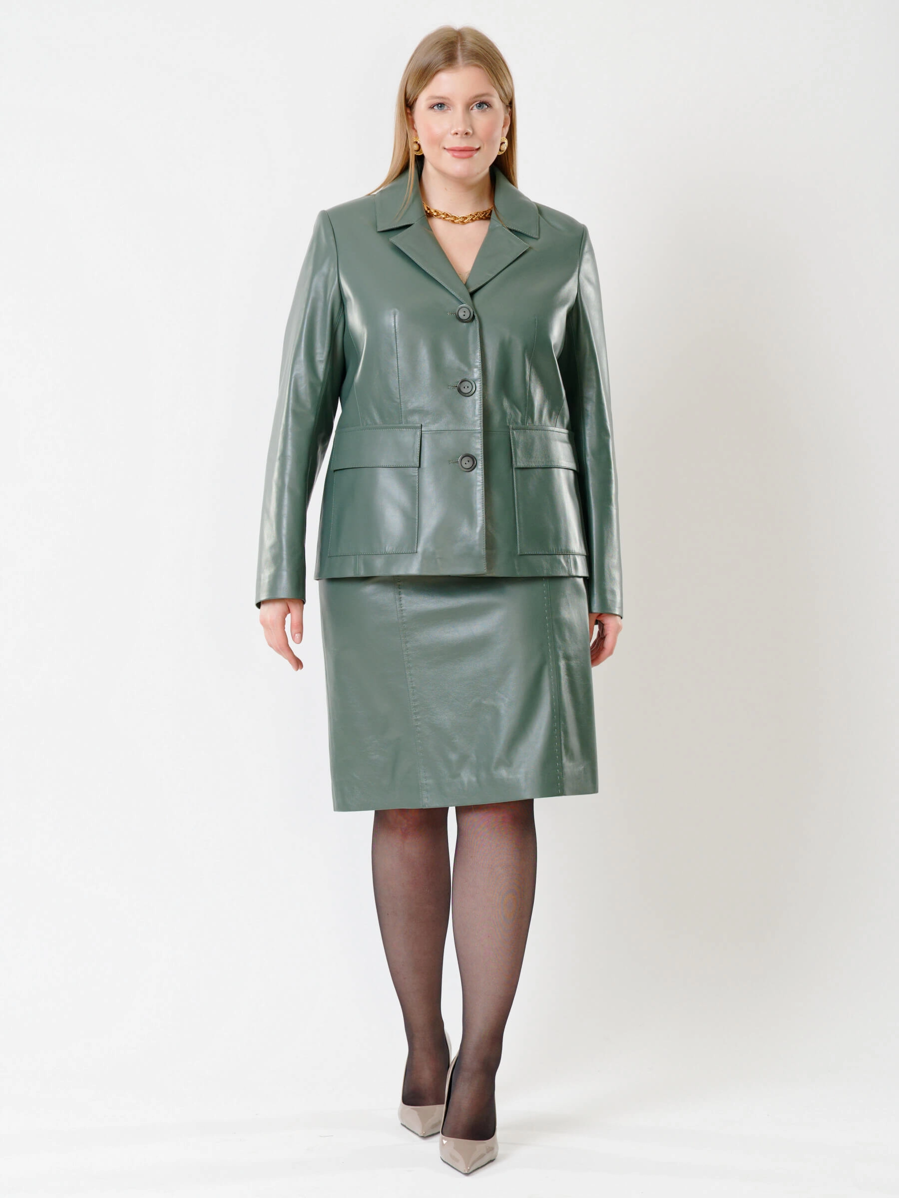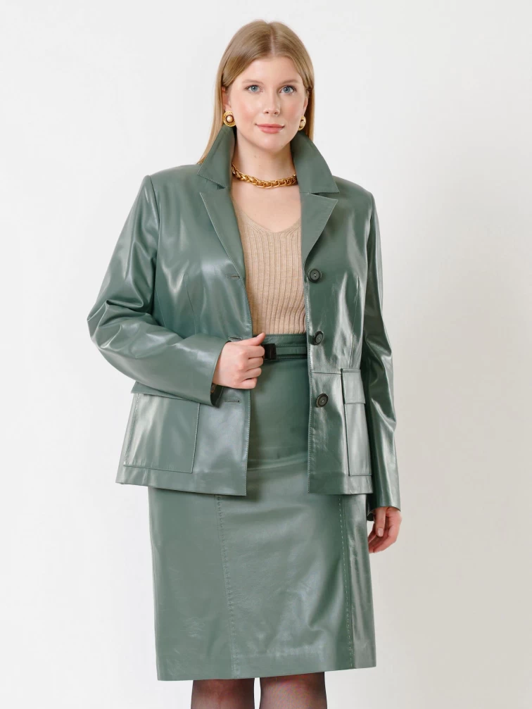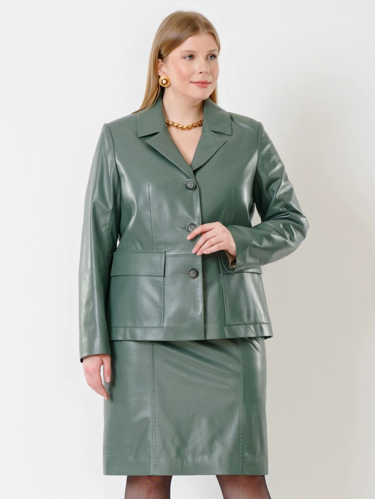Женский кожаный пиджак 3007, оливковый, размер 48, артикул 91172