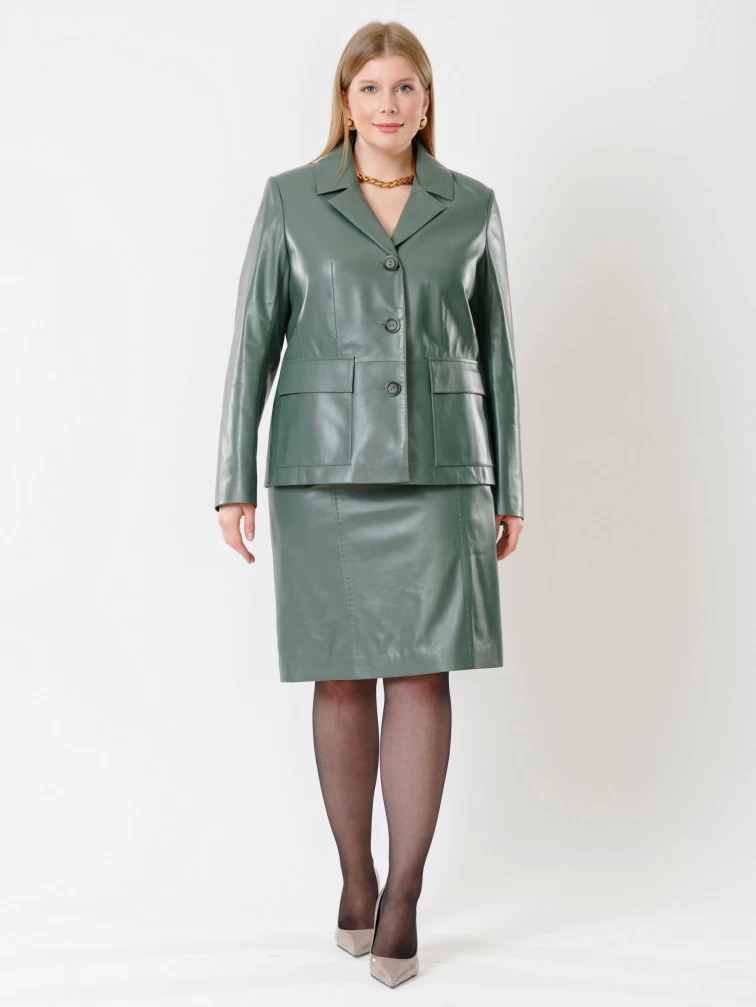 Товар женский кожаный пиджак 3007, оливковый, размер 48, артикул 91172 выполнен из натуральной кожи с застежкой пуговицы. Рассчитан на сезон: весна-лето. Длина изделия 63 см, силуэт полуприлегающий.