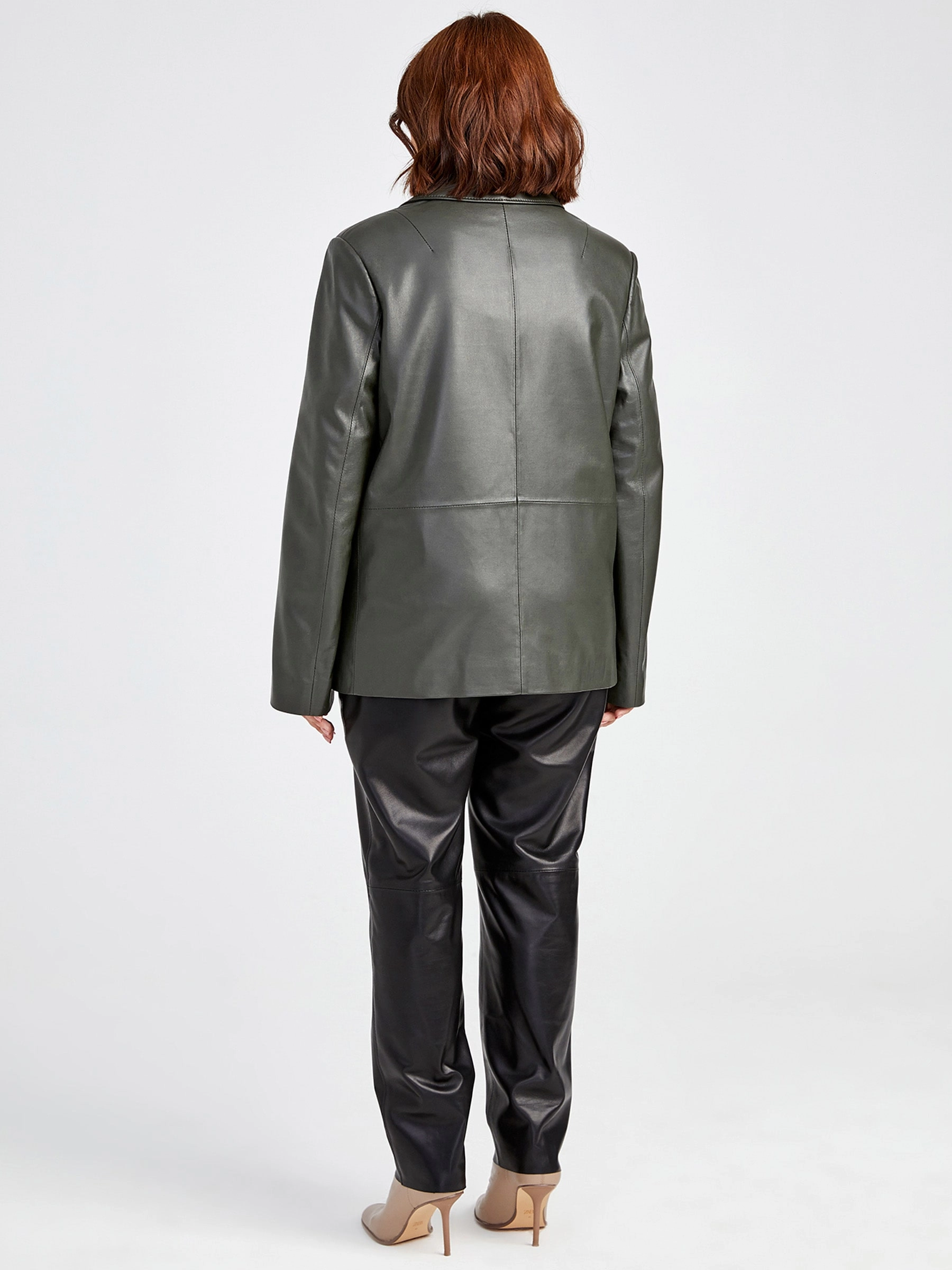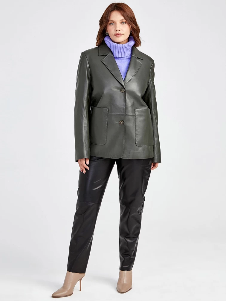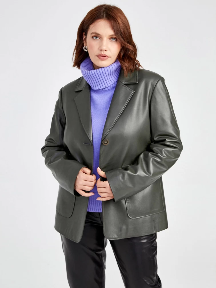 Кожаный женский пиджак премиум класса 3016, оливковый, размер 46, артикул 91581