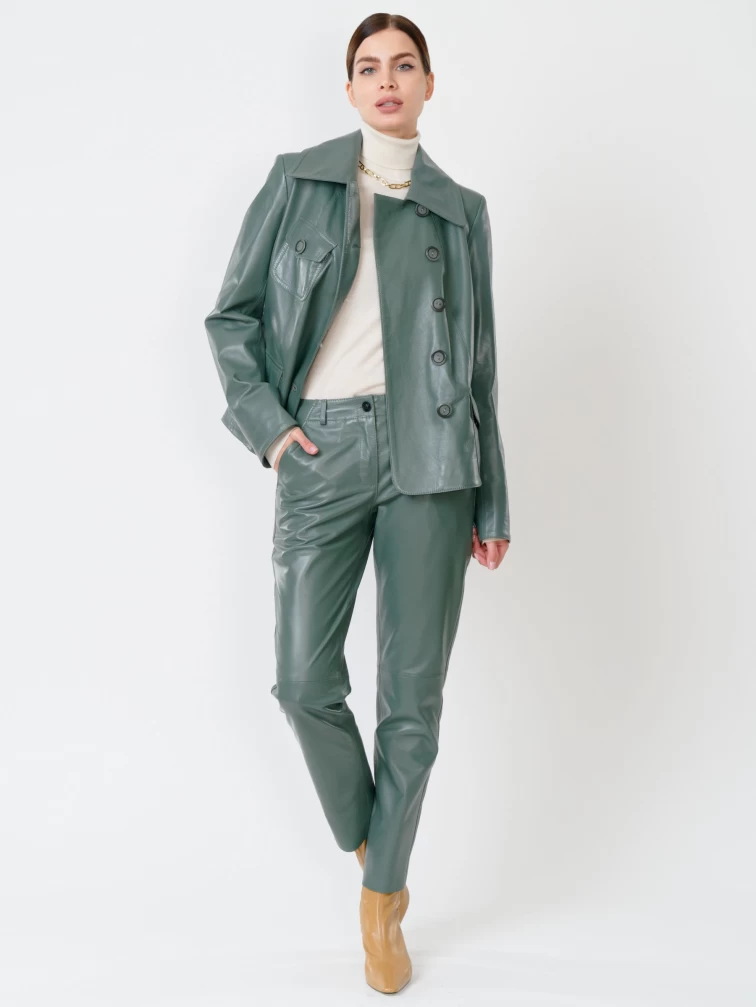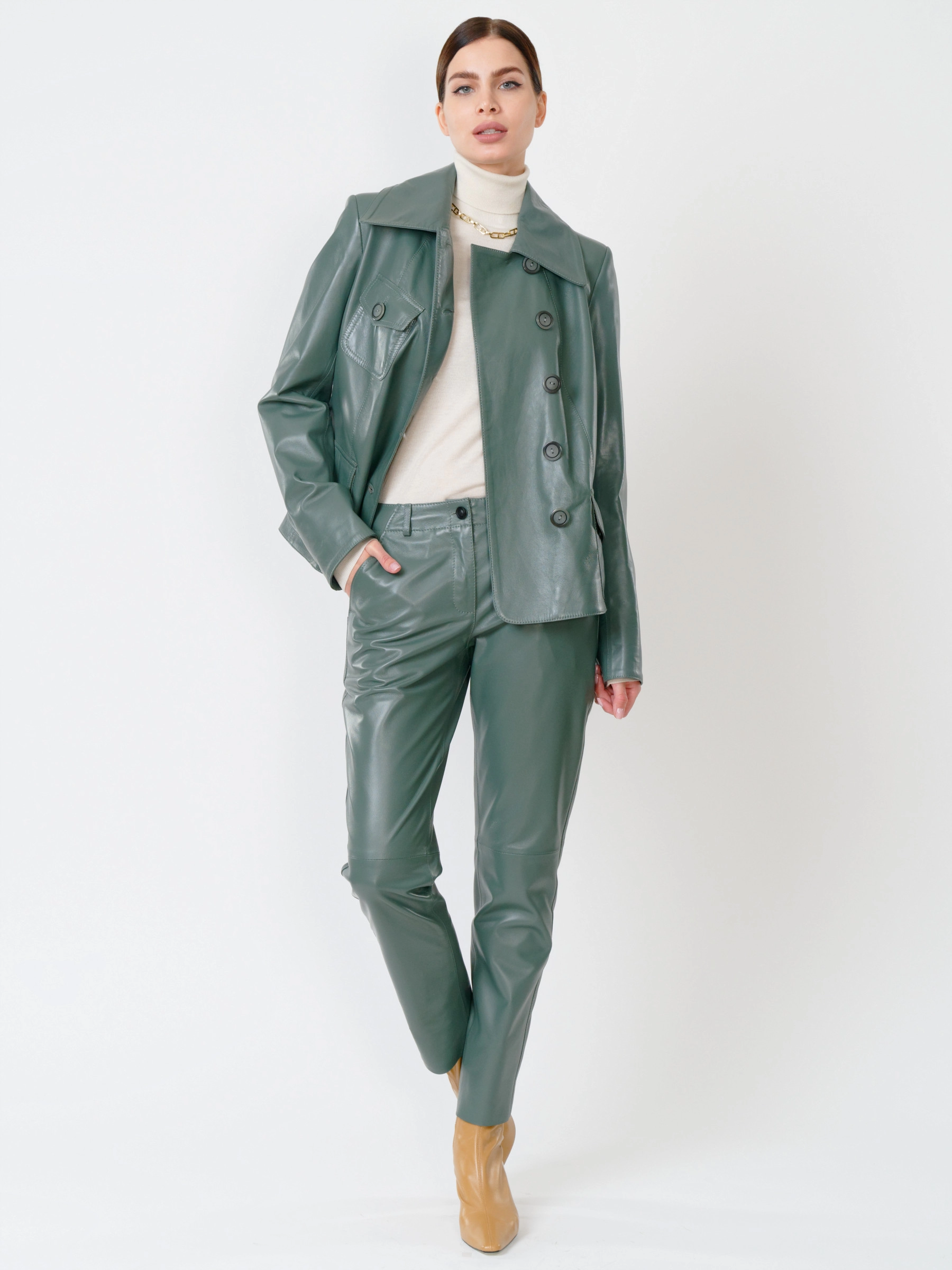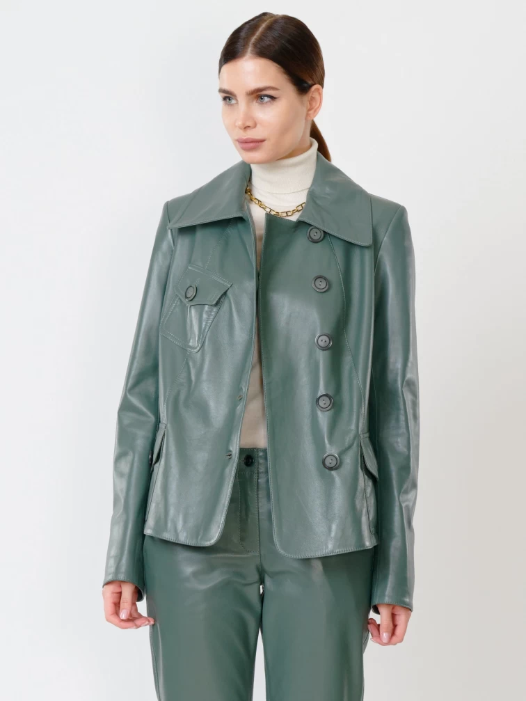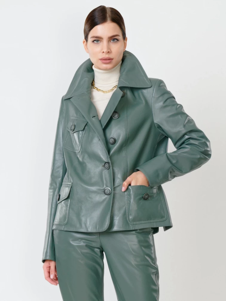 Кожаная куртка пиджак женская 302, оливковый, размер 46, артикул 90800
