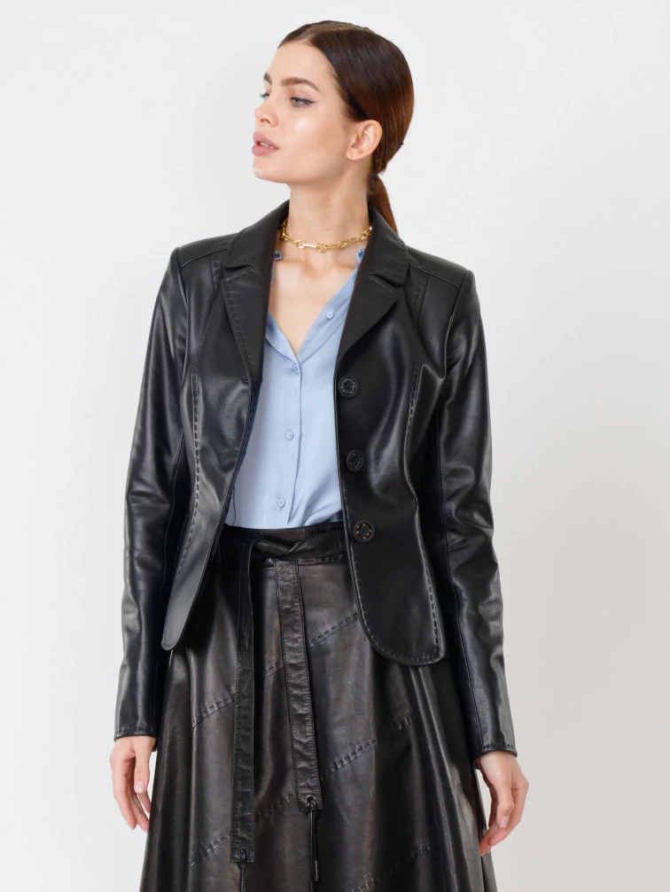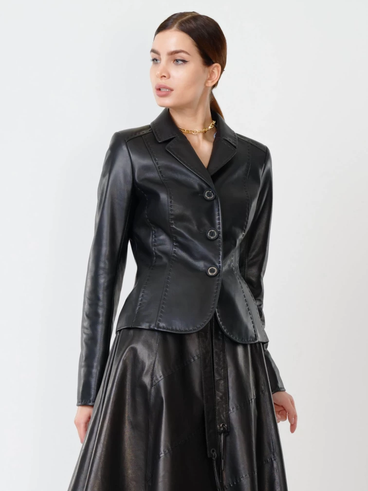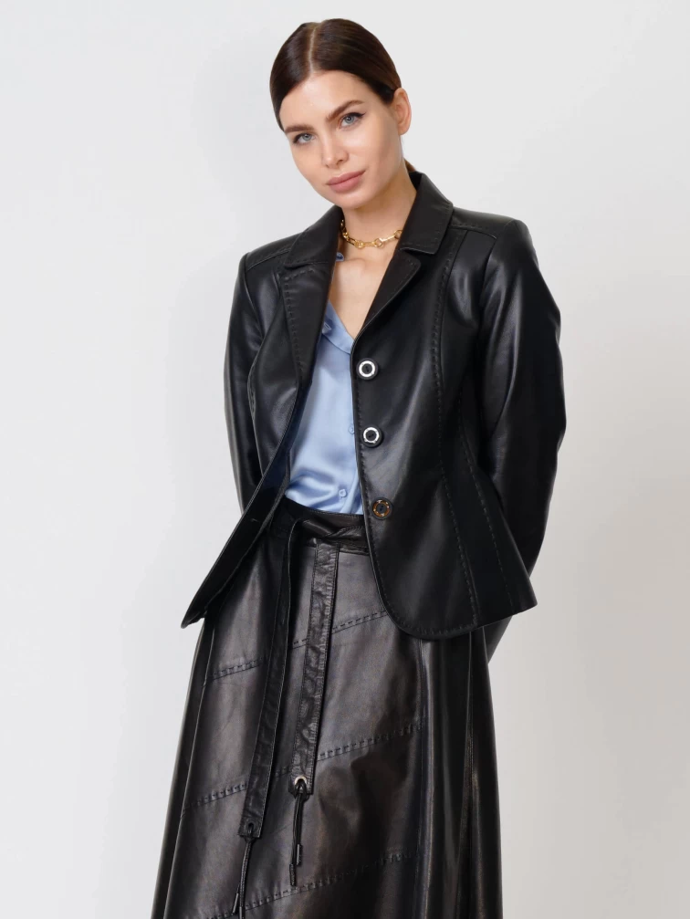 Кожаный женский пиджак 316рс, черный, размер 58, артикул 91062