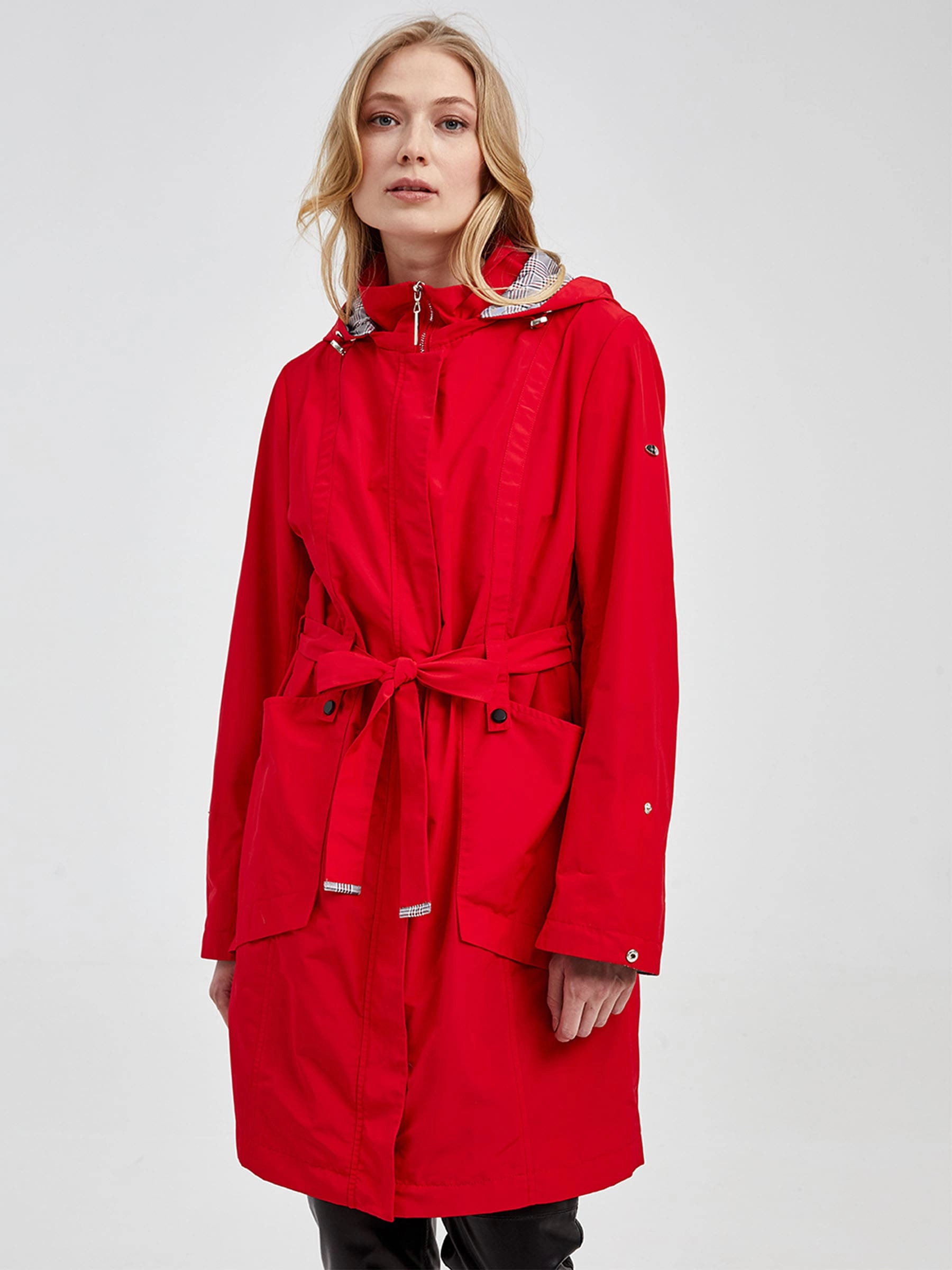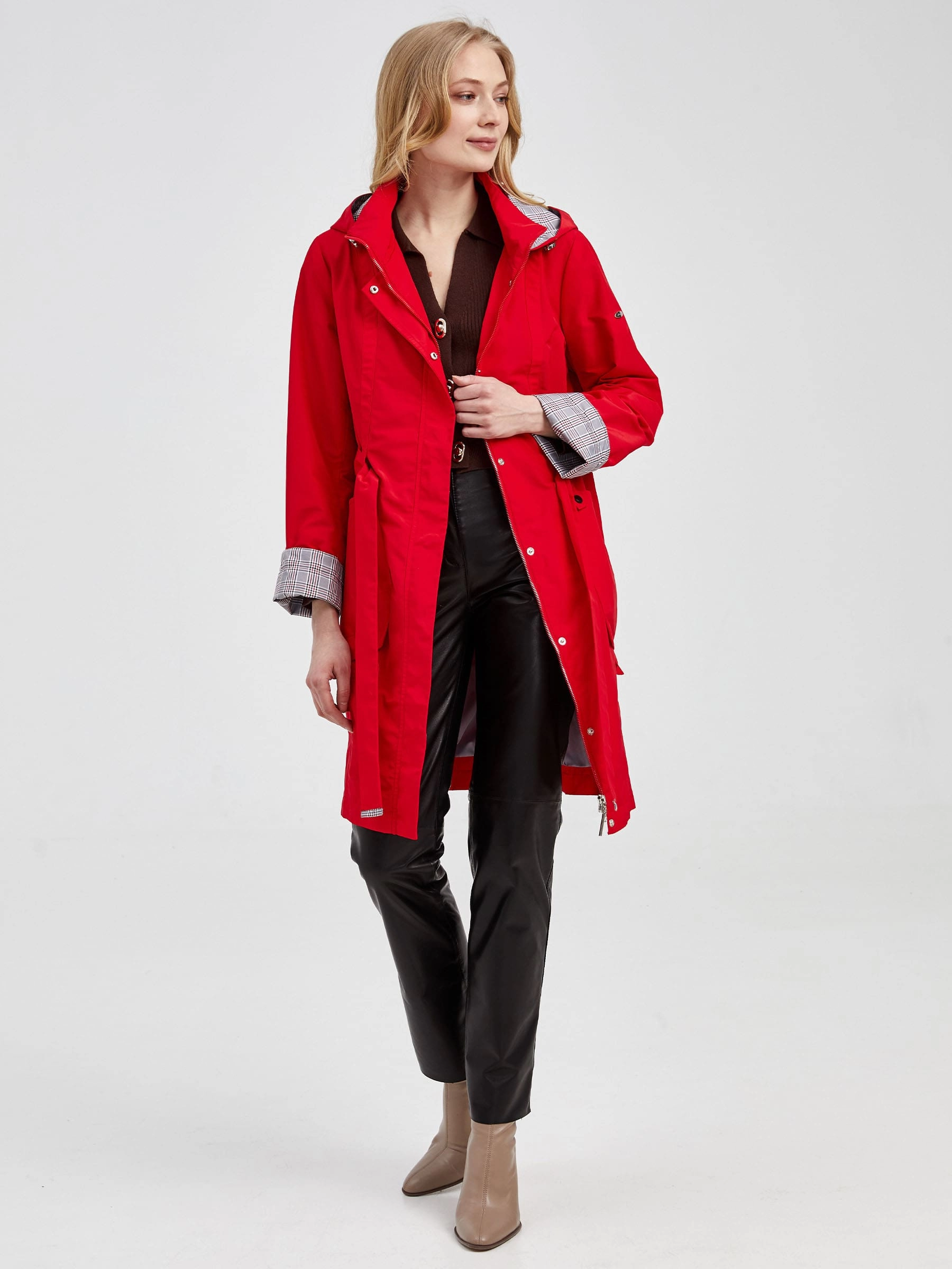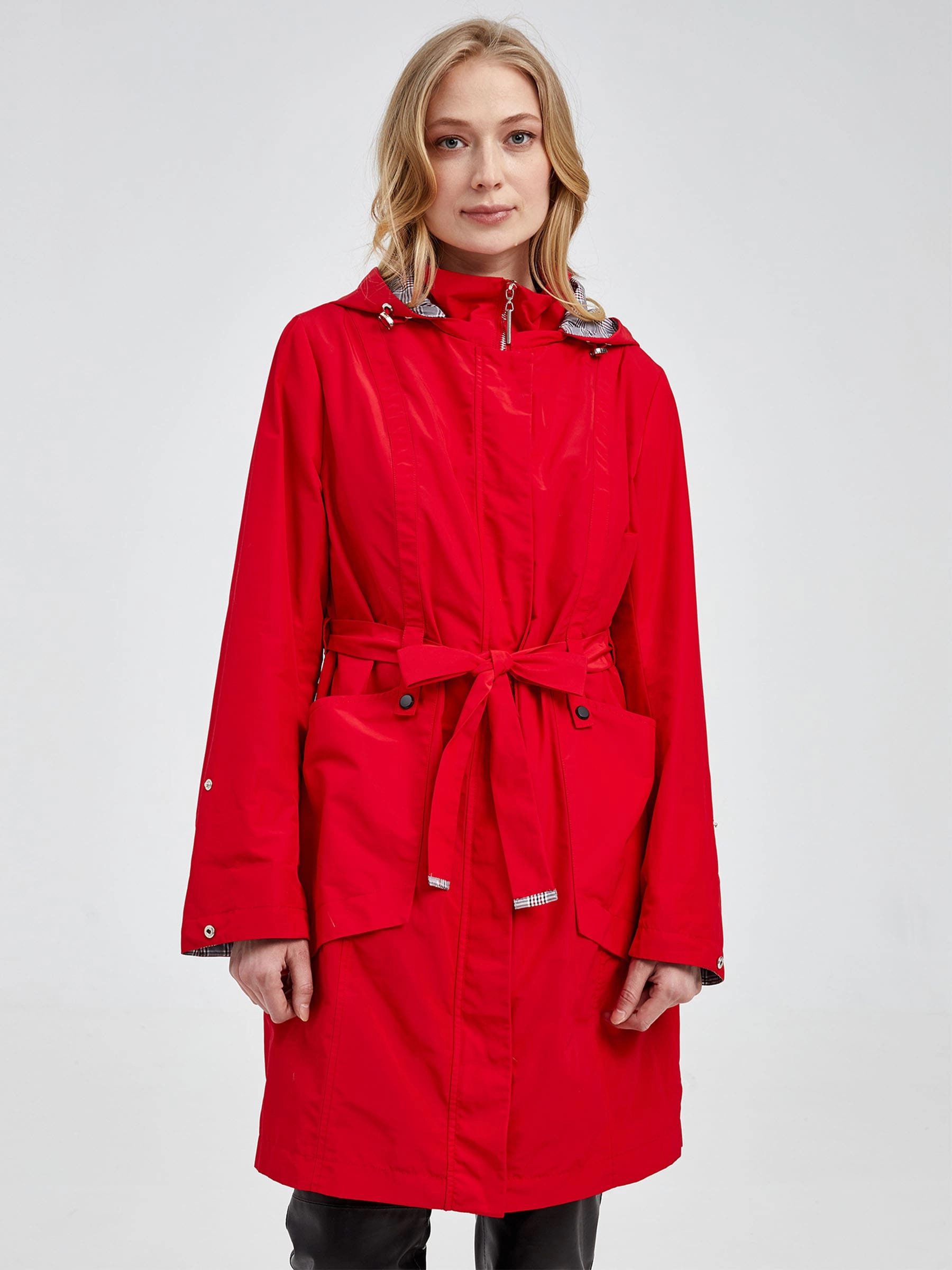 Товар текстильный плащ женский 20035, красный, размер 44, артикул 25110 выполнен из текстиль с застежкой молния. Рассчитан на сезон: демисезон. Длина изделия 90 см, силуэт приталенный .