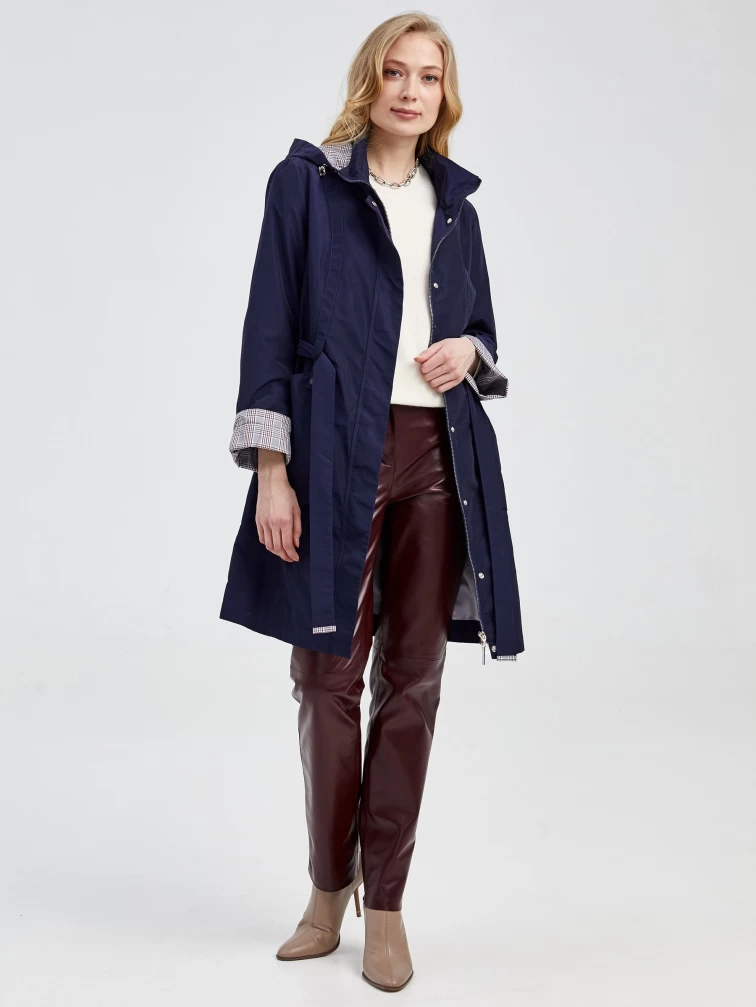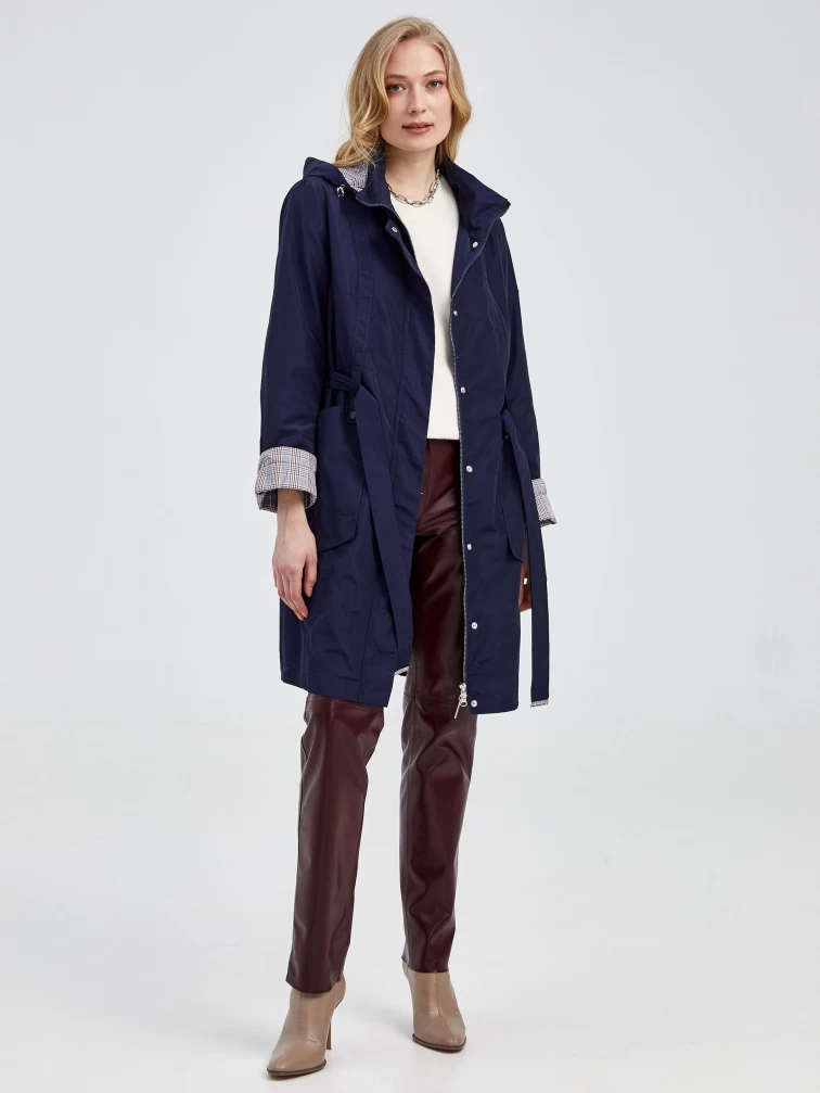 Товар текстильный плащ женский 20035, синий, размер 44, артикул 25100 выполнен из текстиль с застежкой молния. Рассчитан на сезон: демисезон. Длина изделия 90 см, силуэт приталенный .