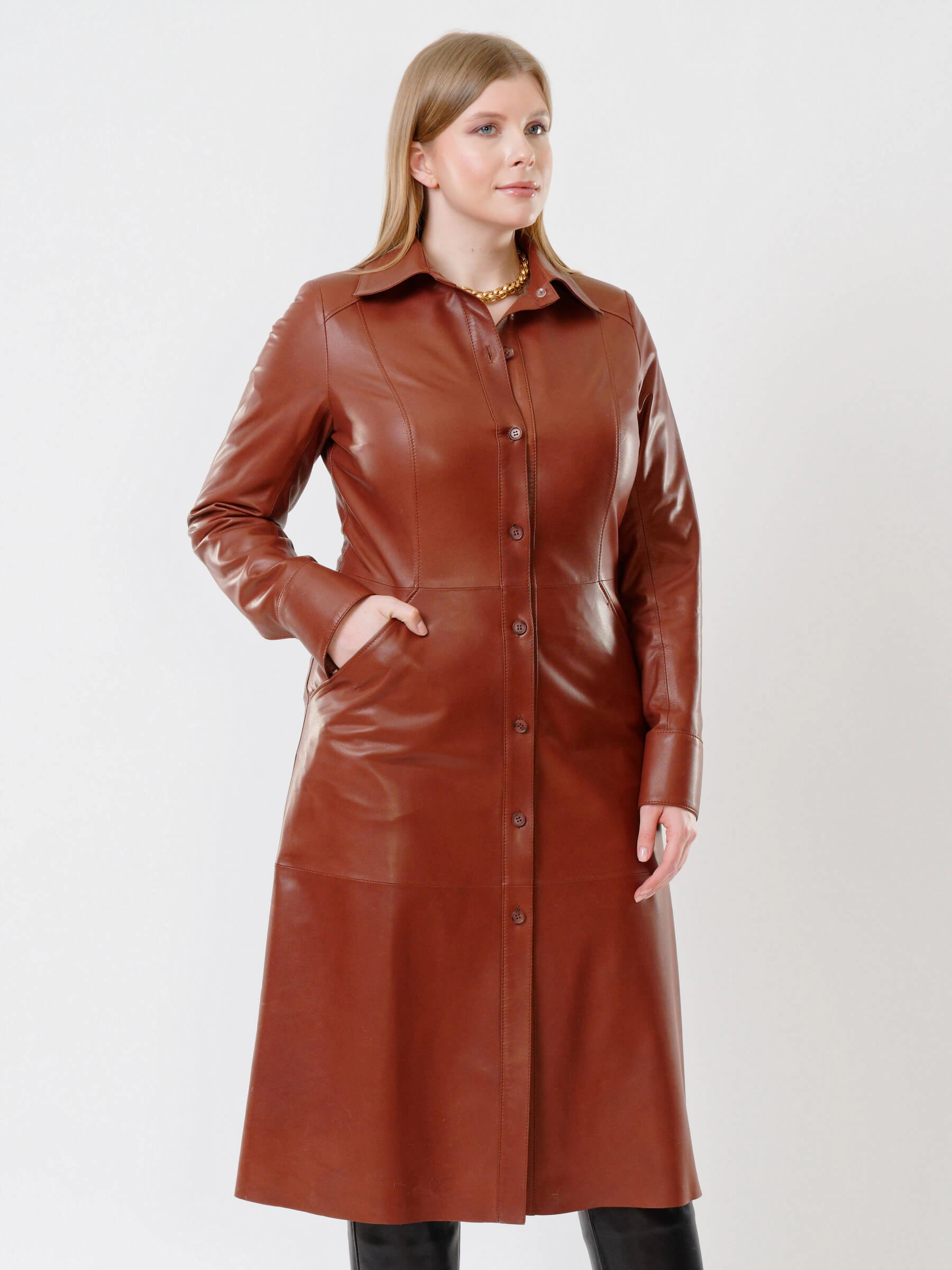 Женское кожаное платье рубашка из натуральной кожи 02, коричневое, размер 50, артикул 91460