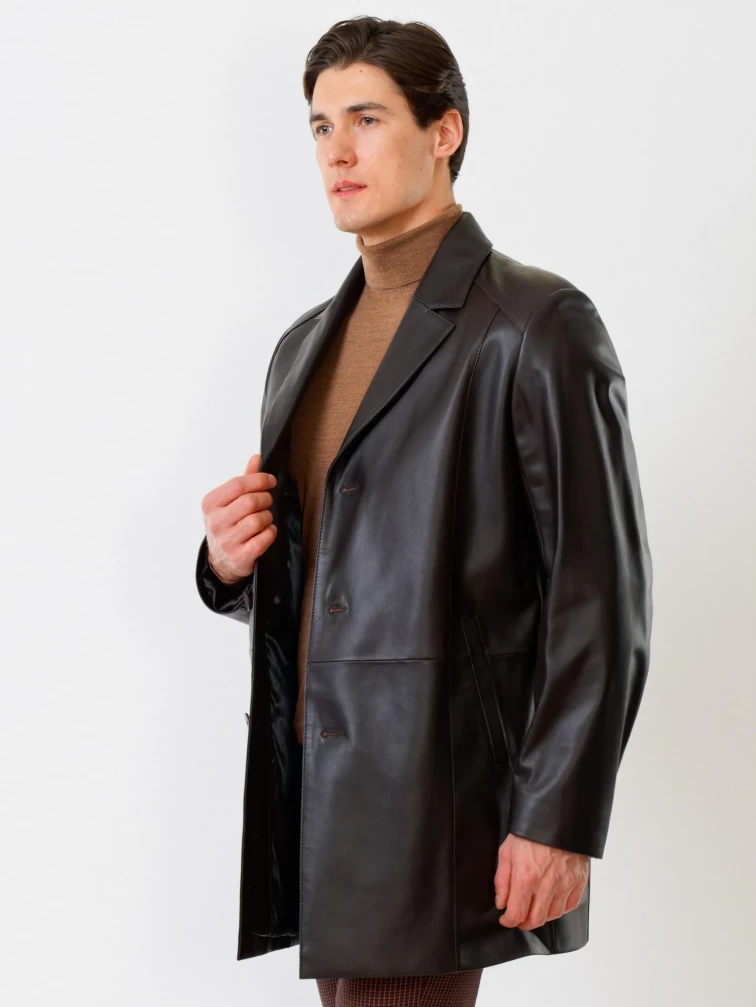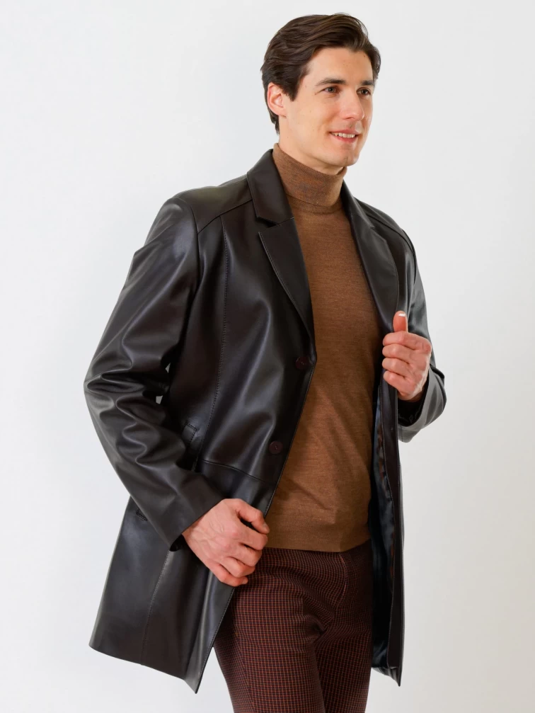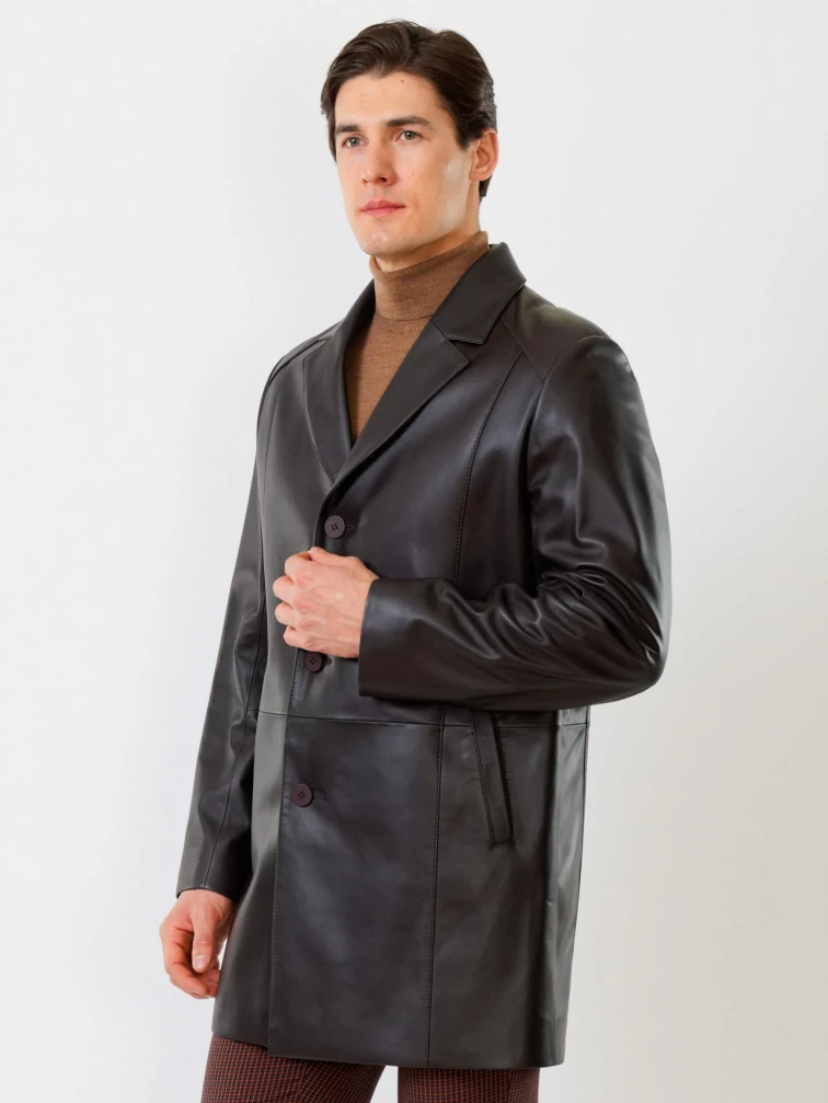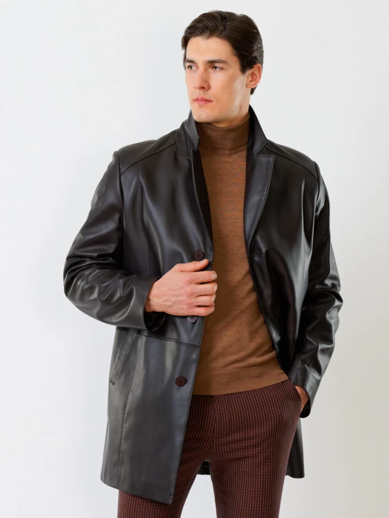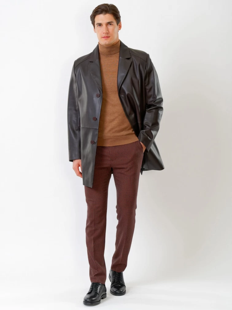 Кожаный мужской френч премиум класса 541, коричневый, размер 48, артикул 28810