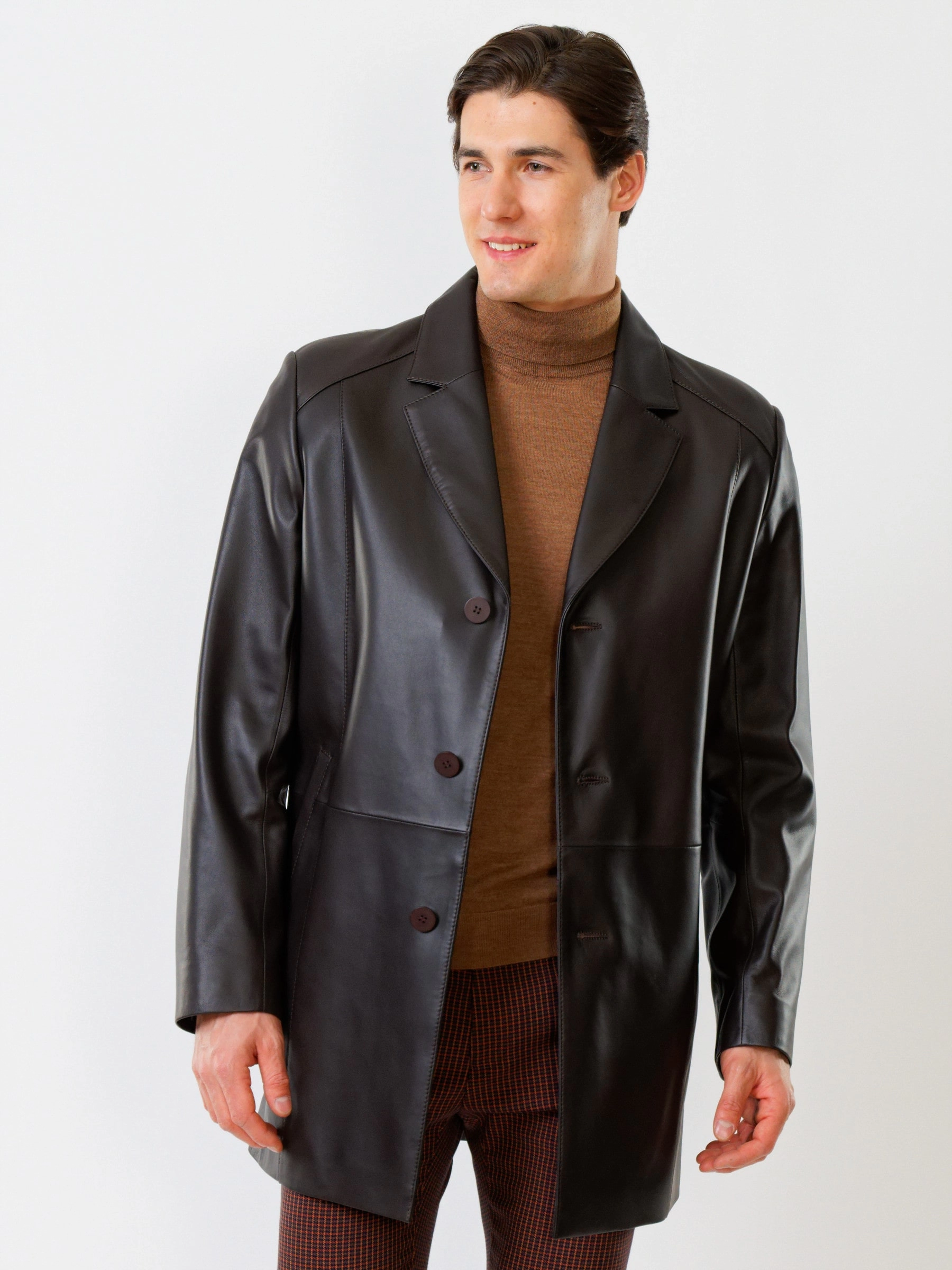 Товар кожаный мужской френч премиум класса 541, коричневый, размер 48, артикул 28810 выполнен из натуральной кожи с застежкой пуговицы. Рассчитан на сезон: демисезон. Длина изделия 90 см, силуэт прямой.