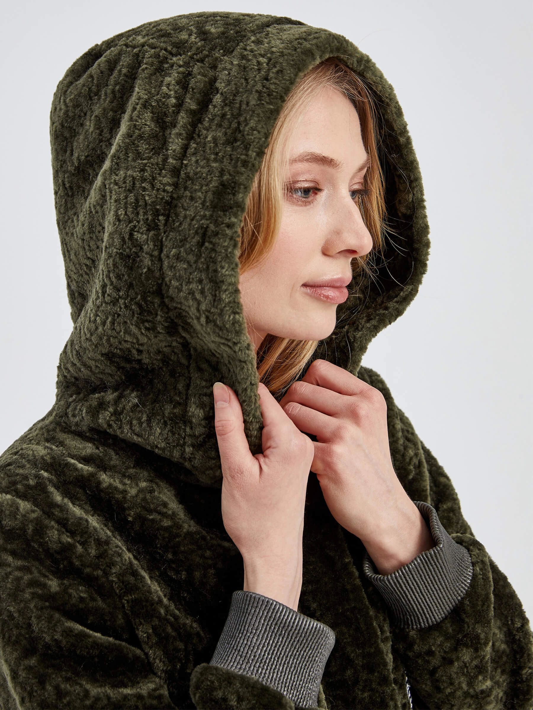 Товар женское полупальто из шерсти с капюшоном 841sf, зеленое, размер 44, артикул 25200 выполнен из шерсть с застежкой молния. Рассчитан на сезон: демисезон. Длина изделия свыше 90 см, силуэт прямой.
