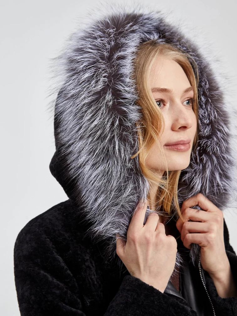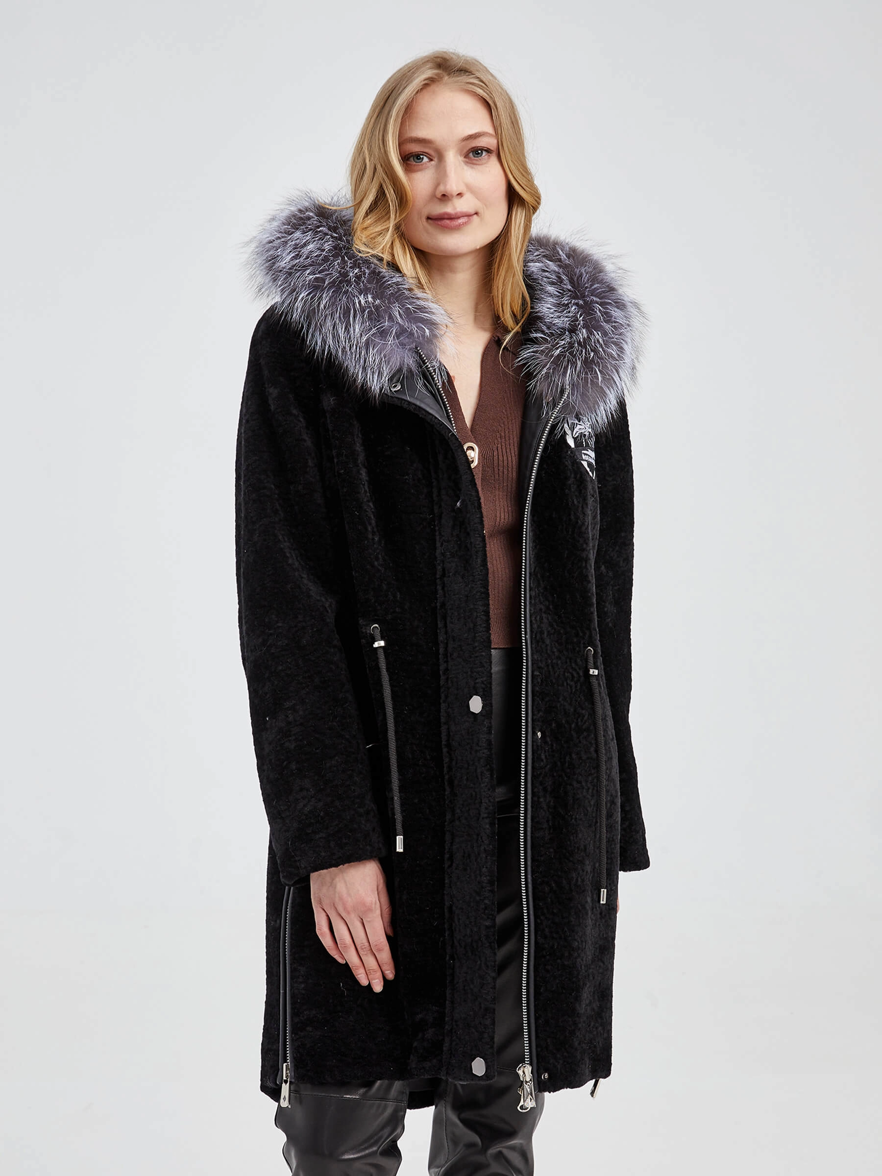 Прямое, стильное полупальто на молнии сочетается с разными образами и выглядит очень практично. Его прямой силуэт дополнен молниями по бокам, кулисой на талии, полноценная длина рукава, удобный капюшон с отделкой из натурального меха чернобурки. Полупальто подарит Вам невероятный комфорт и согреет в ненастную погоду.
