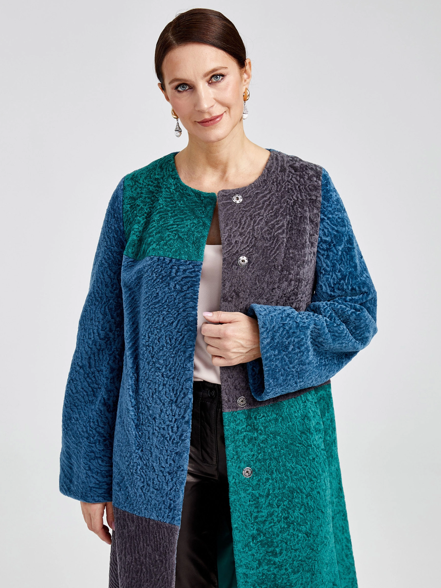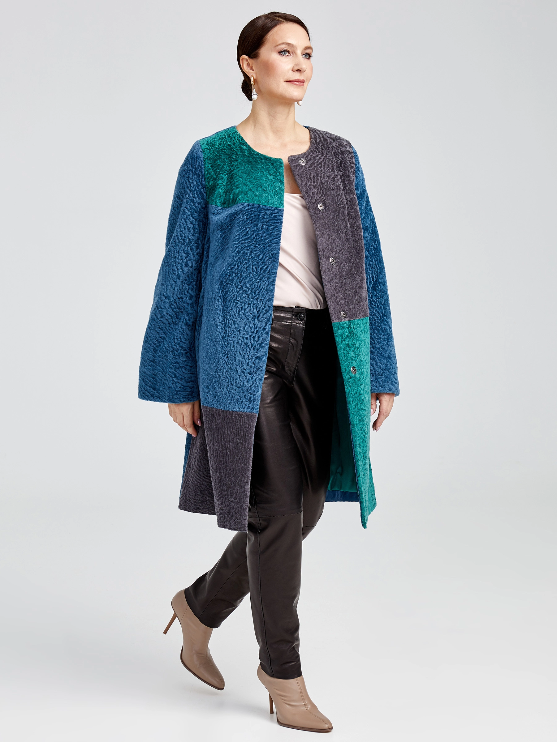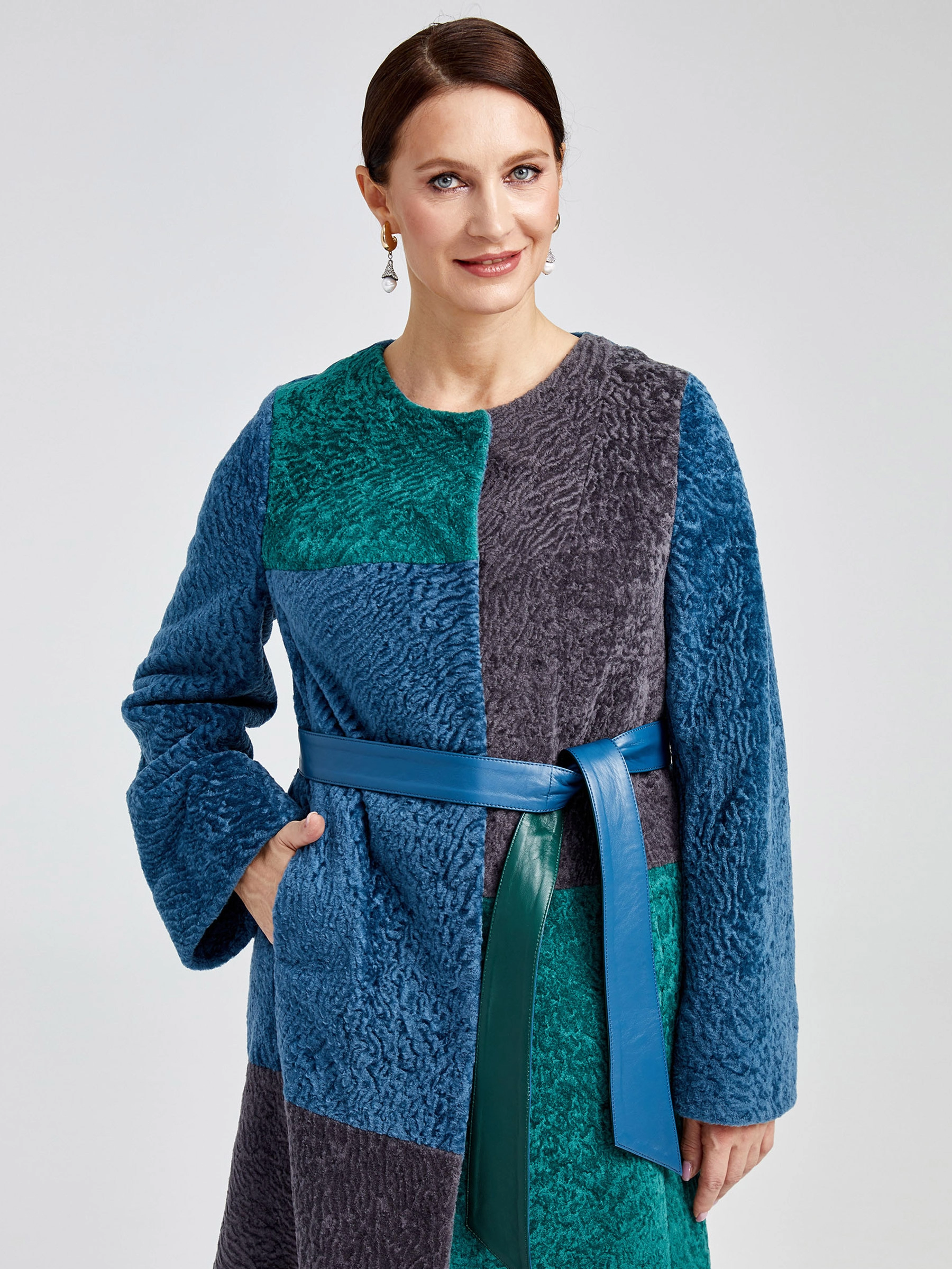 Товар комбинированная женская дубленка из астрагана с поясом 33мех, мультиколор, размер 40, артикул 17380 выполнен из астраган с застежкой кнопки. Рассчитан на сезон: осень-зима. Длина изделия 93 см, силуэт полуприлегающий.