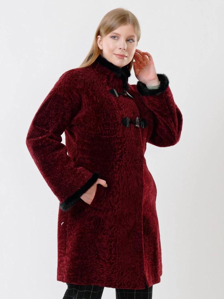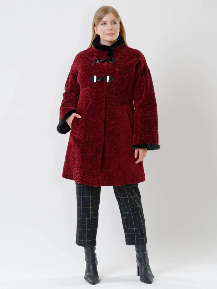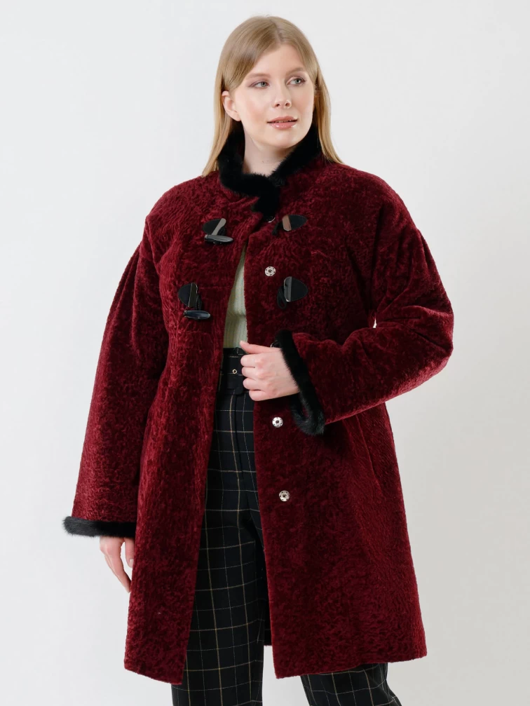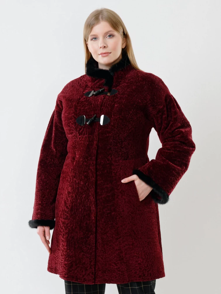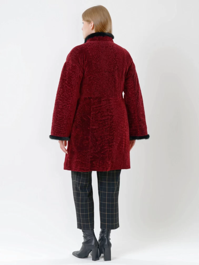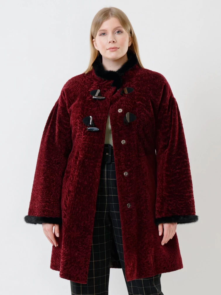 Женская дубленка из астрагана с отделкой из меха норки 34мех, бордовая, размер 46, артикул 17390