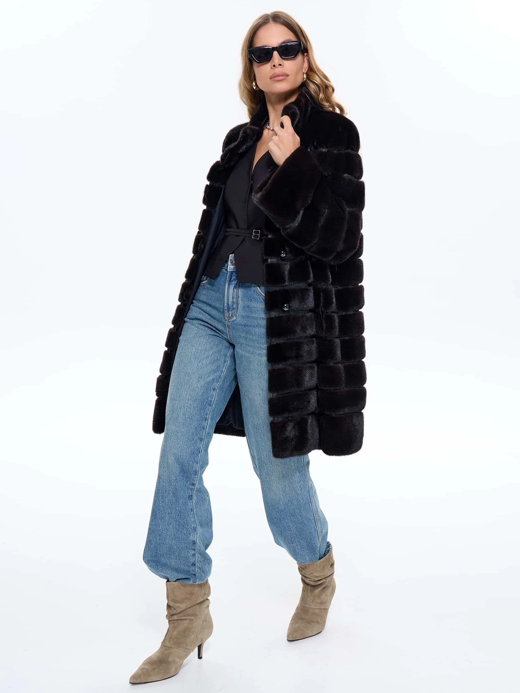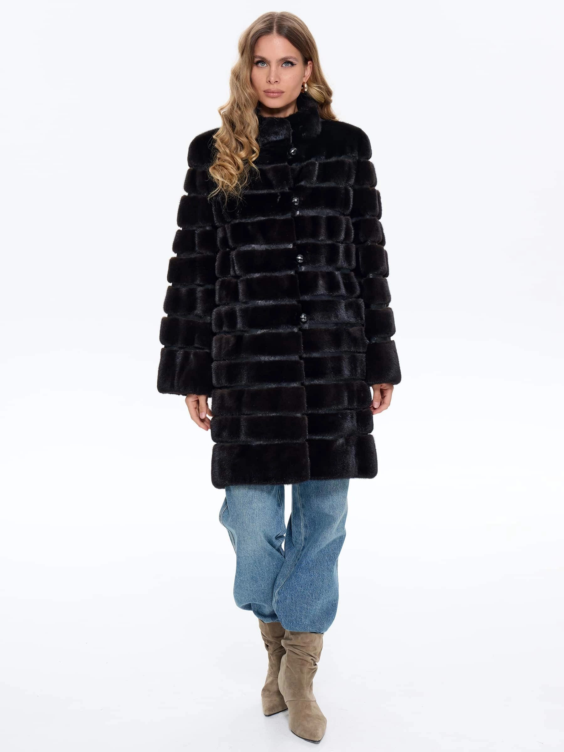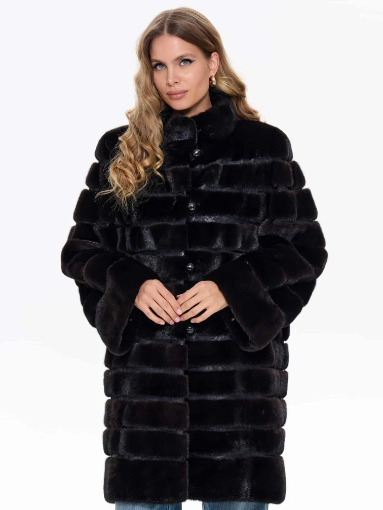 Поперечная женская шуба из меха норки BRASCHI ELM 047, черная, размер 46, артикул 34430